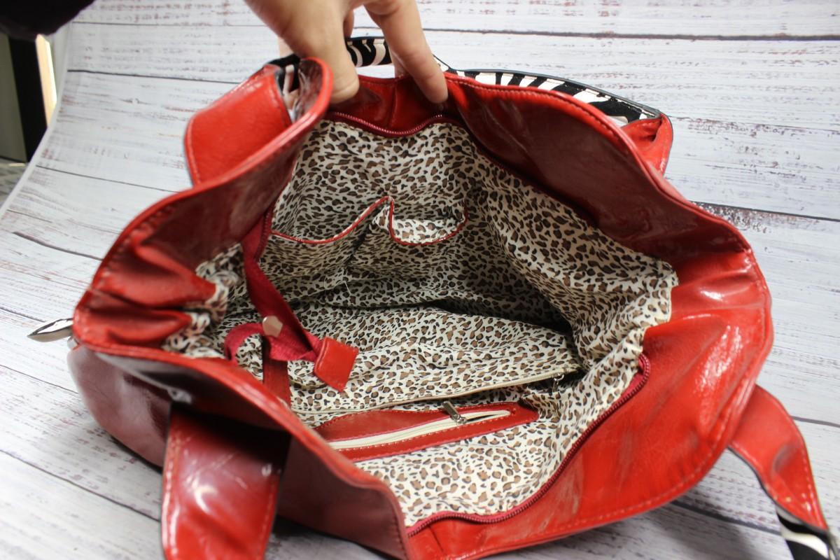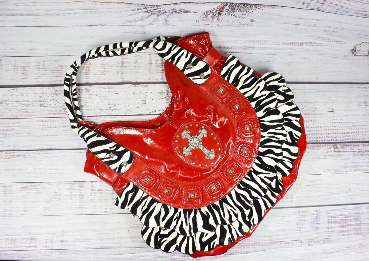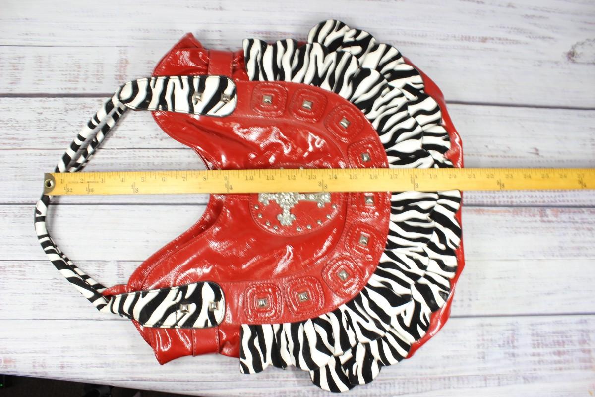 Fashionable Red Black & White Zebra Cross with Leopard Interior Purse Shoulder Bag, there are no significant rips or tears to the bag and is in good condition. Check pictures for more details and for sizing.