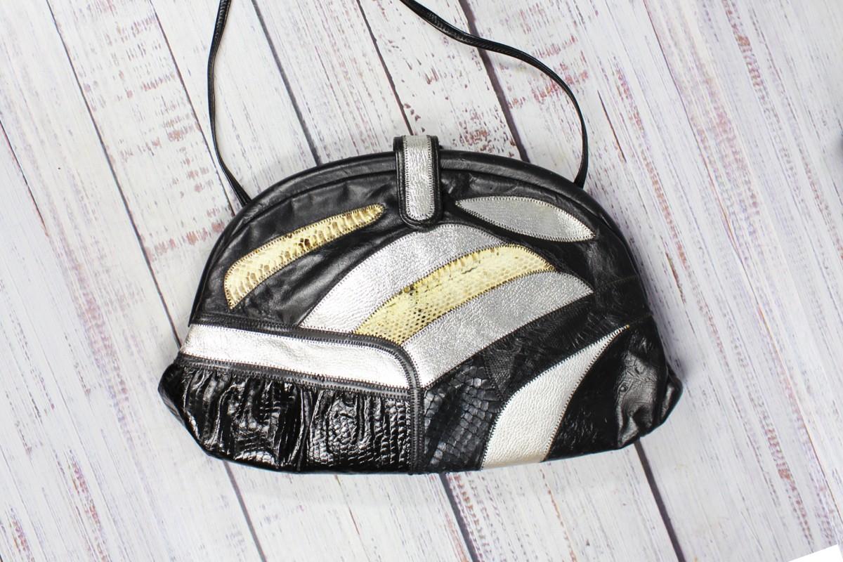 Vintage Palizzio Accessories Metallic Faux Reptile Leather Clutch Handbag