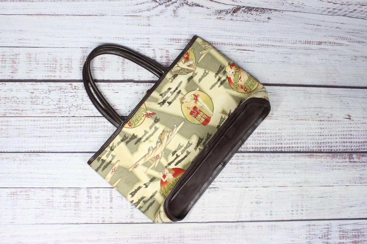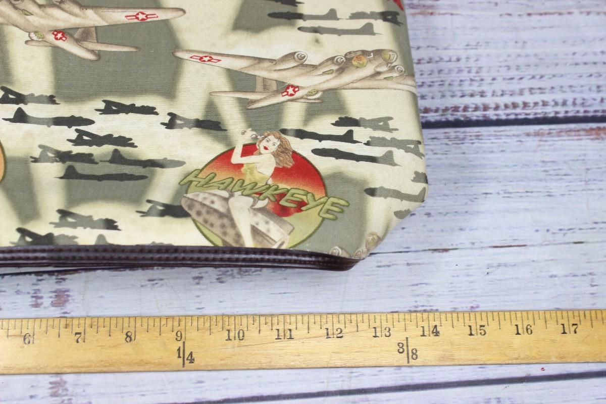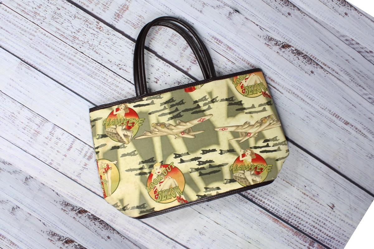 Bomber Pinup Girl Retro Design Handbag, there are no significant tears or rips to the handbag and is in fair useable condition. Check pictures for more details and for sizing.
