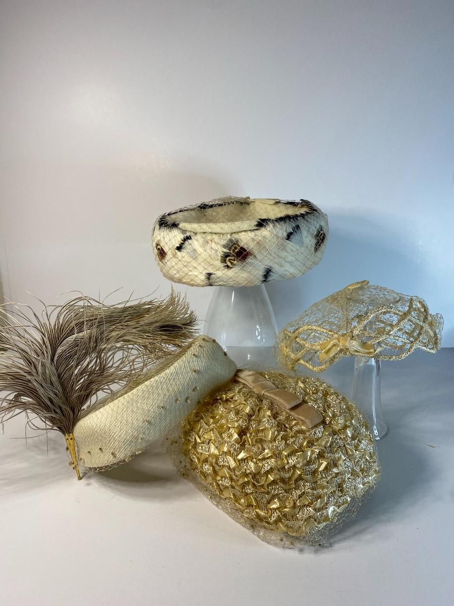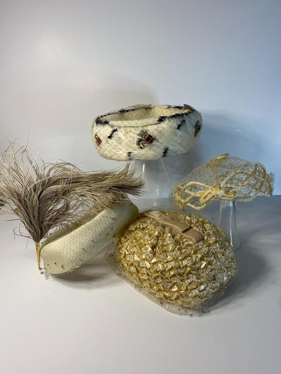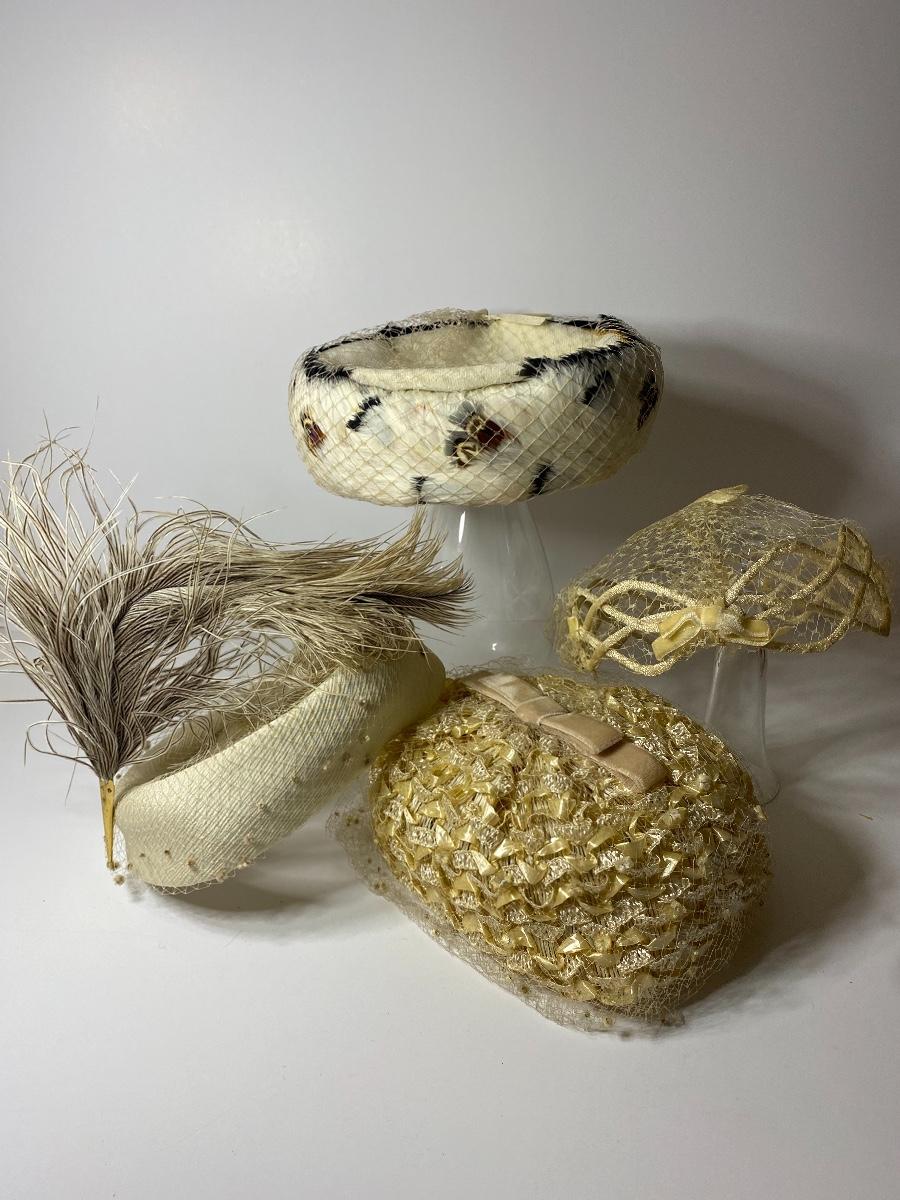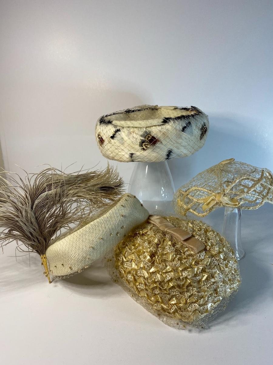 Four vintage hats in neutral colors. Please see all pictures as they are the best representation of the items. The pictures show condition, measurements if taken, and what is included in the lot. Due to the large amount that we photograph and the time frame, we are not always able to take measurements. All items unless noted, are pre-owned and have been used. If you purchased furniture, you must bring help. We do not allow one person to carry large furniture out on their own. Bring help, tools and a truck for the safety of our client’s homes, and your personal safety. Company policy. Thank you.