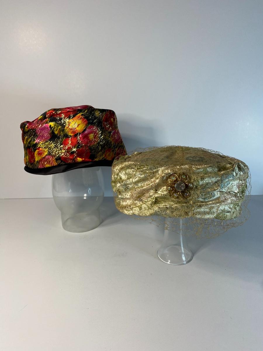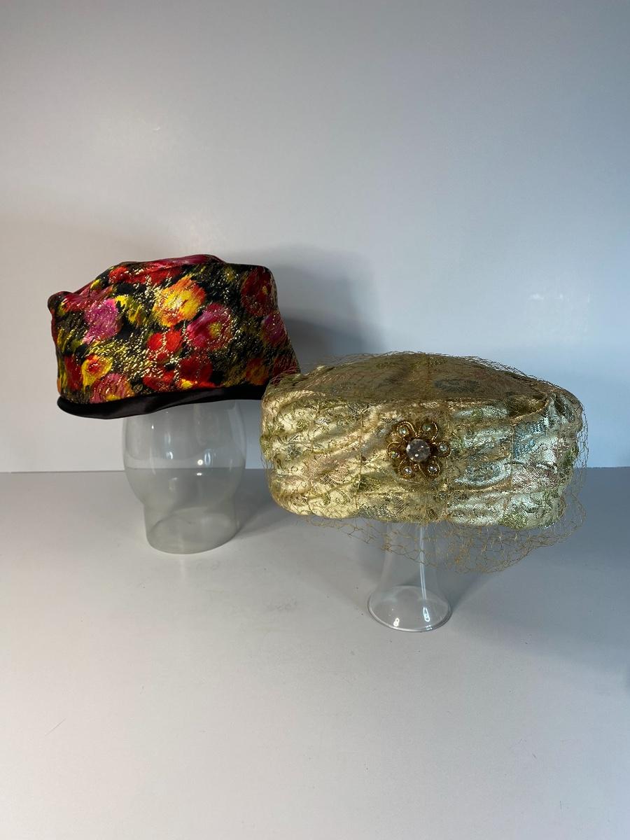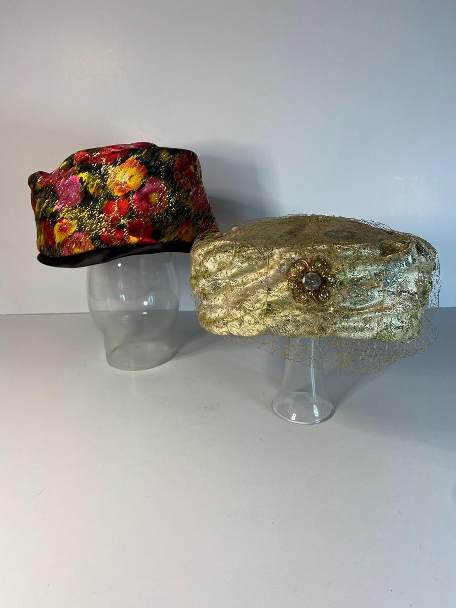 Two vintage colorful hats. Please see all pictures as they are the best representation of the items. The pictures show condition, measurements if taken, and what is included in the lot. Due to the large amount that we photograph and the time frame, we are not always able to take measurements. All items unless noted, are pre-owned and have been used. If you purchased furniture, you must bring help. We do not allow one person to carry large furniture out on their own. Bring help, tools and a truck for the safety of our client’s homes, and your personal safety. Company policy. Thank you.