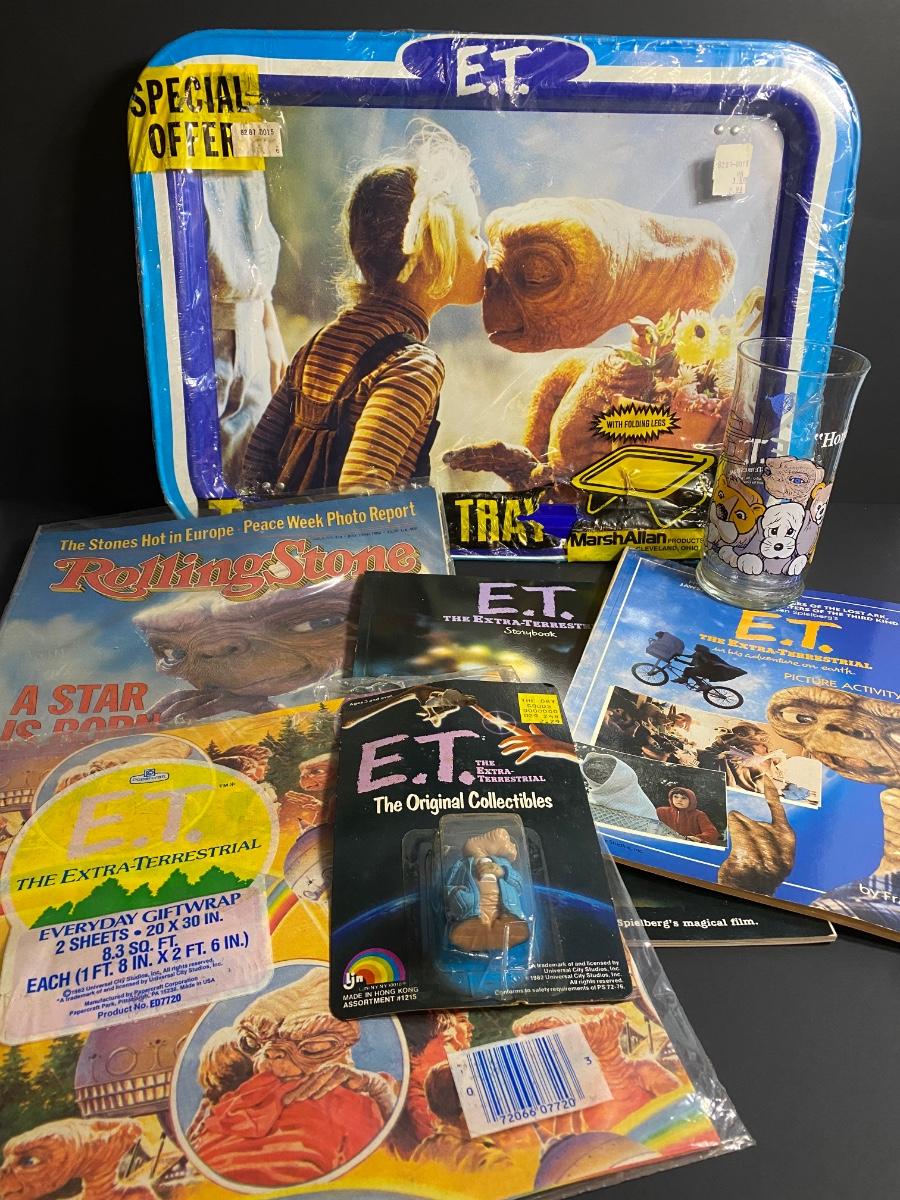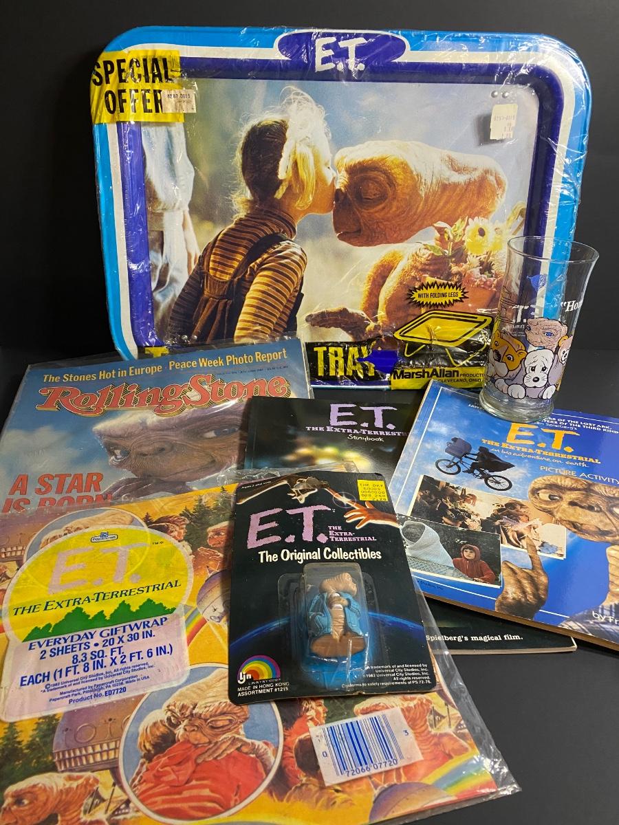 E.T. Tray new in wrapper, gift wrap, keychain, books/ magazines and glass. Please see all pictures as they are the best representation of the items. The pictures show condition, measurements if taken, and what is included in the lot. Due to the large amount that we photograph and the time frame, we are not always able to take measurements. All items unless noted, are pre-owned and have been used. If you purchased furniture, you must bring help. We do not allow one person to carry large furniture out on their own. Bring help, tools and a truck for the safety of our client’s homes, and your personal safety. Company policy. Thank you.