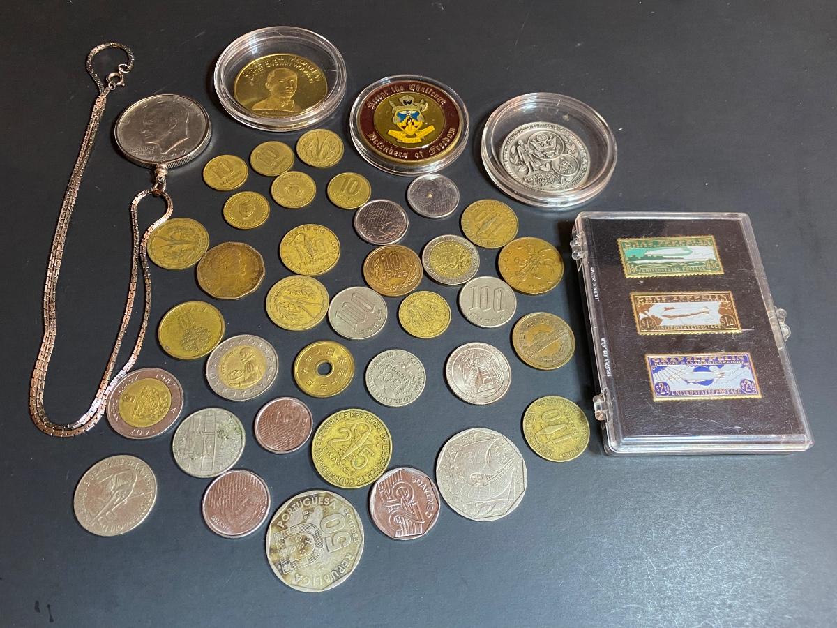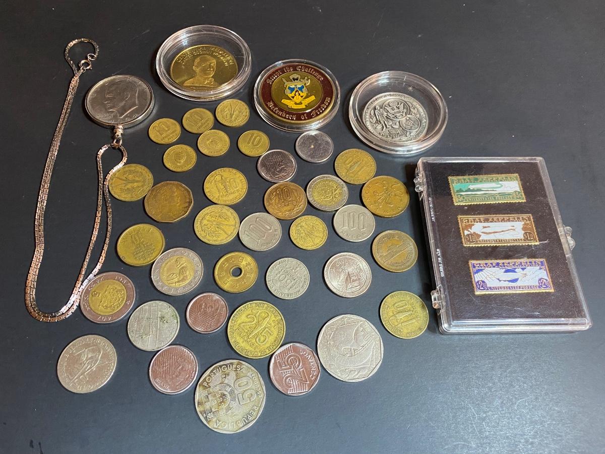 Lot 009: Mixed lot of Foreign Coins, Collectible Coins, and Duck Stamp Pins