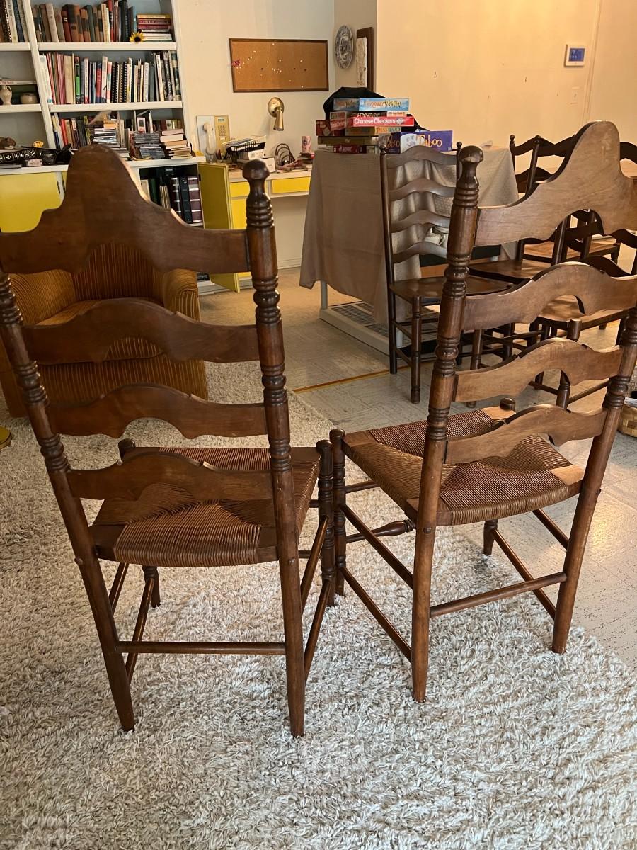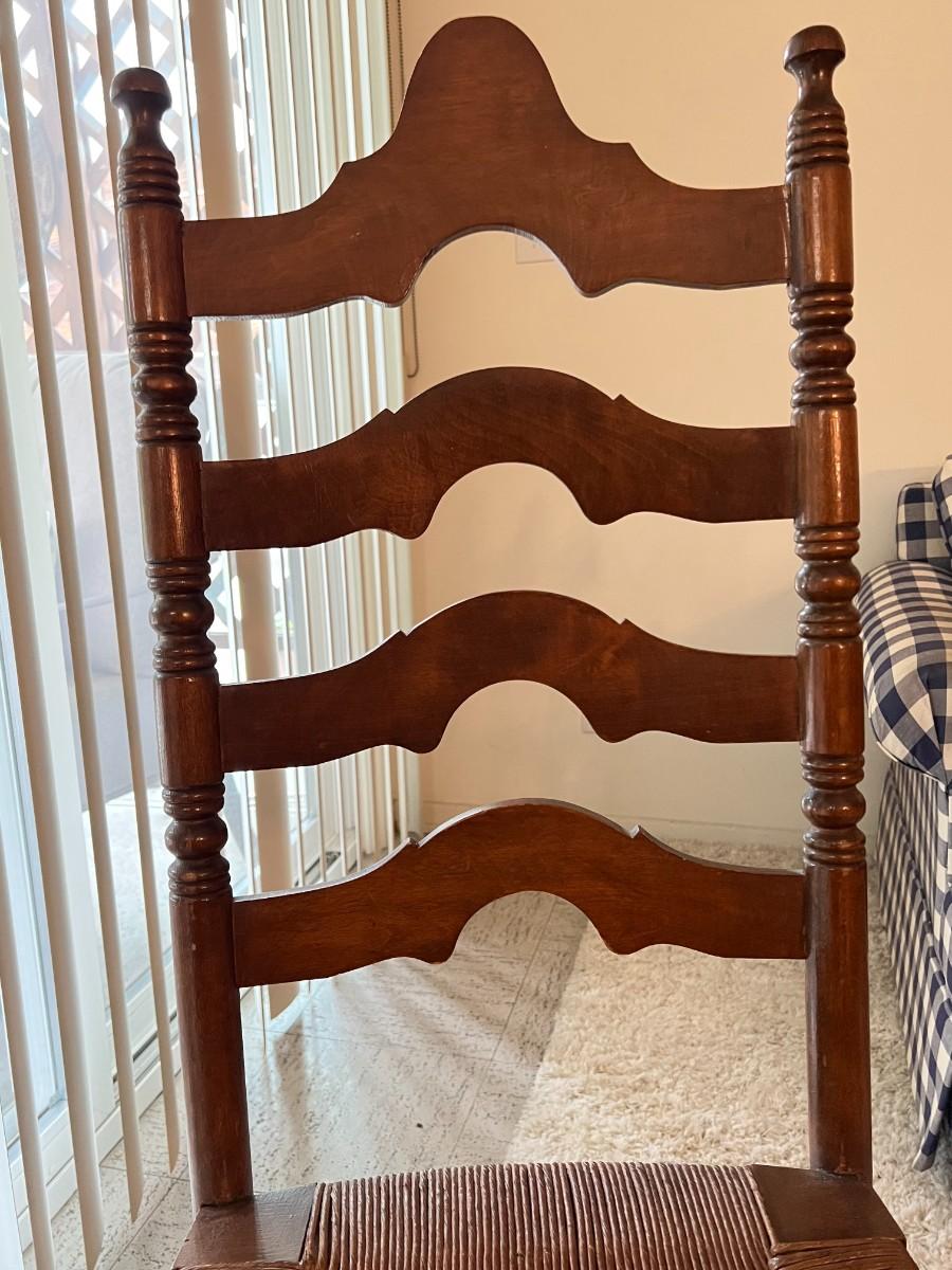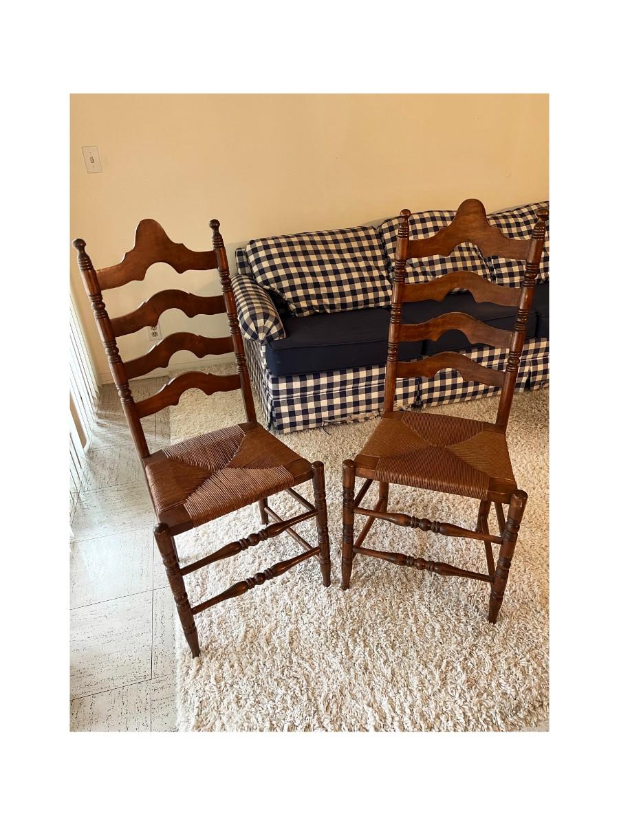 Pair of Vintage Mid Century Rush Seat Ladder Back Wood Chairs