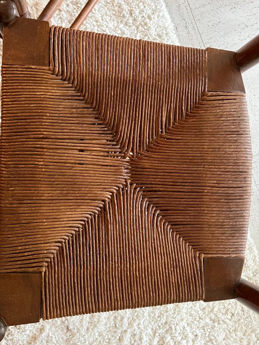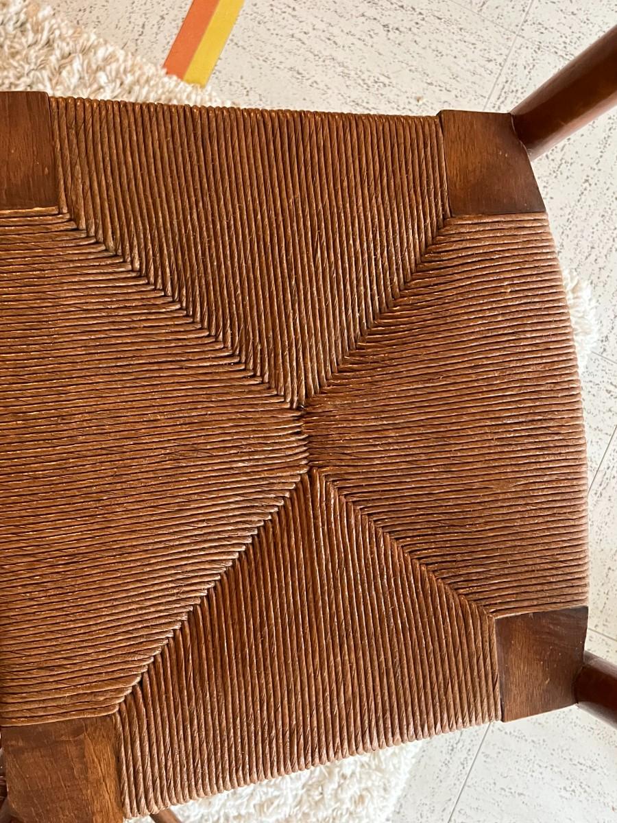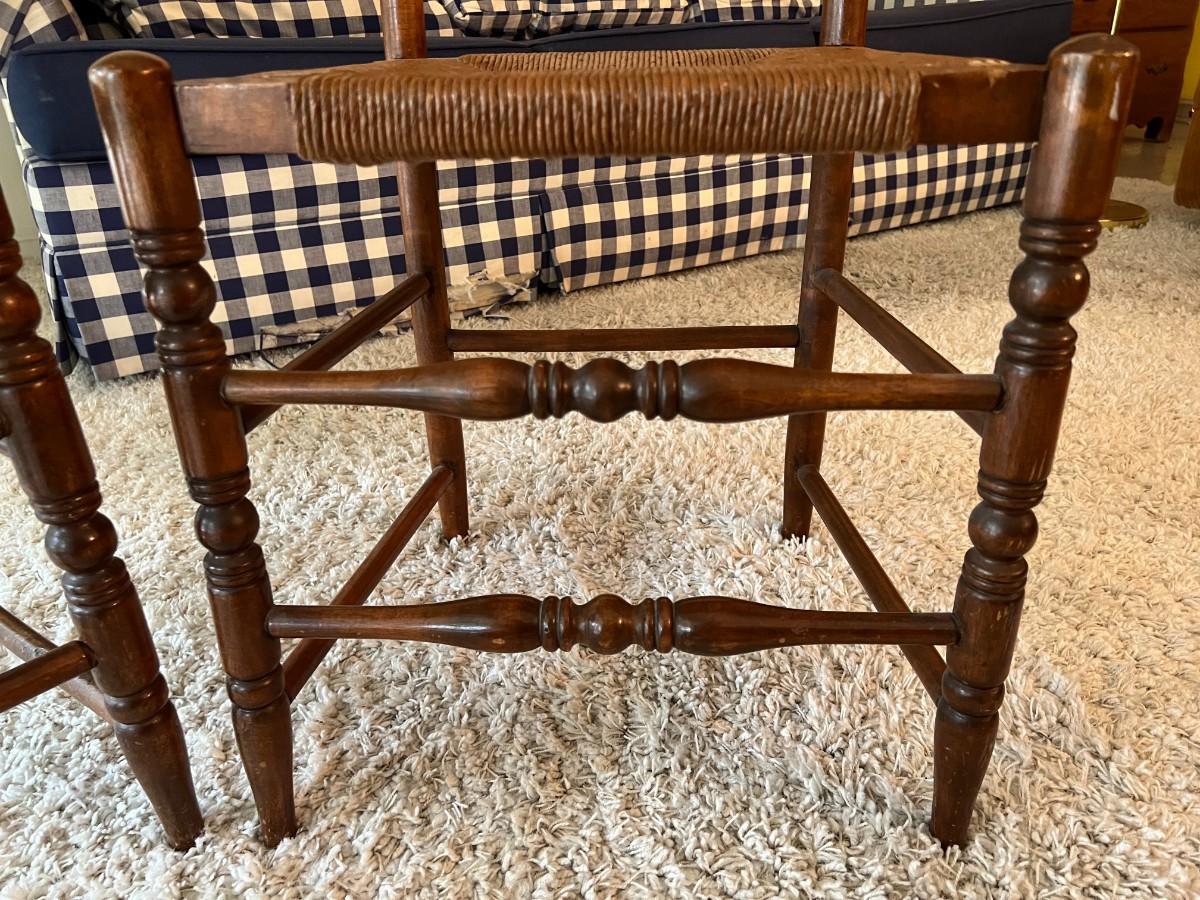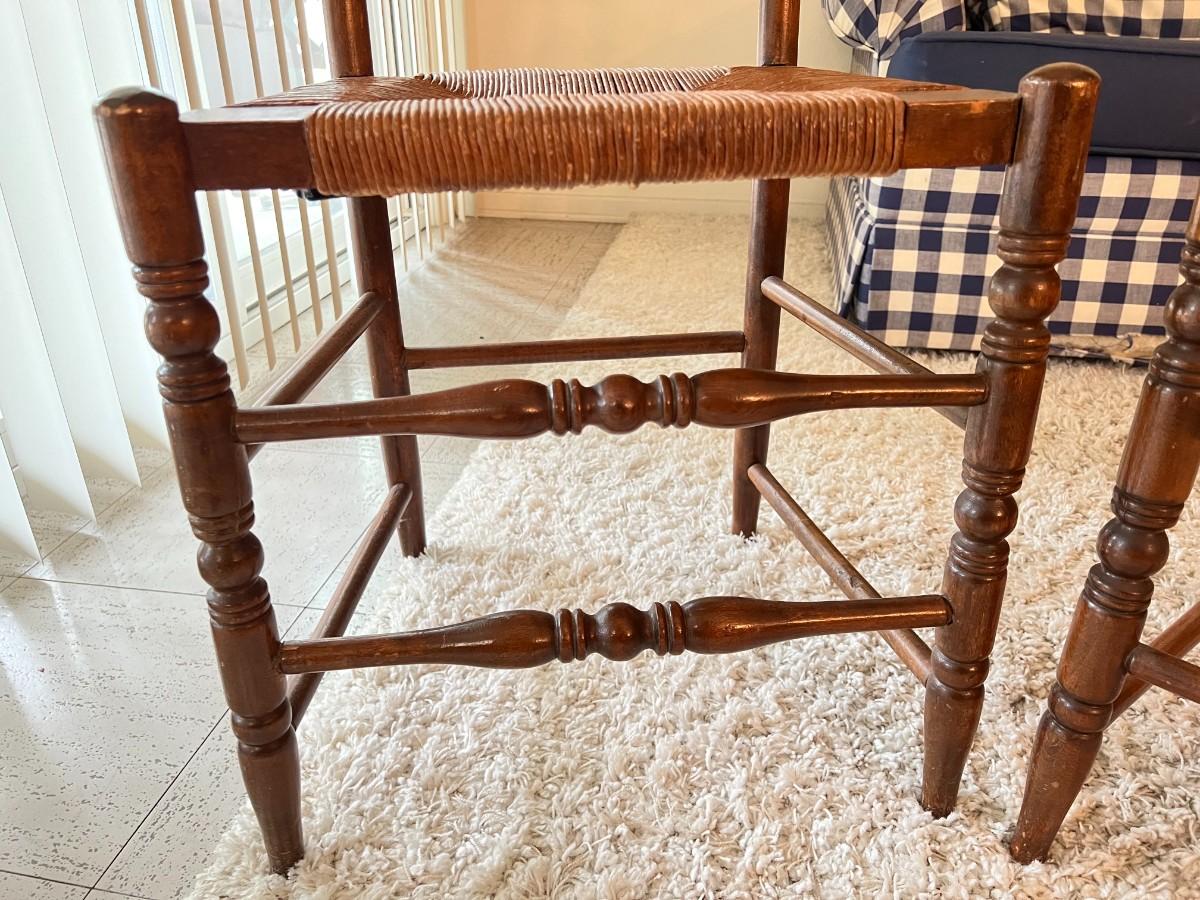 Pair of Vintage Mid Century Rush Seat Ladder Back Wood Chairs