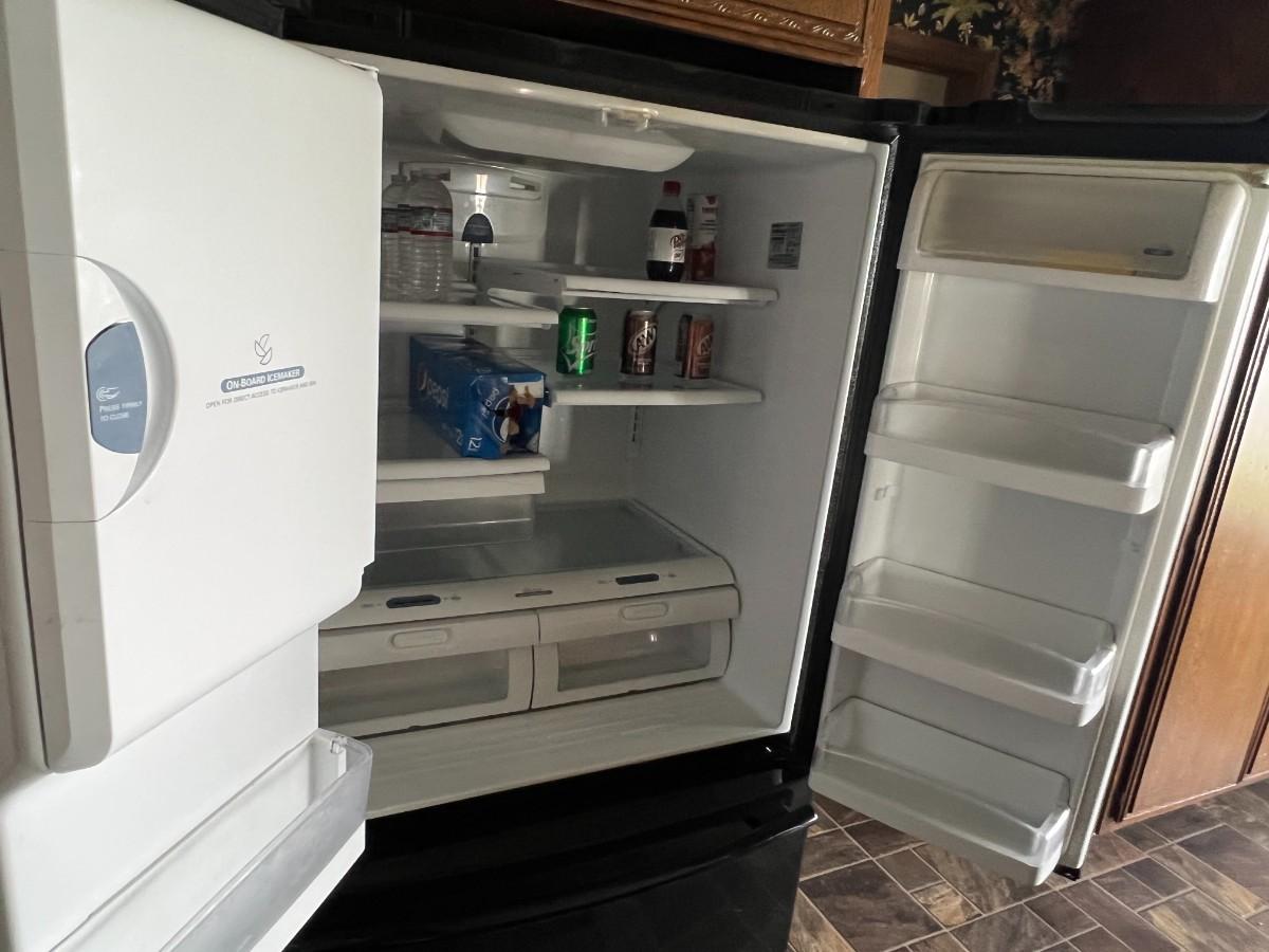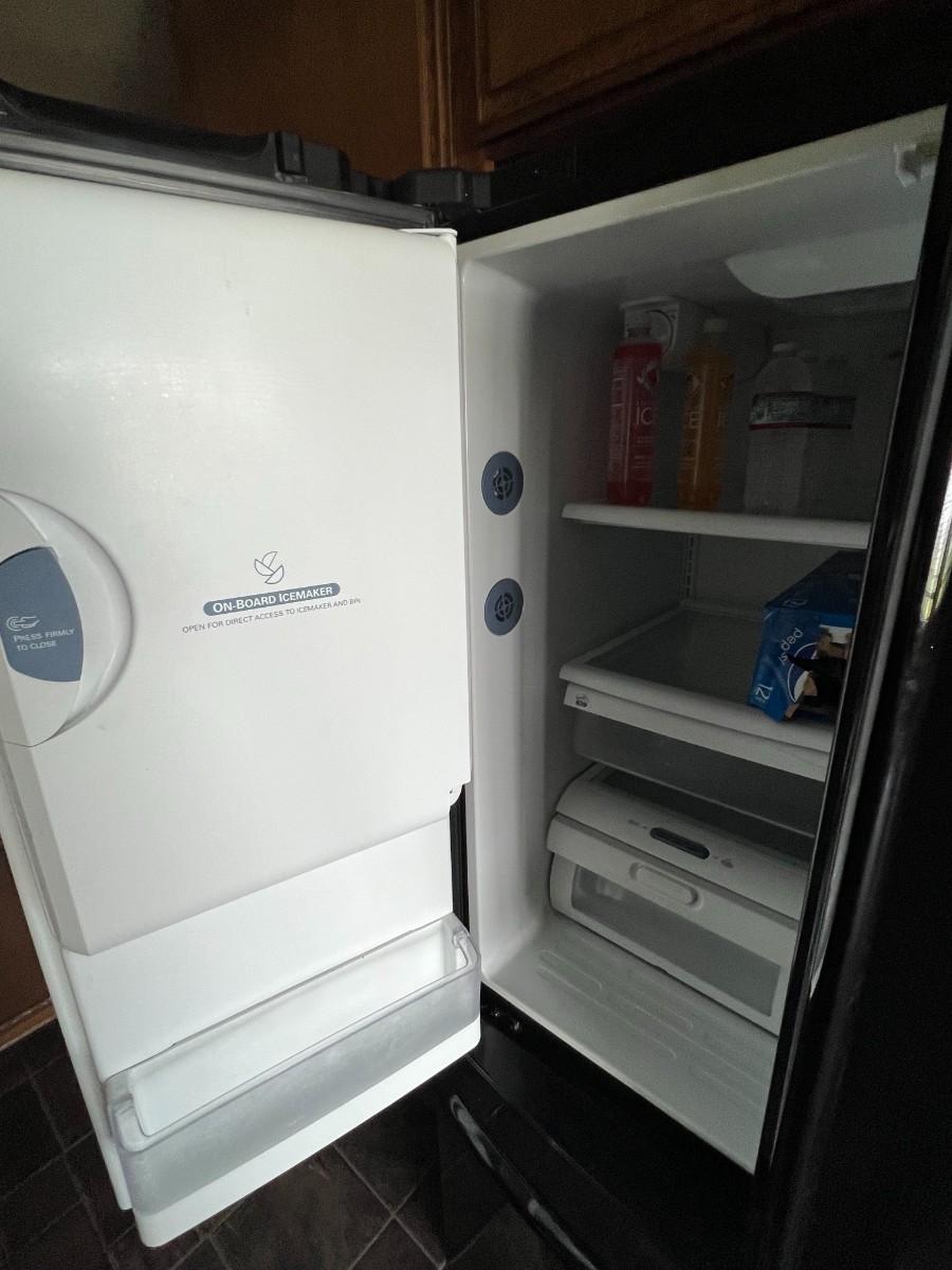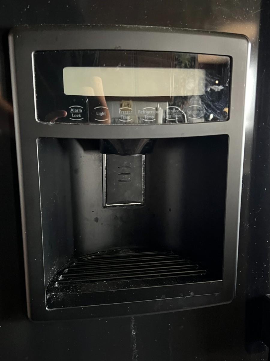 Black Kenmore Elite French Door Freezer on the Bottom Refrigerator Fridge. Model #795.77569600. Mfg. 2007. Works. In good used condition. Ice & water in the door.