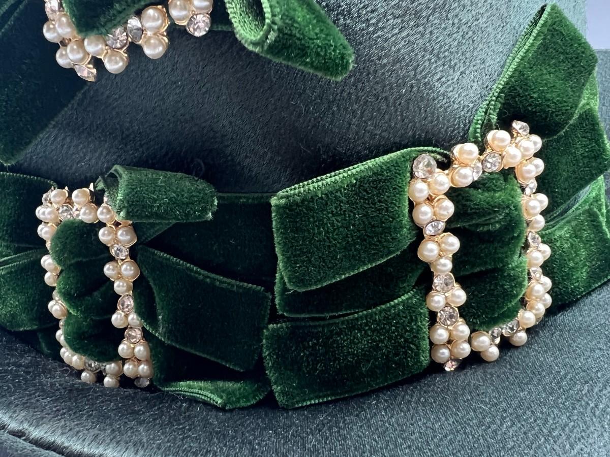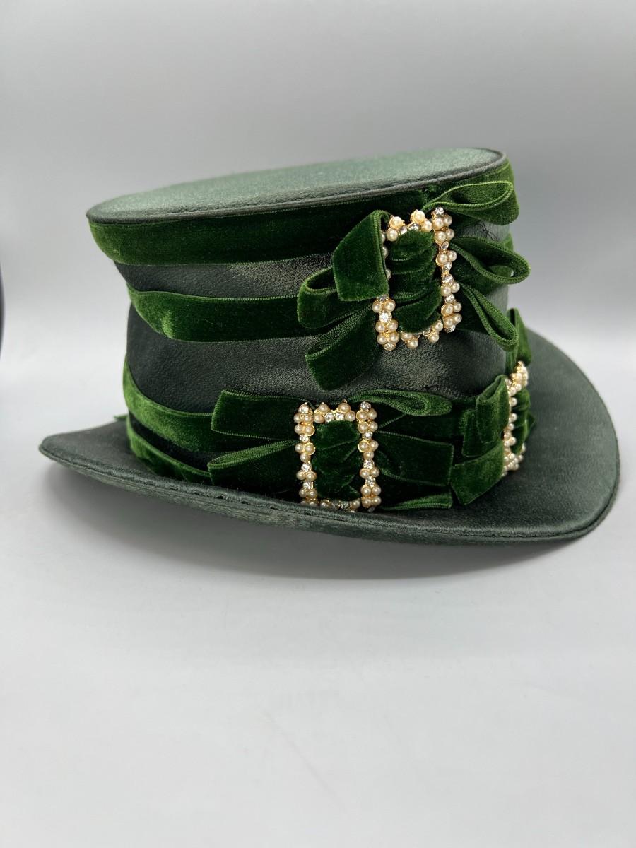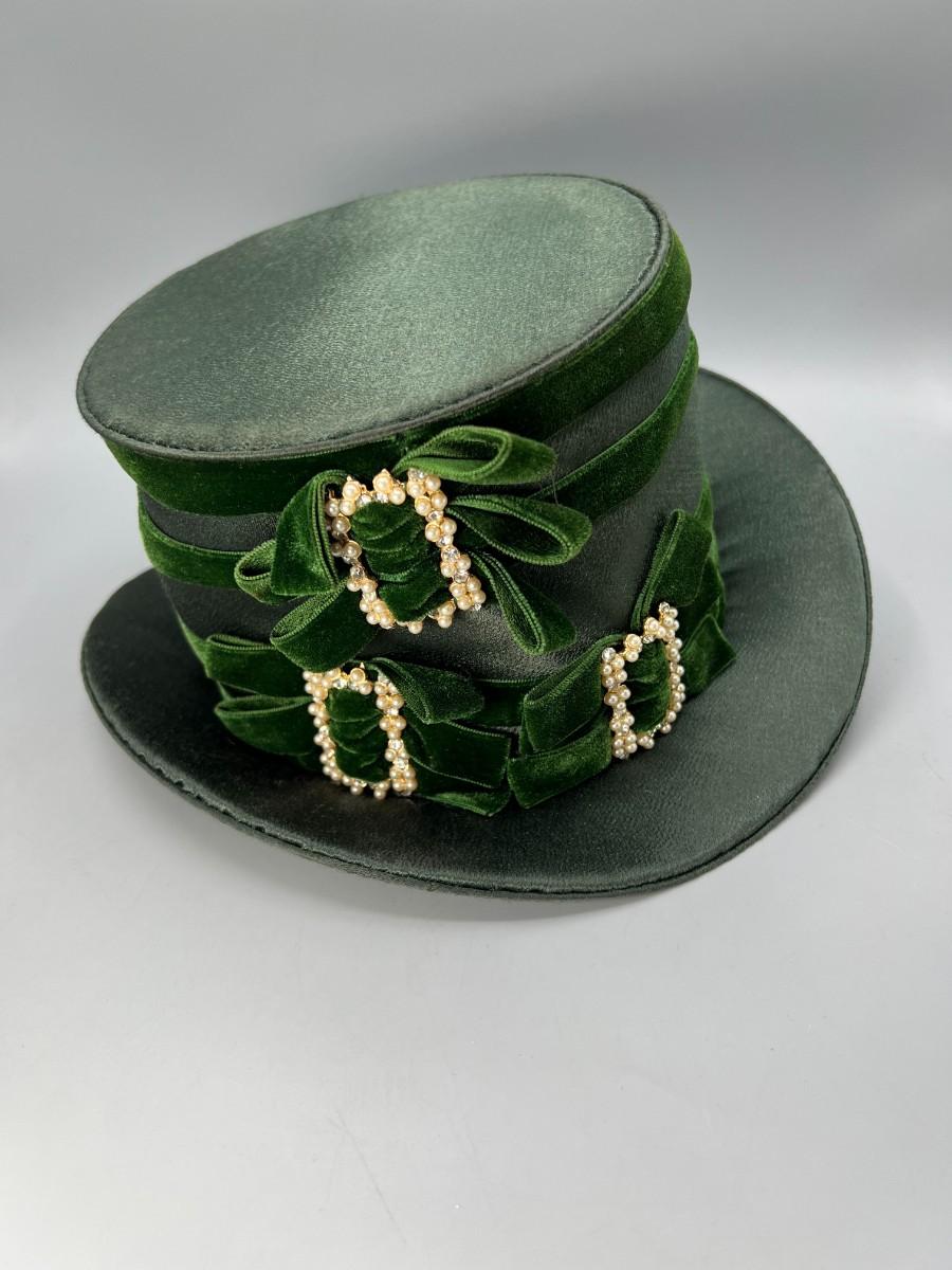 Vintage Green Cloth Ribbon Dress Up Faux Pearl Top Hat