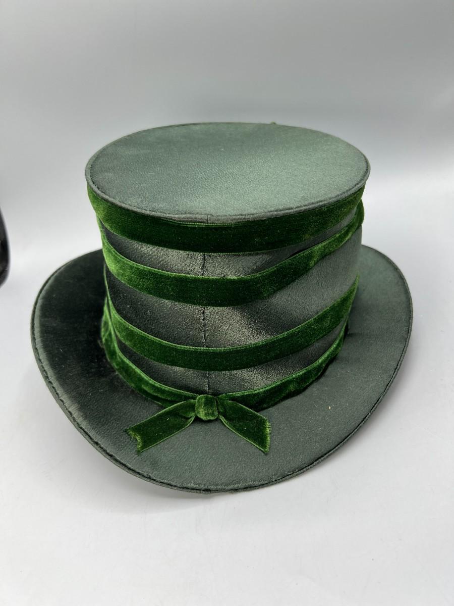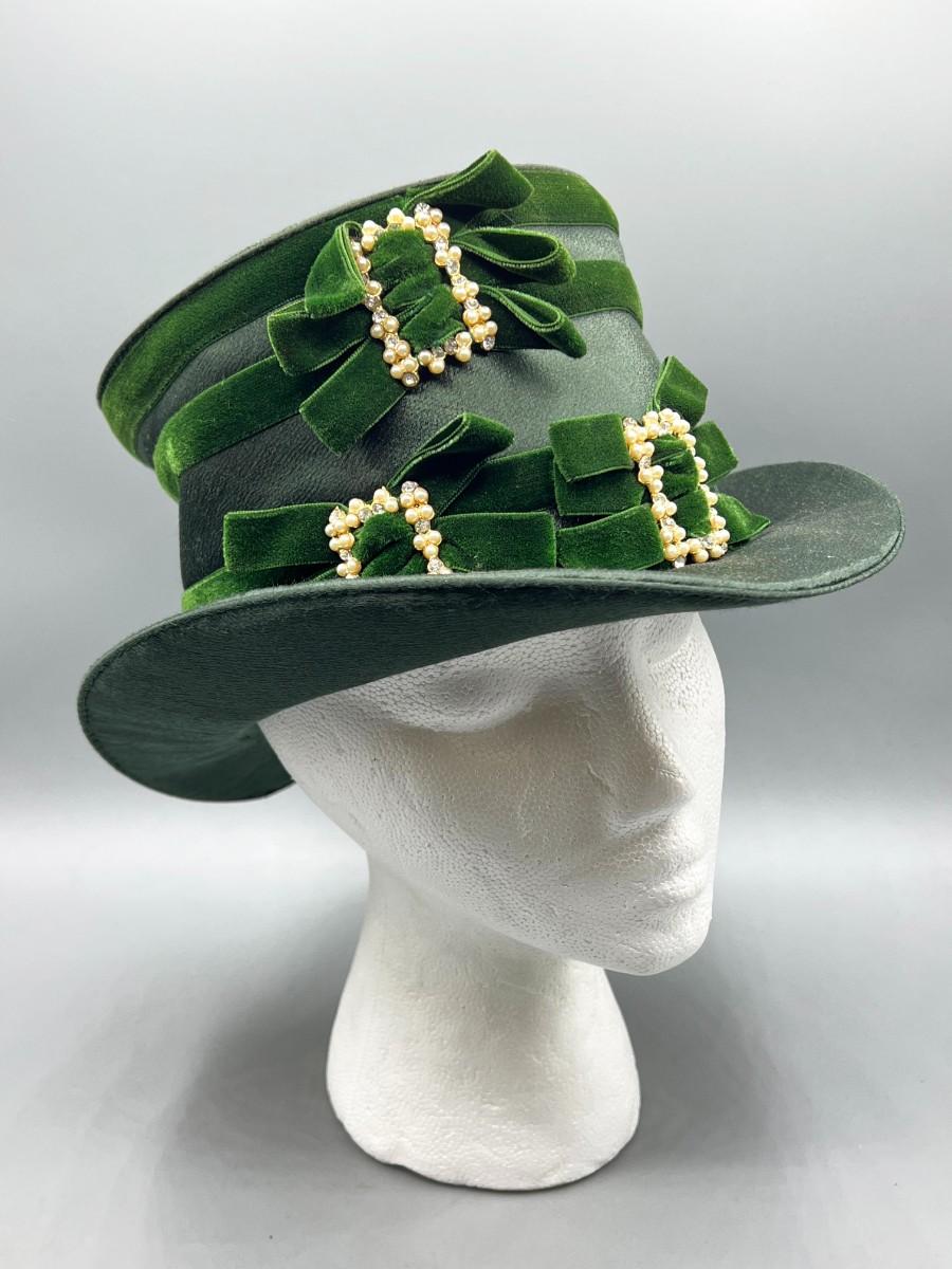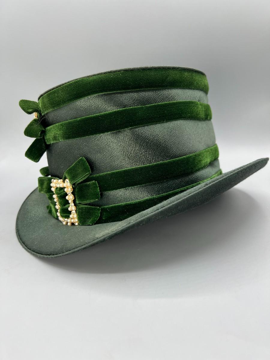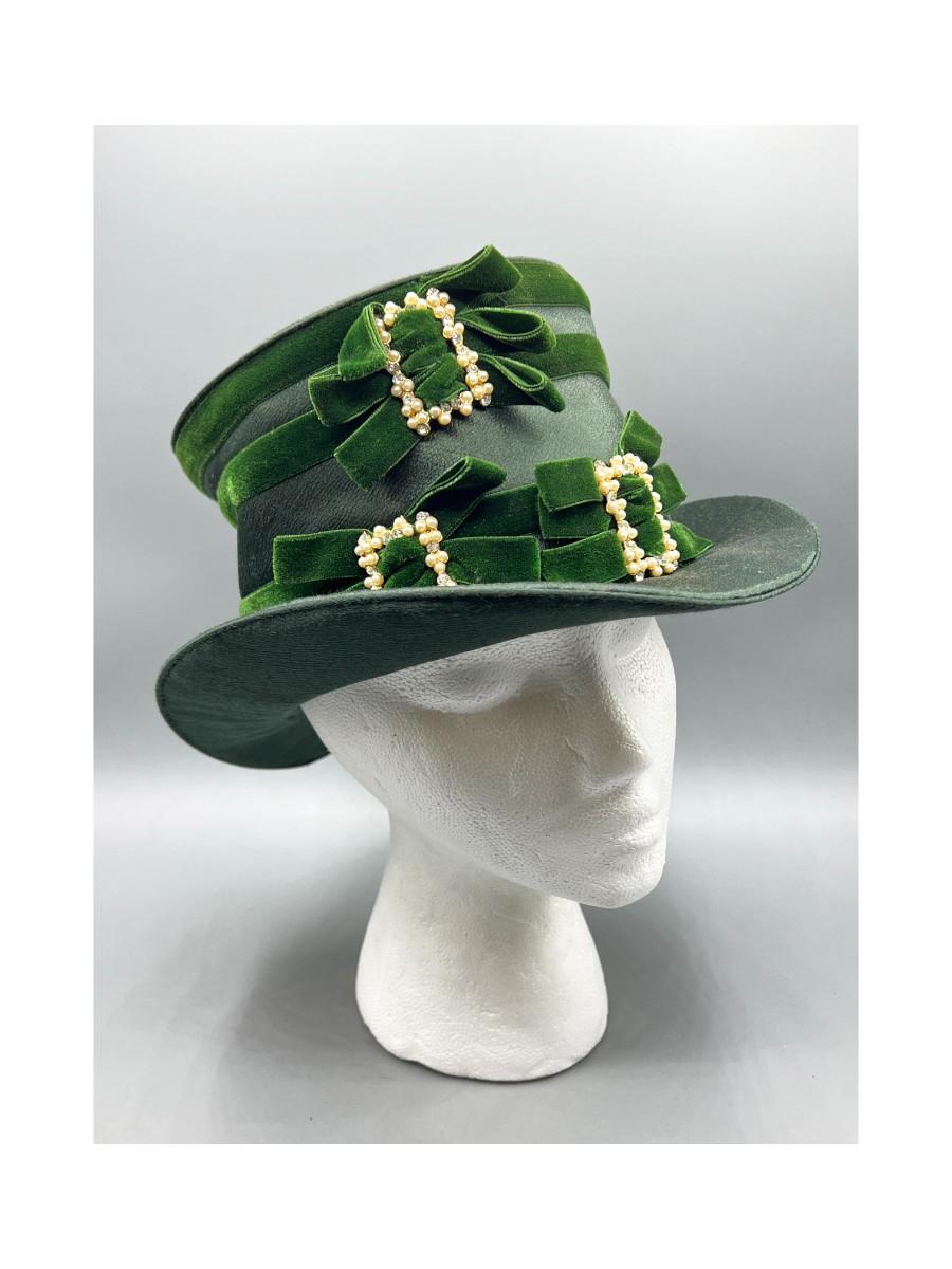 Vintage Green Cloth Ribbon Dress Up Faux Pearl Top Hat