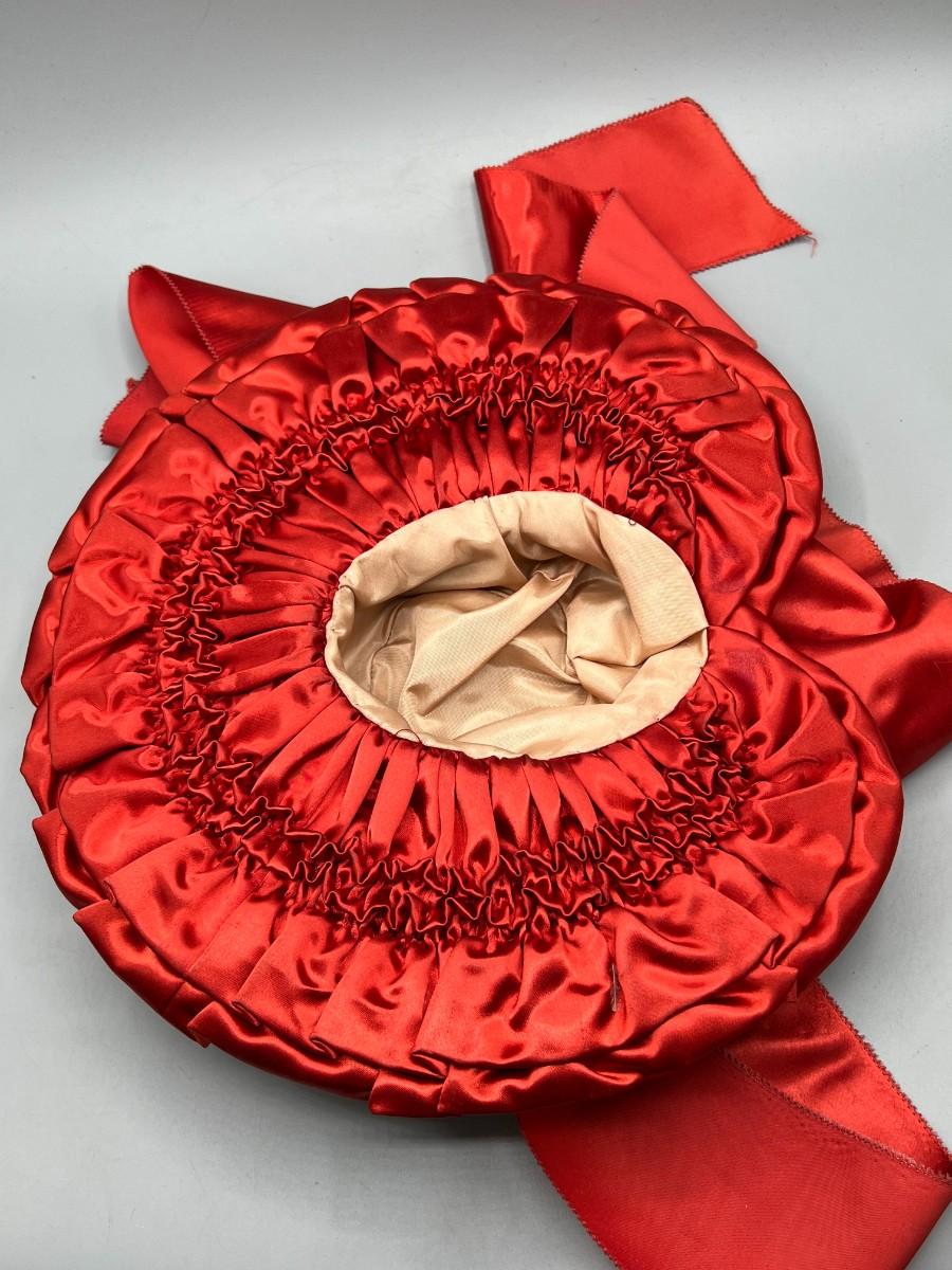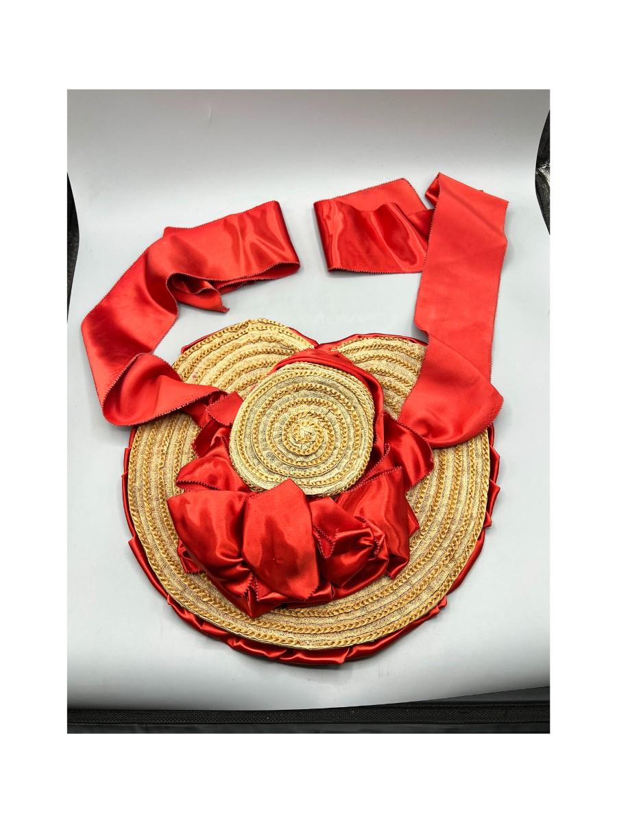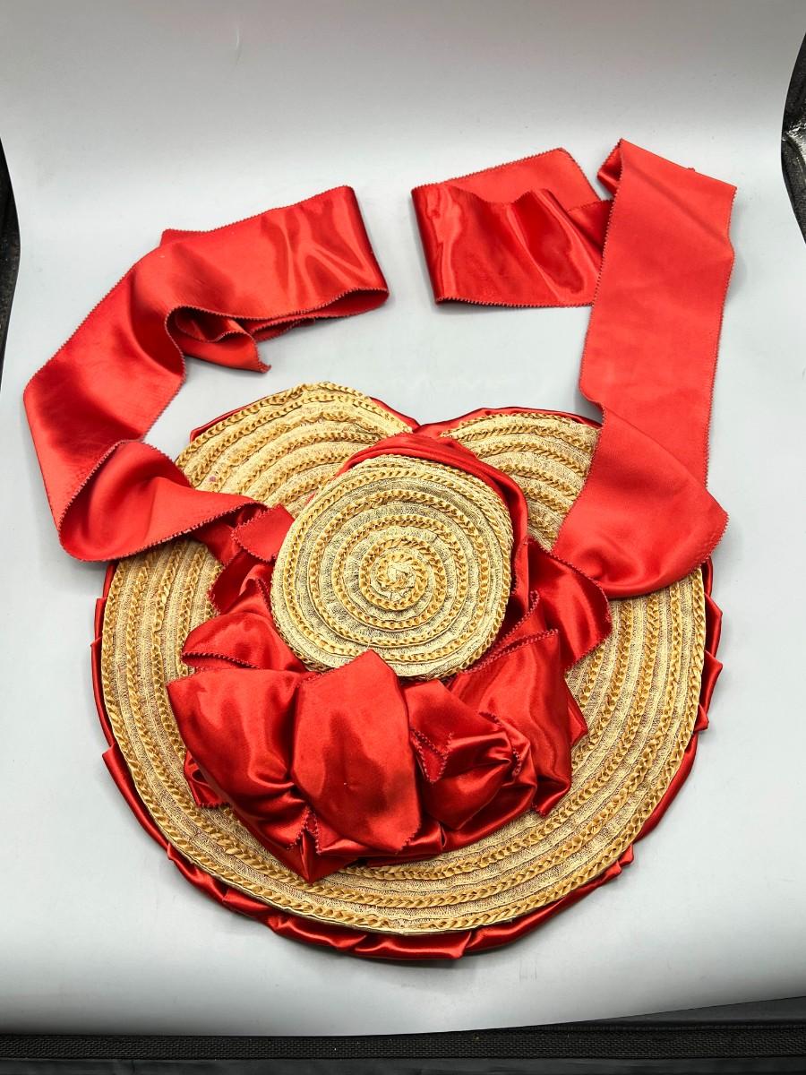 Vintage Red Scarlet Cloth Ribbon Prairie Straw Dress Sun Hat