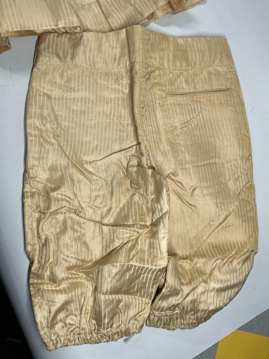 There is antique wear to the entire uniform piece, and there is some brittle parts of the shirt and is crackling. Check pictures for more details and for sizing.