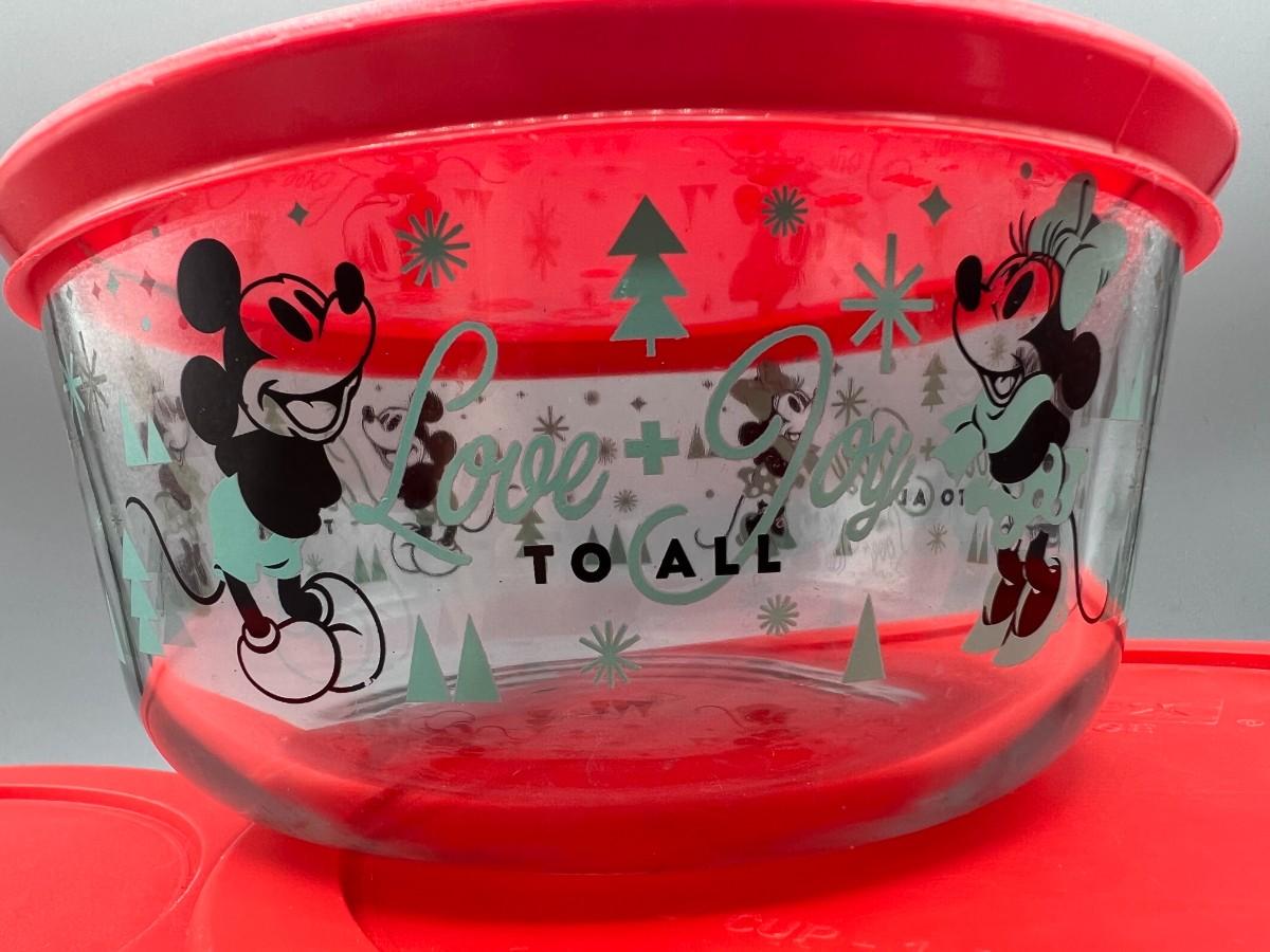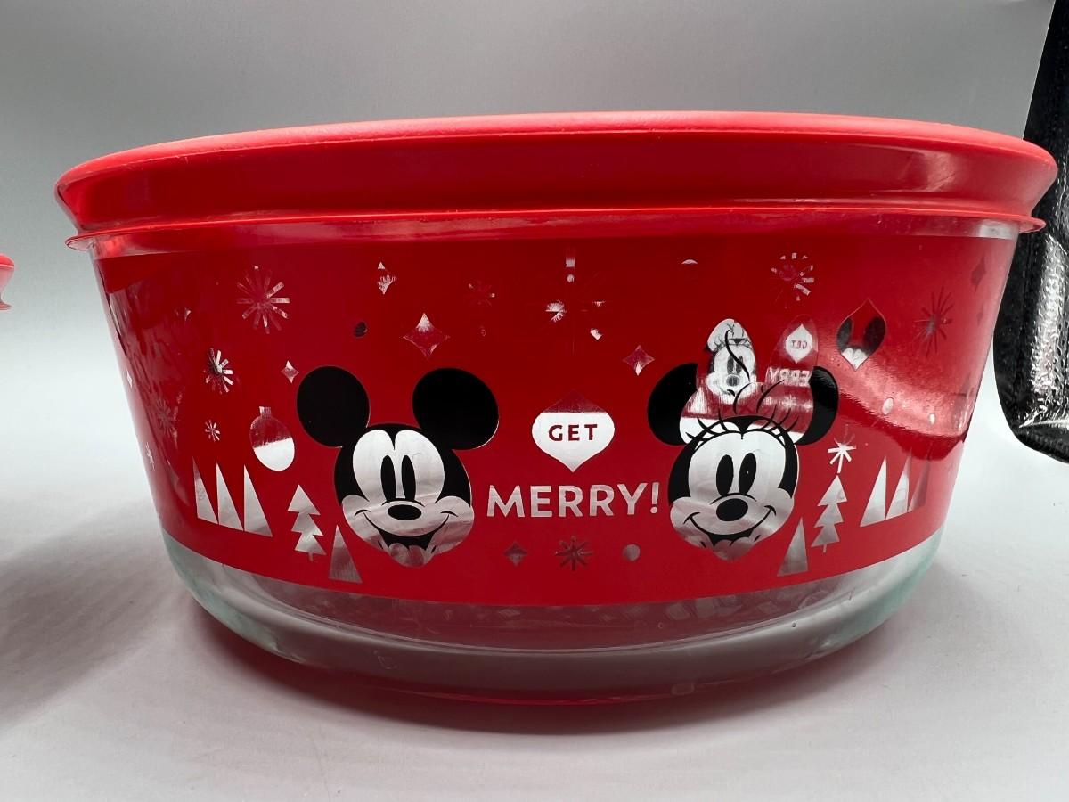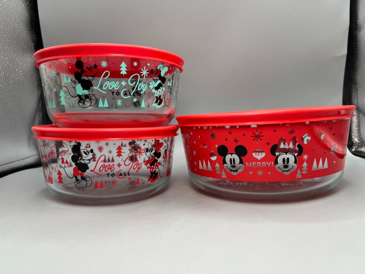 Lot of Disney Mickey & Minnie Mouse Christmas Decorated Pyrex Glass Storage Containers