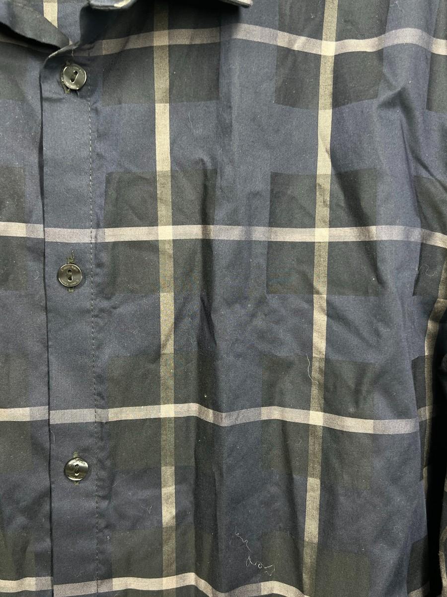 Calvin Klein Large Slim Fit Plaid Navy Blue Button Up Long Sleeve