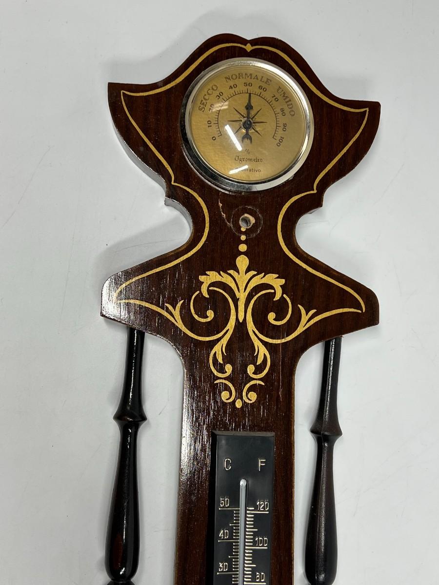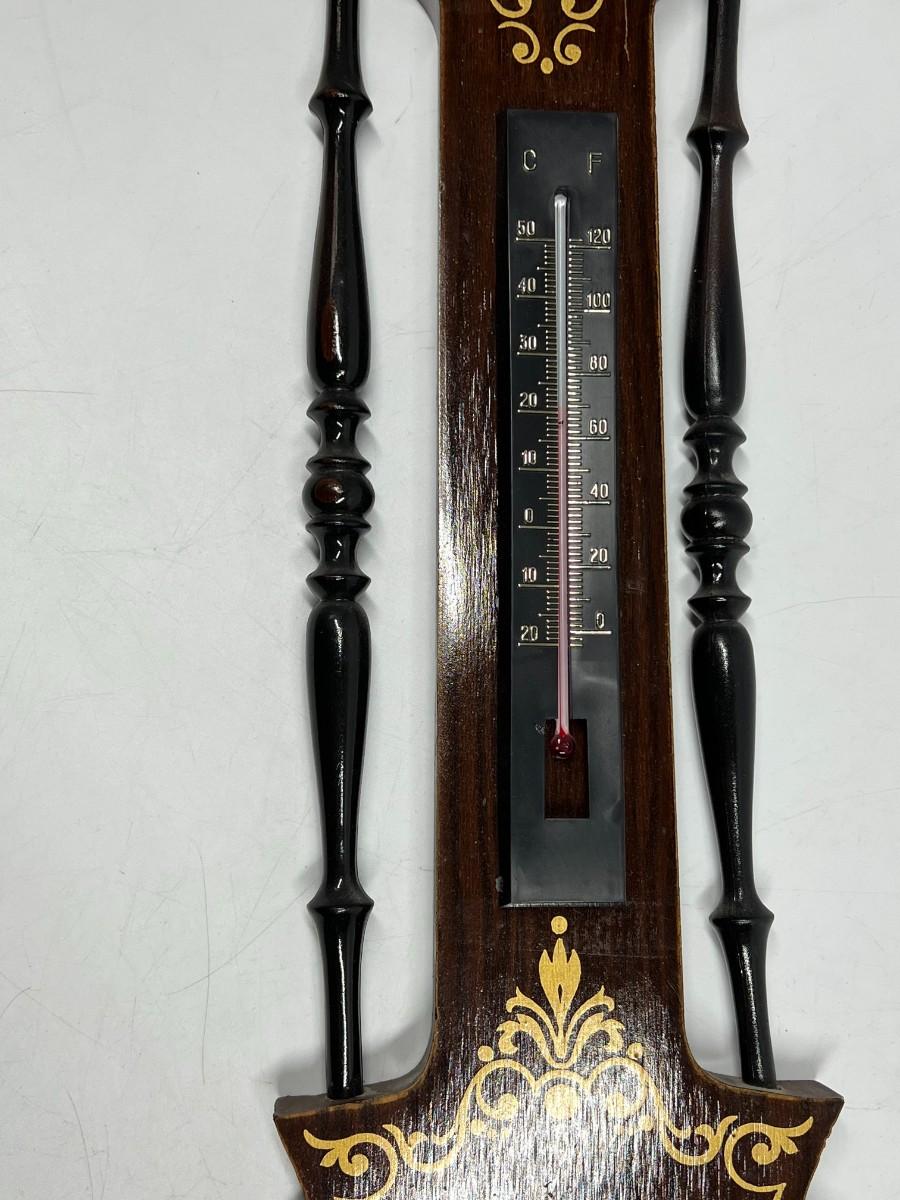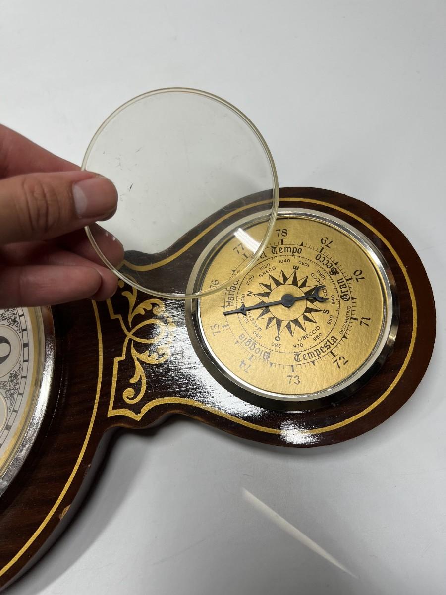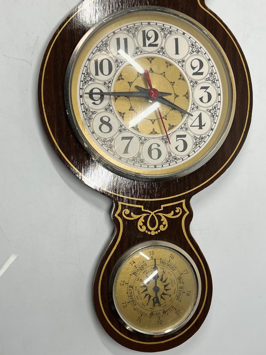 Battery Operated Wall Clock Barometer Thermometer. Fair vintage condition, though one glass piece is loose. Untested and has not been tested with new batteries.