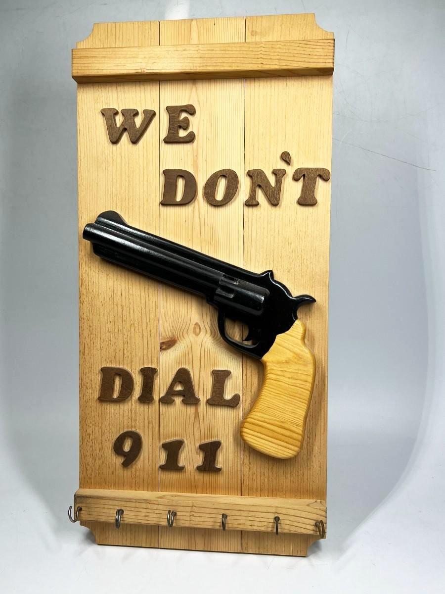 We Don't Call 911 Hanging Wood Key Hook Holder Plaque