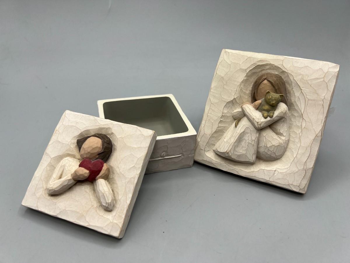 Pair of Small Willow Tree Demdaco Religious Angel Trinket Box and Hanging Plaque