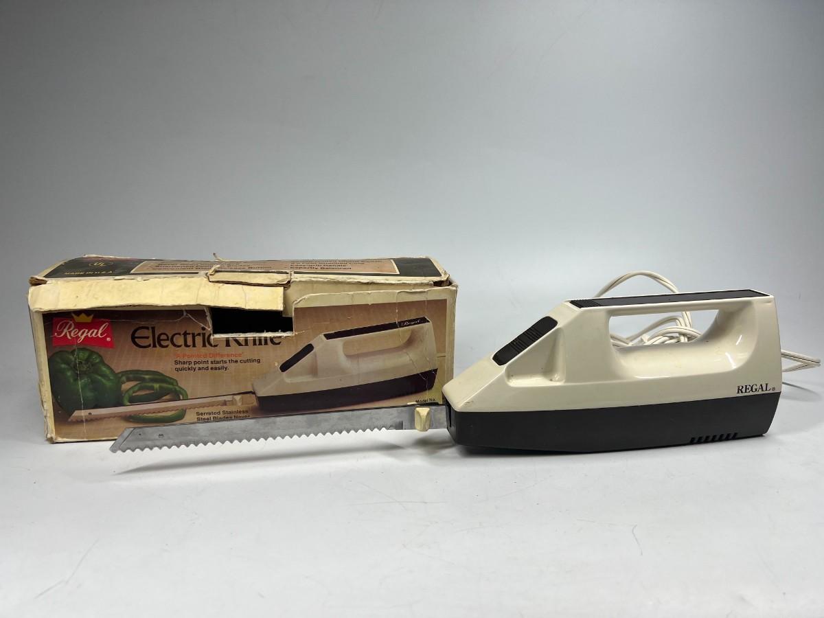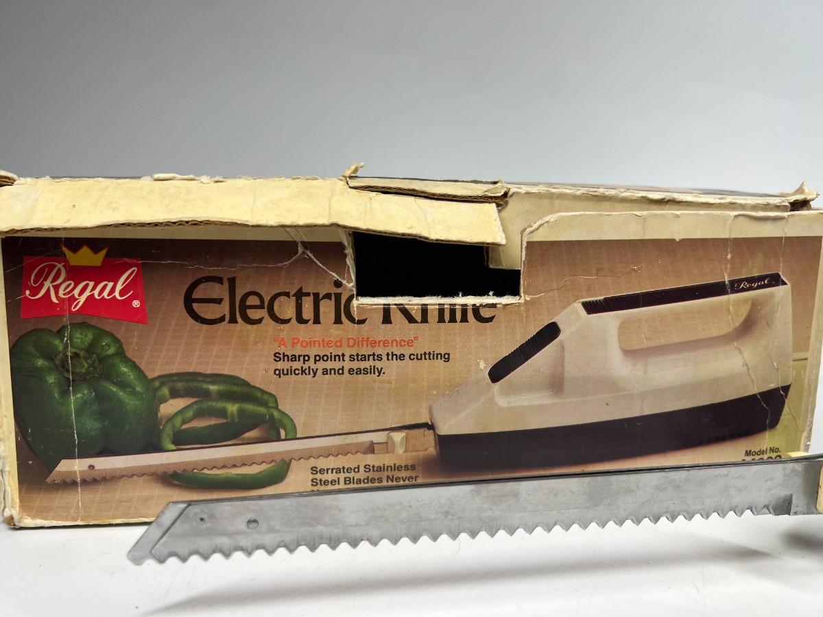 There is some wear to the electric knife, but there is no significant damage and is in overall good collectible or useable condition. Has been tested and works perfectly.