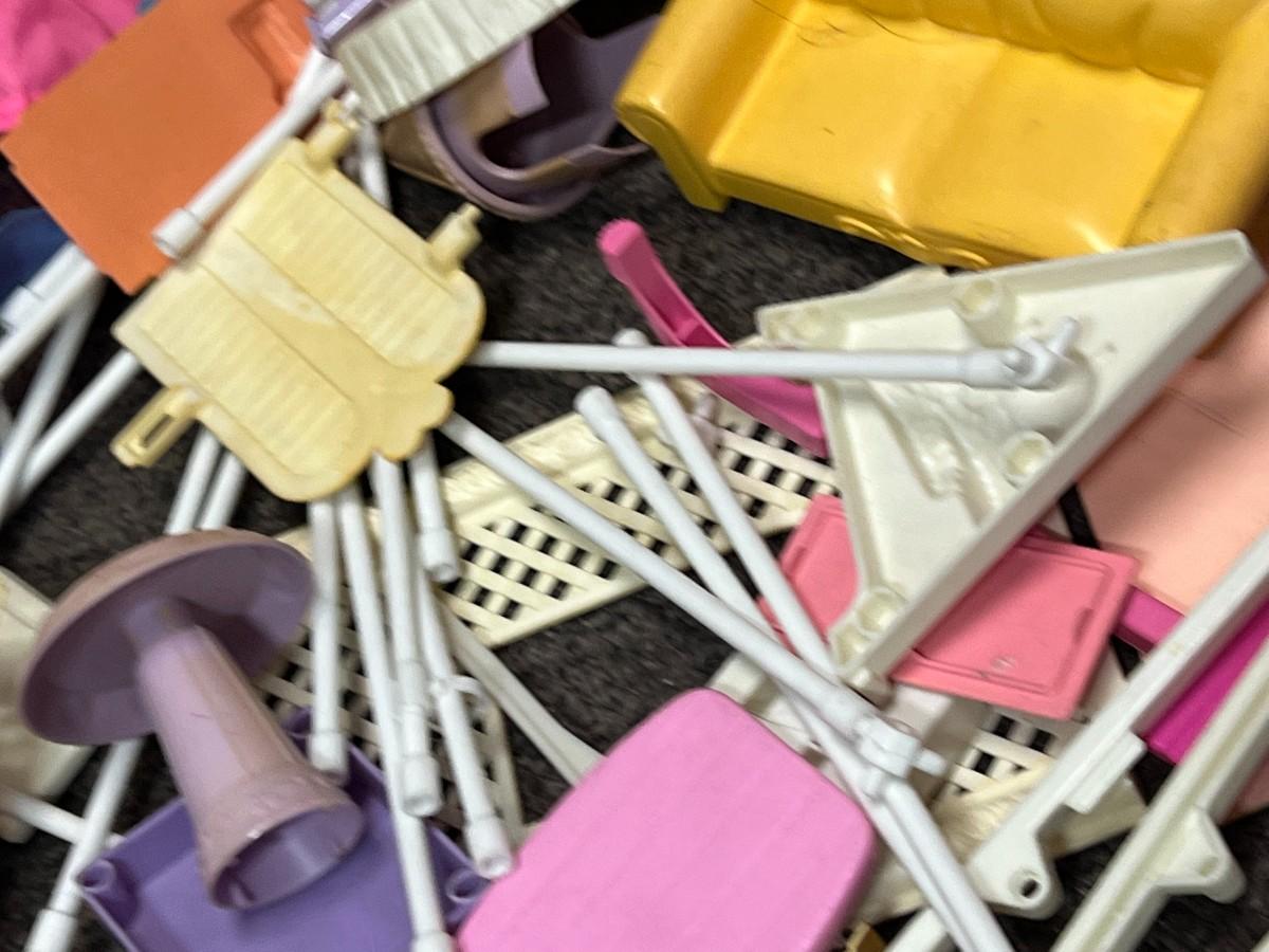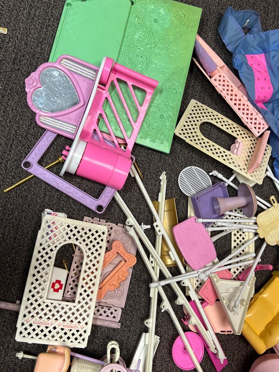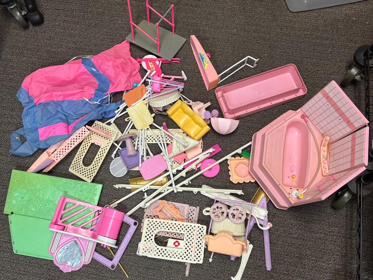Lot of Retro Miscellaneous Barbie Doll Playset Parts Bathtub, Gym Monkey Bars, Fencing & More