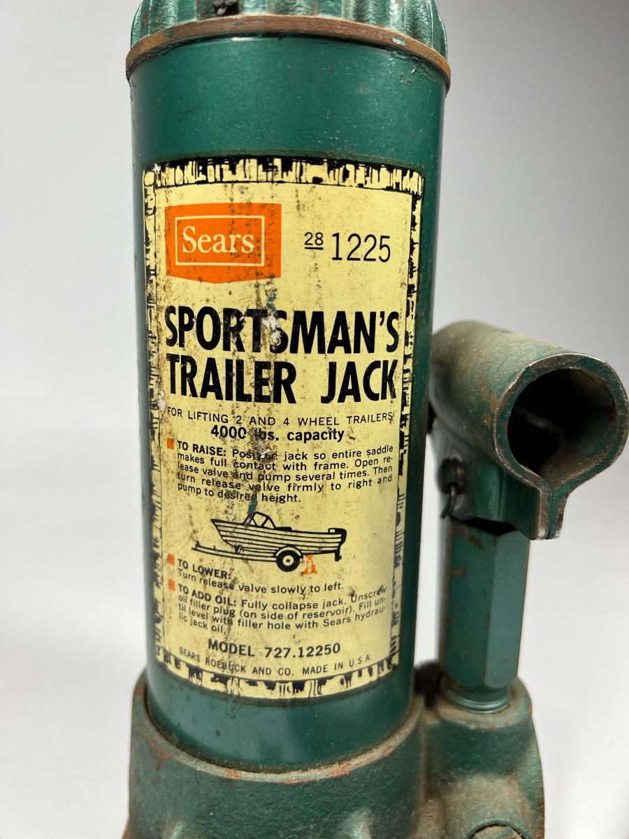 Vintage Green Sportsman's Trailer Jack Sears Bottle Jack