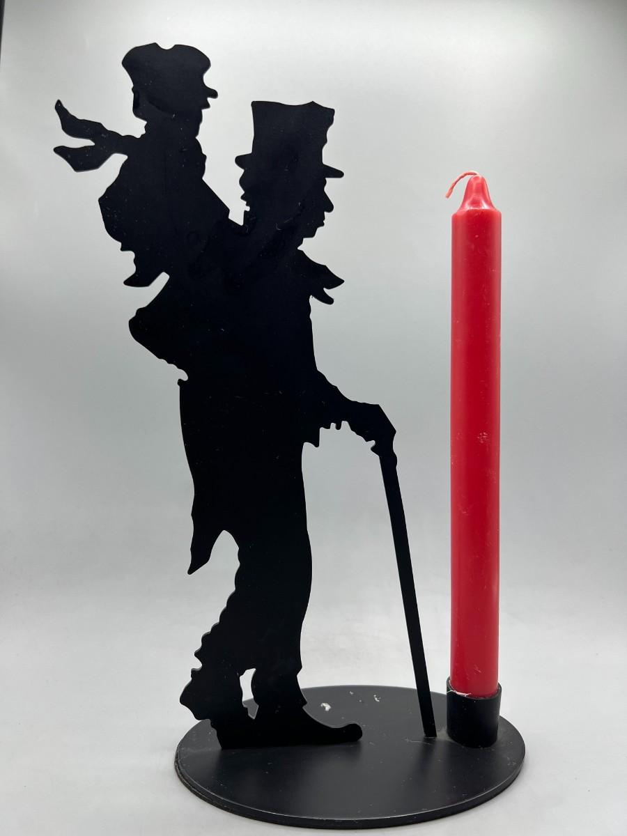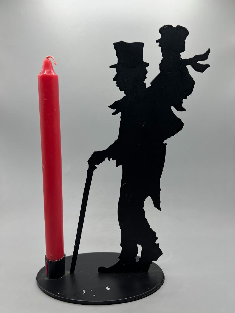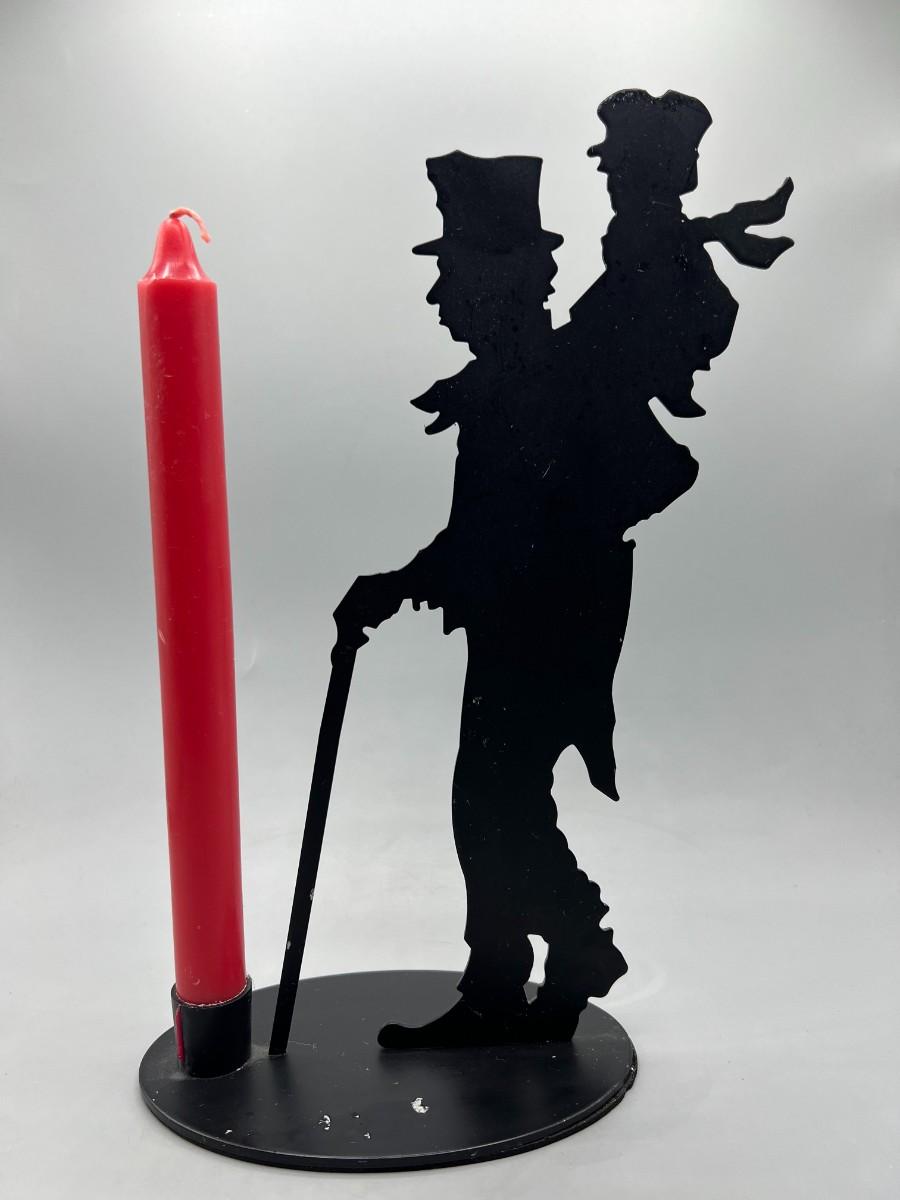 Vintage Dept 56 Bob Cratchet & Tiny Tim Silhouette Candle Stick Holder. In previously used condition, new candle.