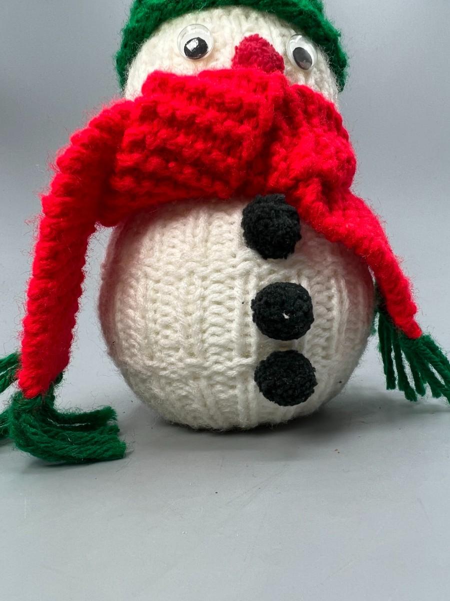Vintage Crochet Knit Snowman Christmas Holiday Decoration