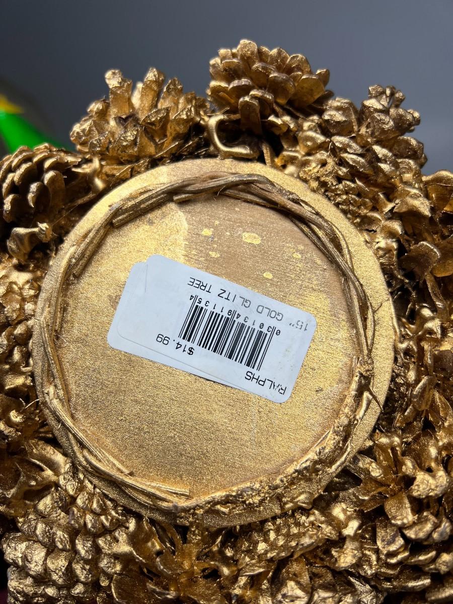 There is some light wear to the pine cone tree, but there is no significant damage and is in overall good displayable condition. Check pictures for more details and for sizing.