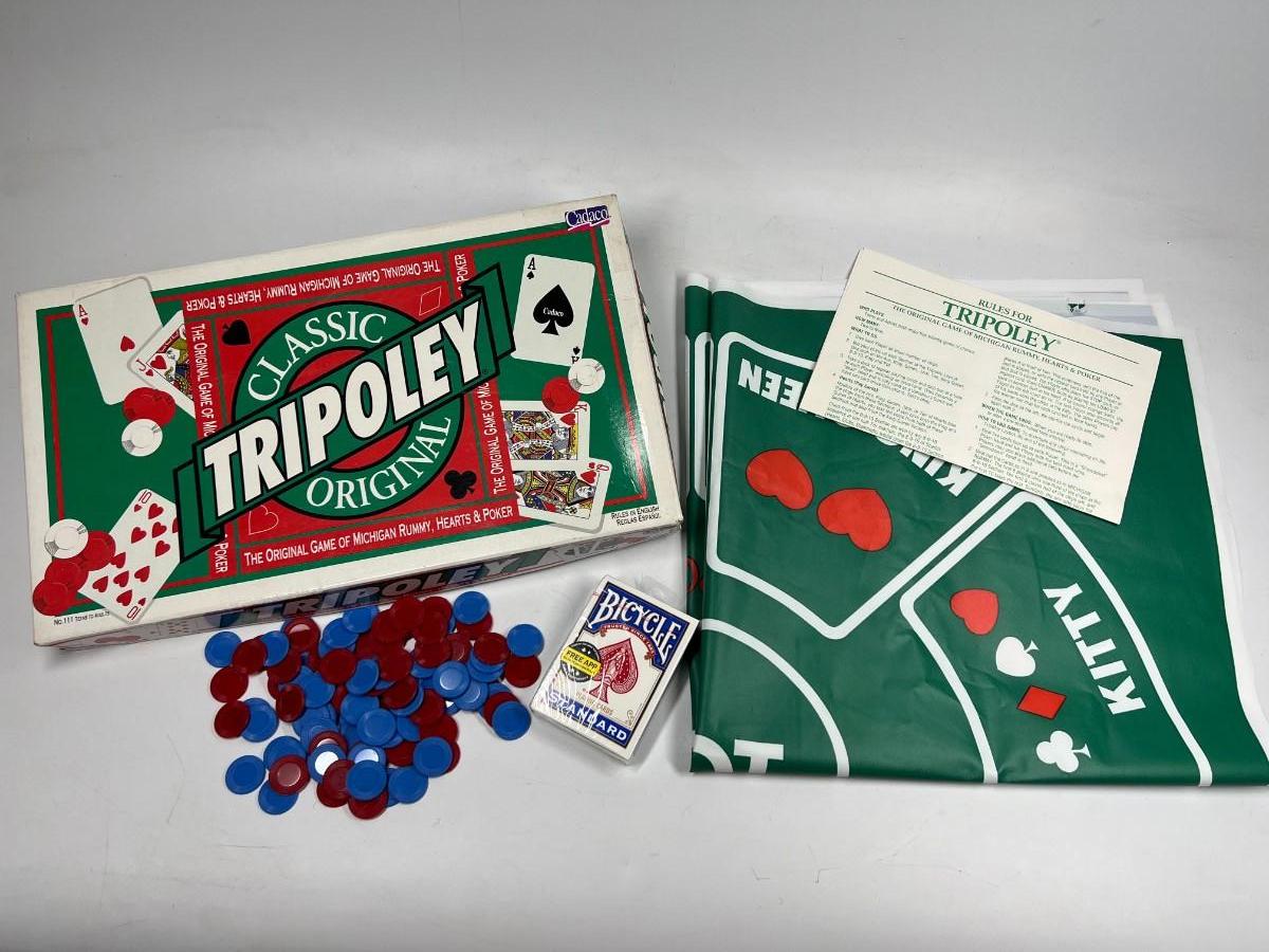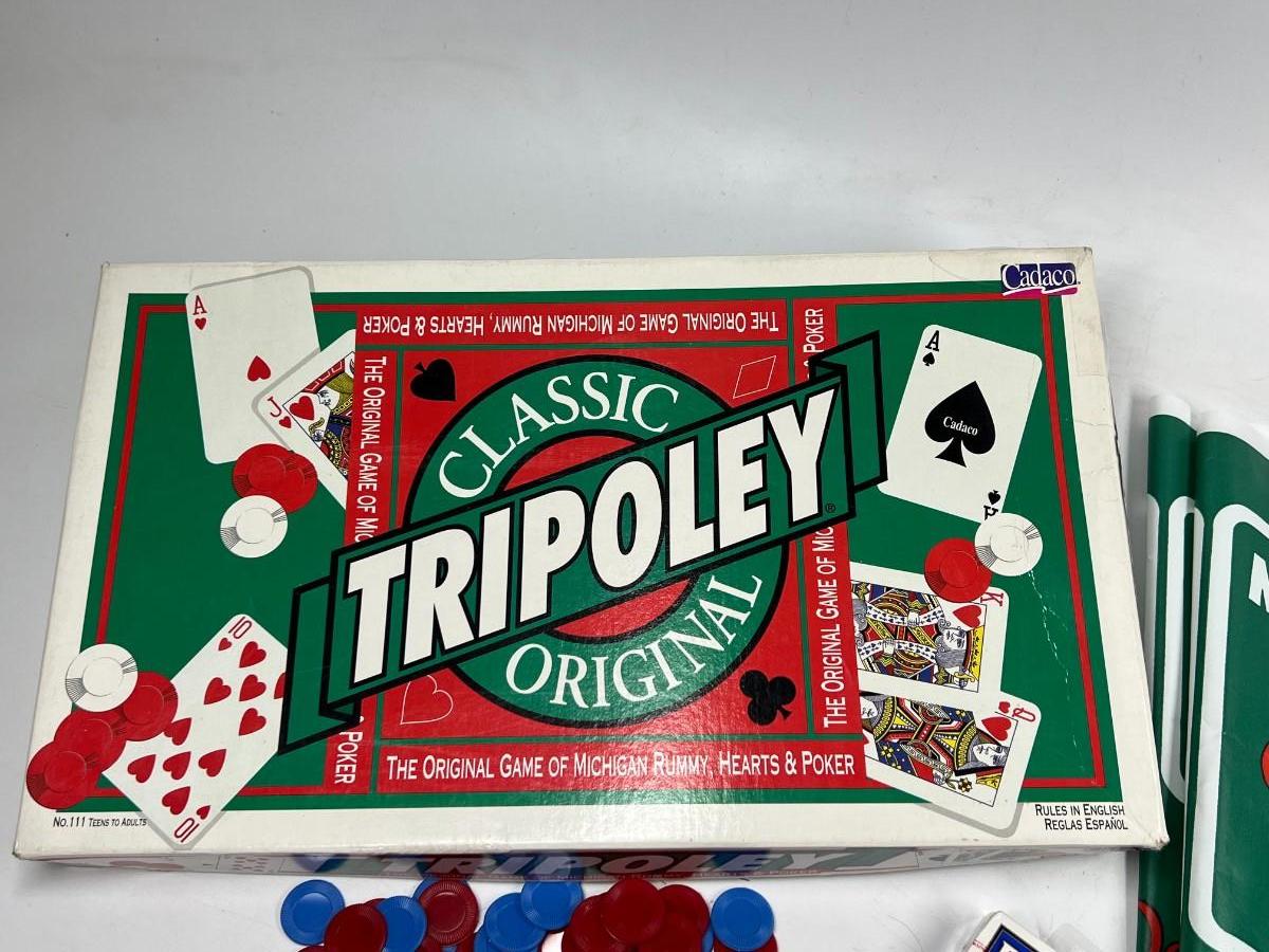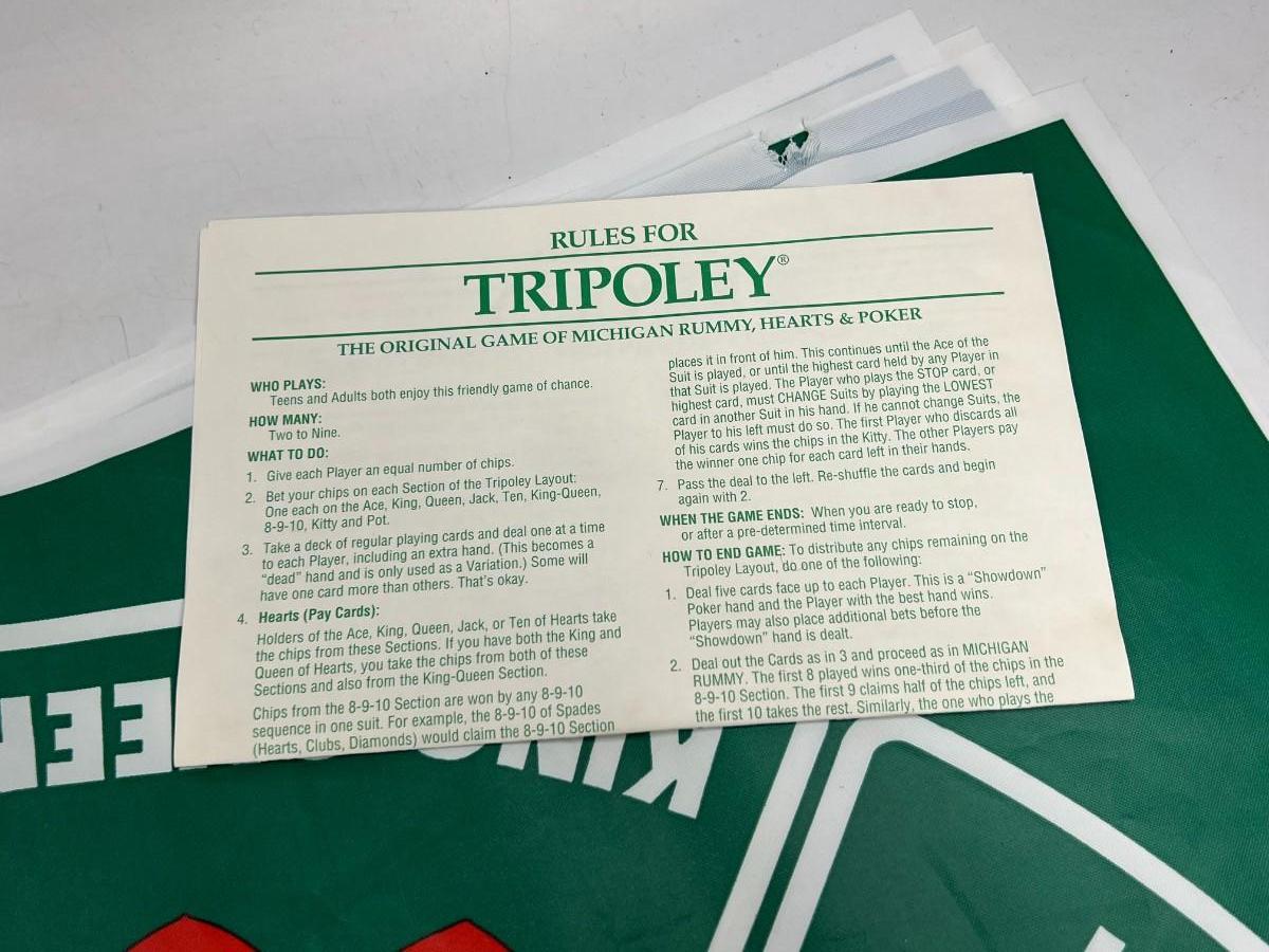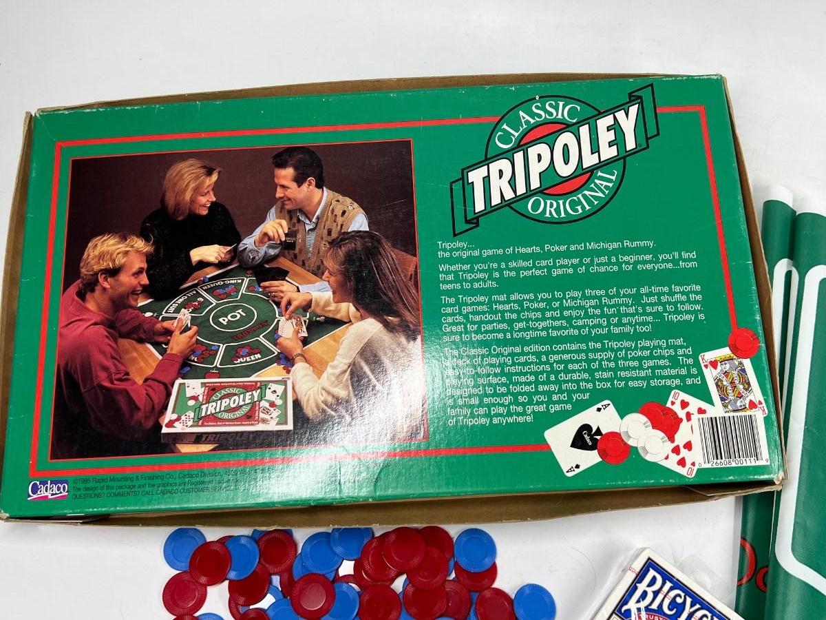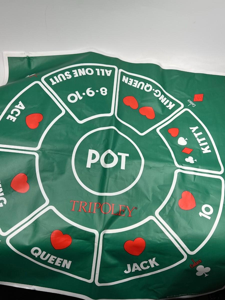 Classic Original Tripoley Card Game. Complete, some wear to game table cover edge.
