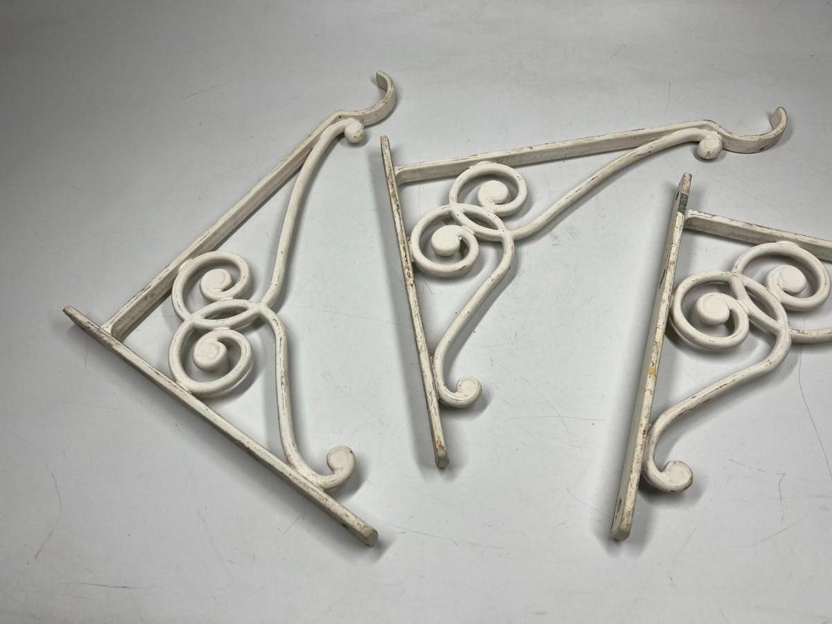Lot of Retro White Metal Shelf Cottagecore Scroll Brackets