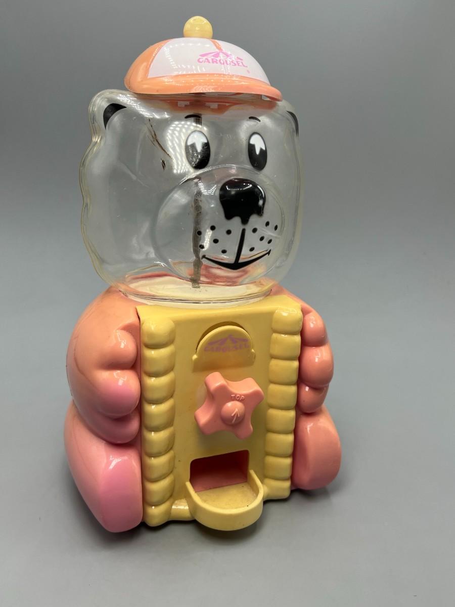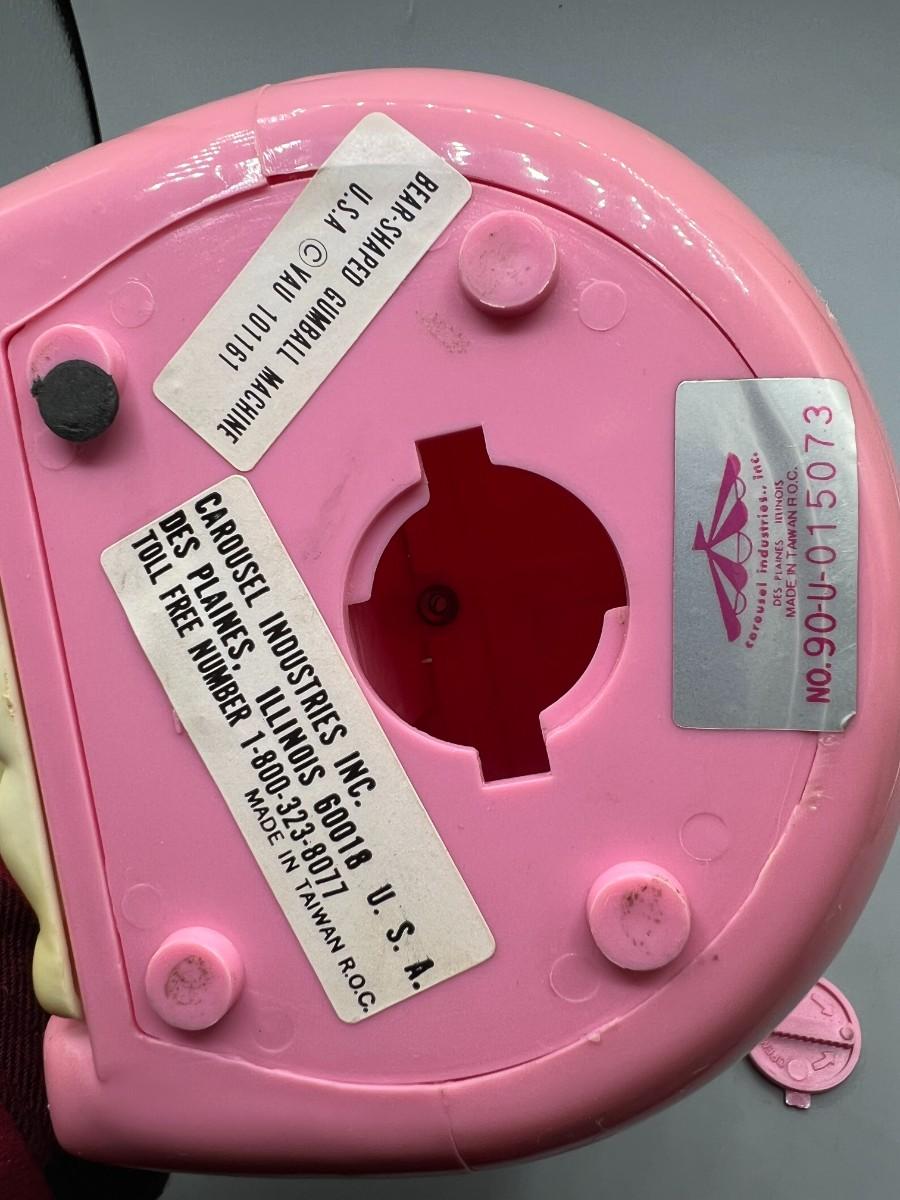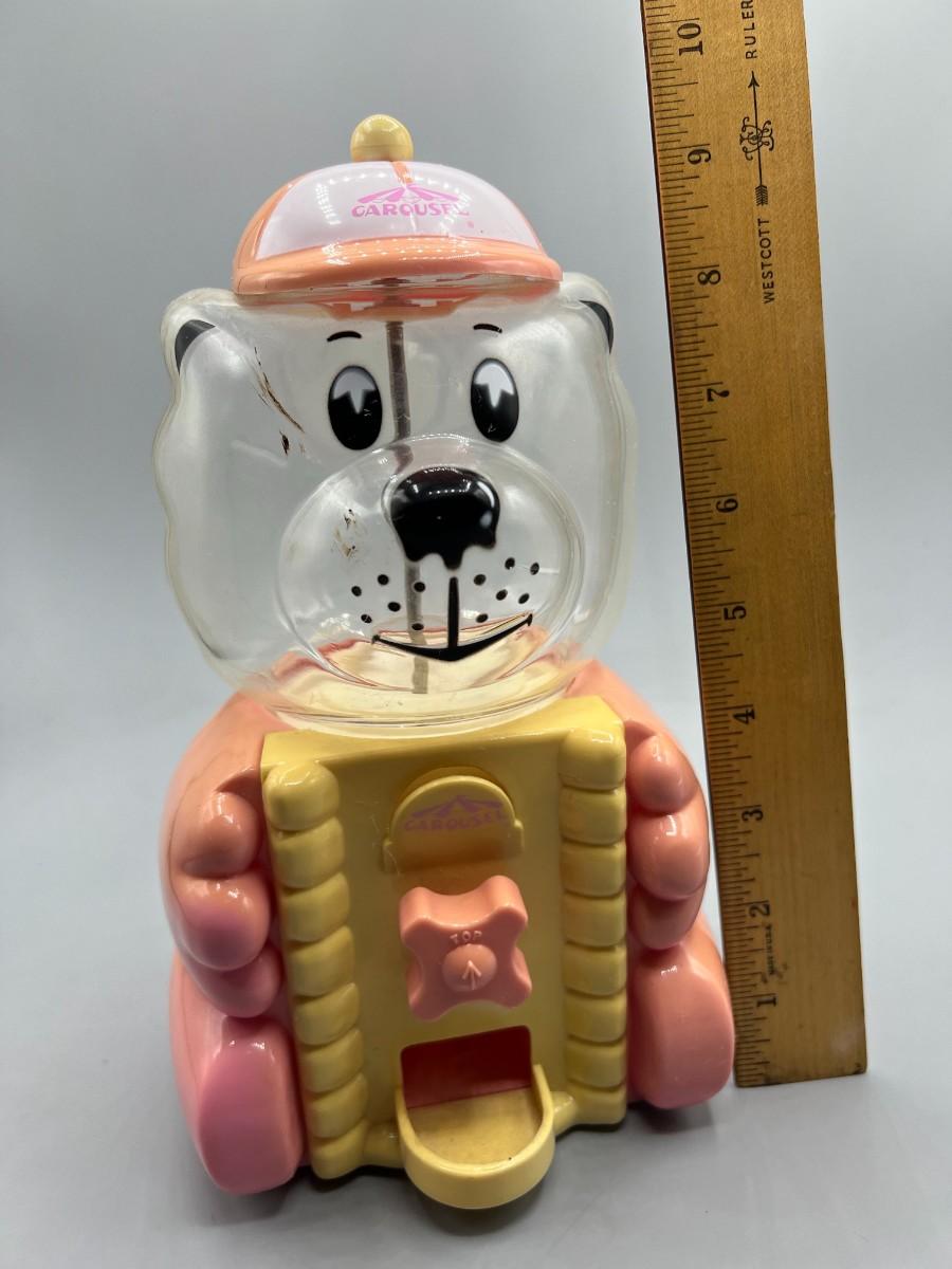 Vintage Carousel Industries Inc. Des Plaines Illinois Pink Bear Plastic Candy Dispenser