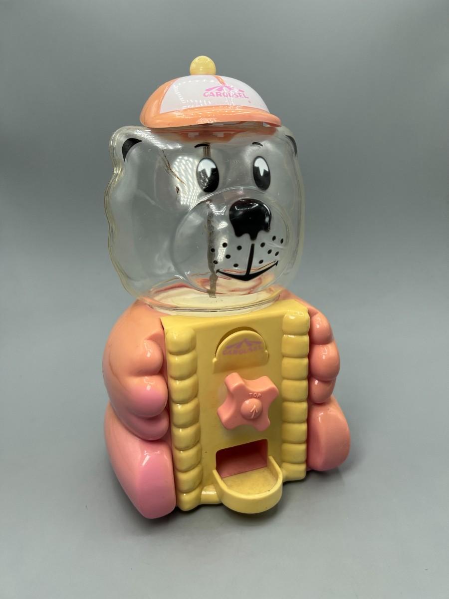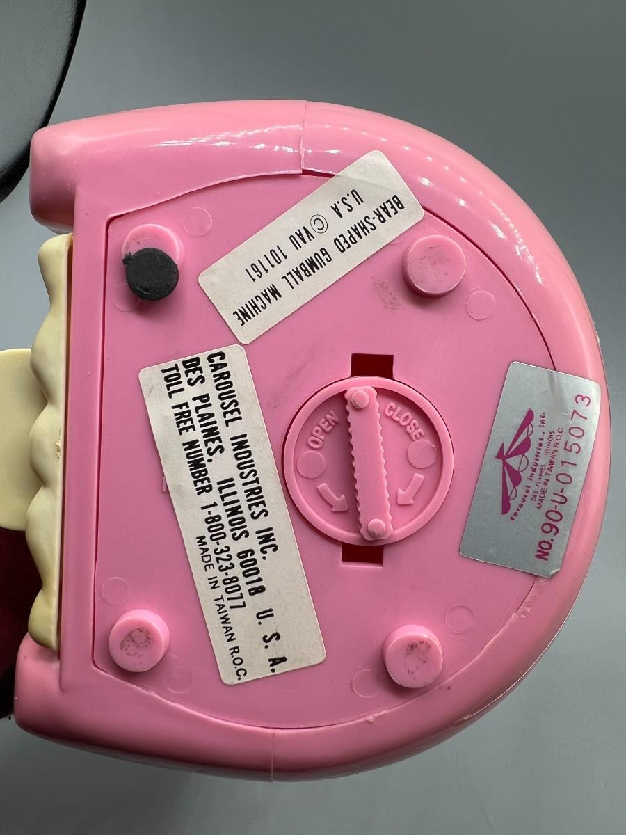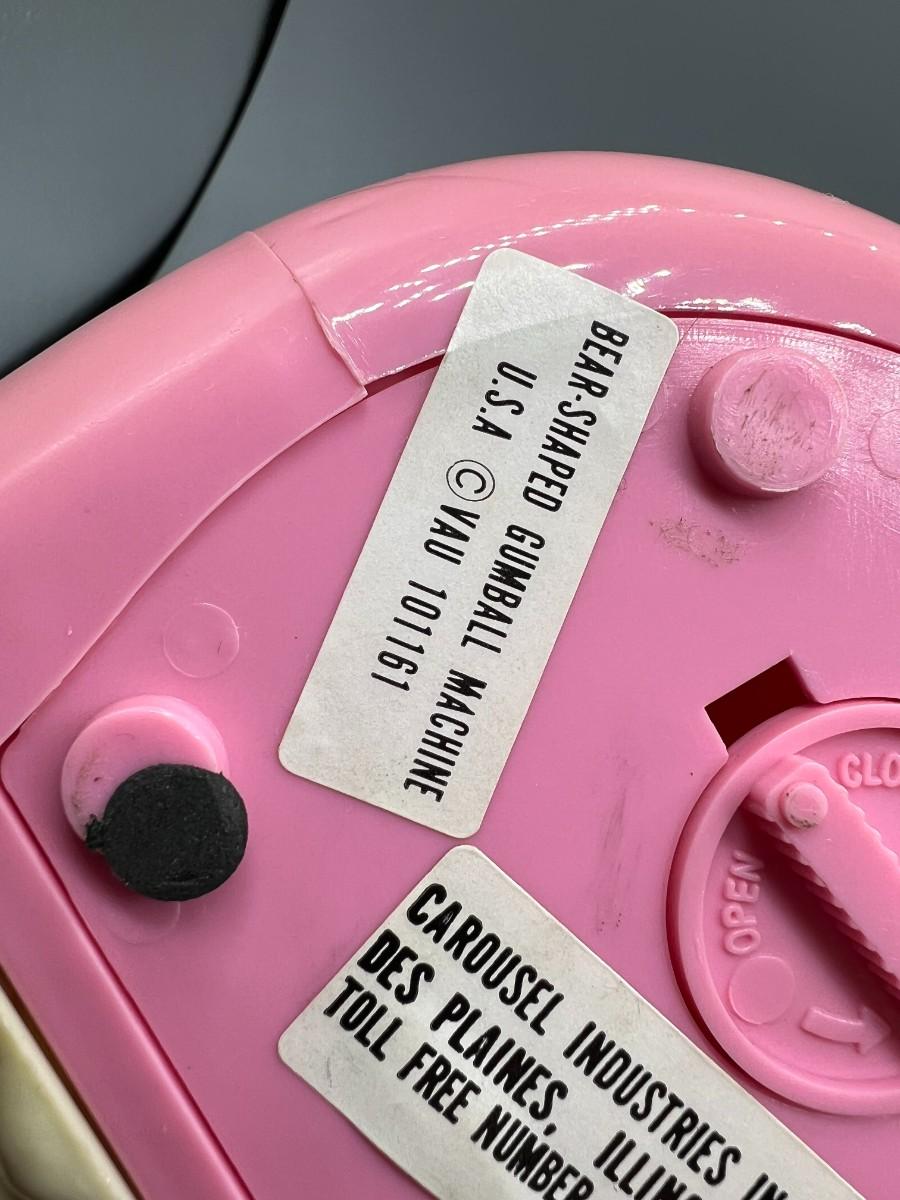 Vintage Carousel Industries Inc. Des Plaines Illinois Pink Bear Plastic Candy Dispenser