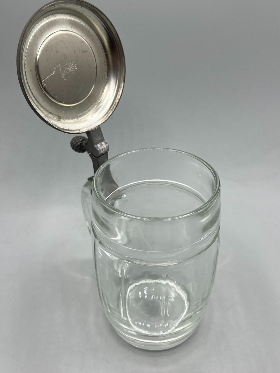 Vintage Rein-Zinn RHW Lidded Glass Plain Clear Glass Beer Stein Drinking Mug