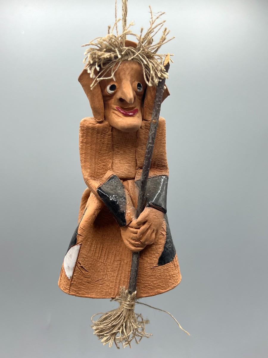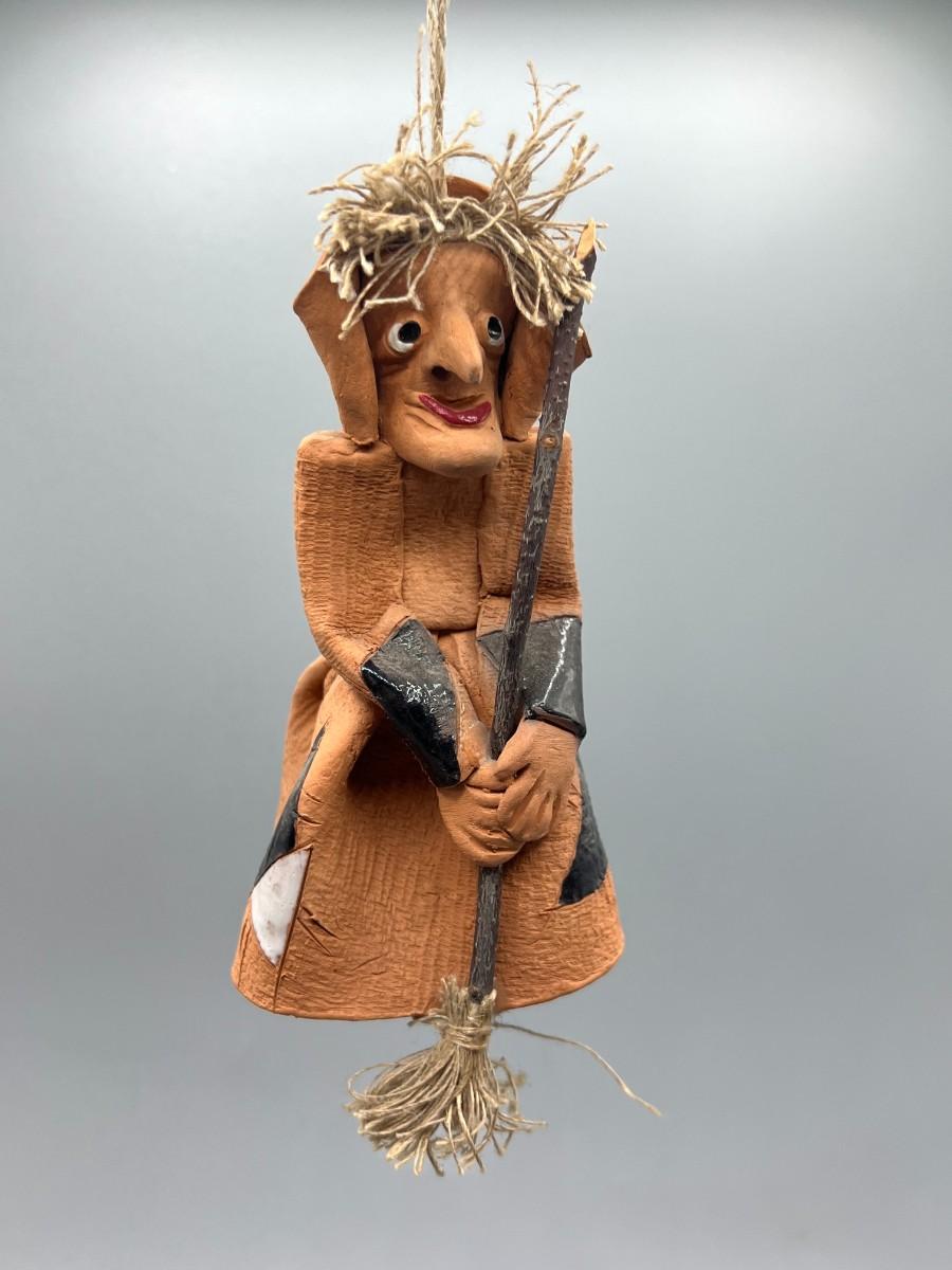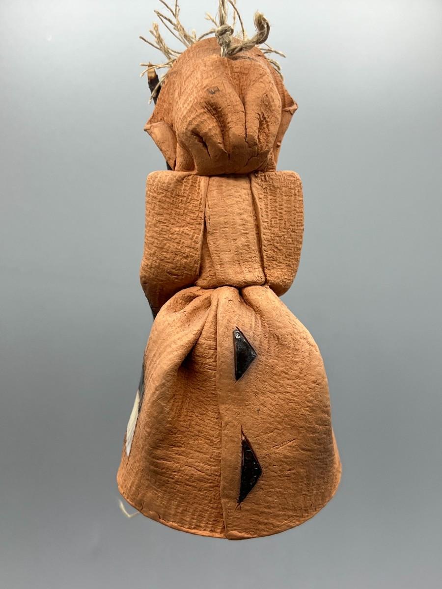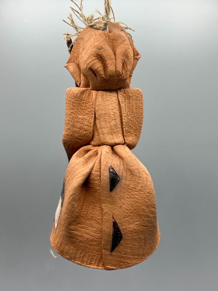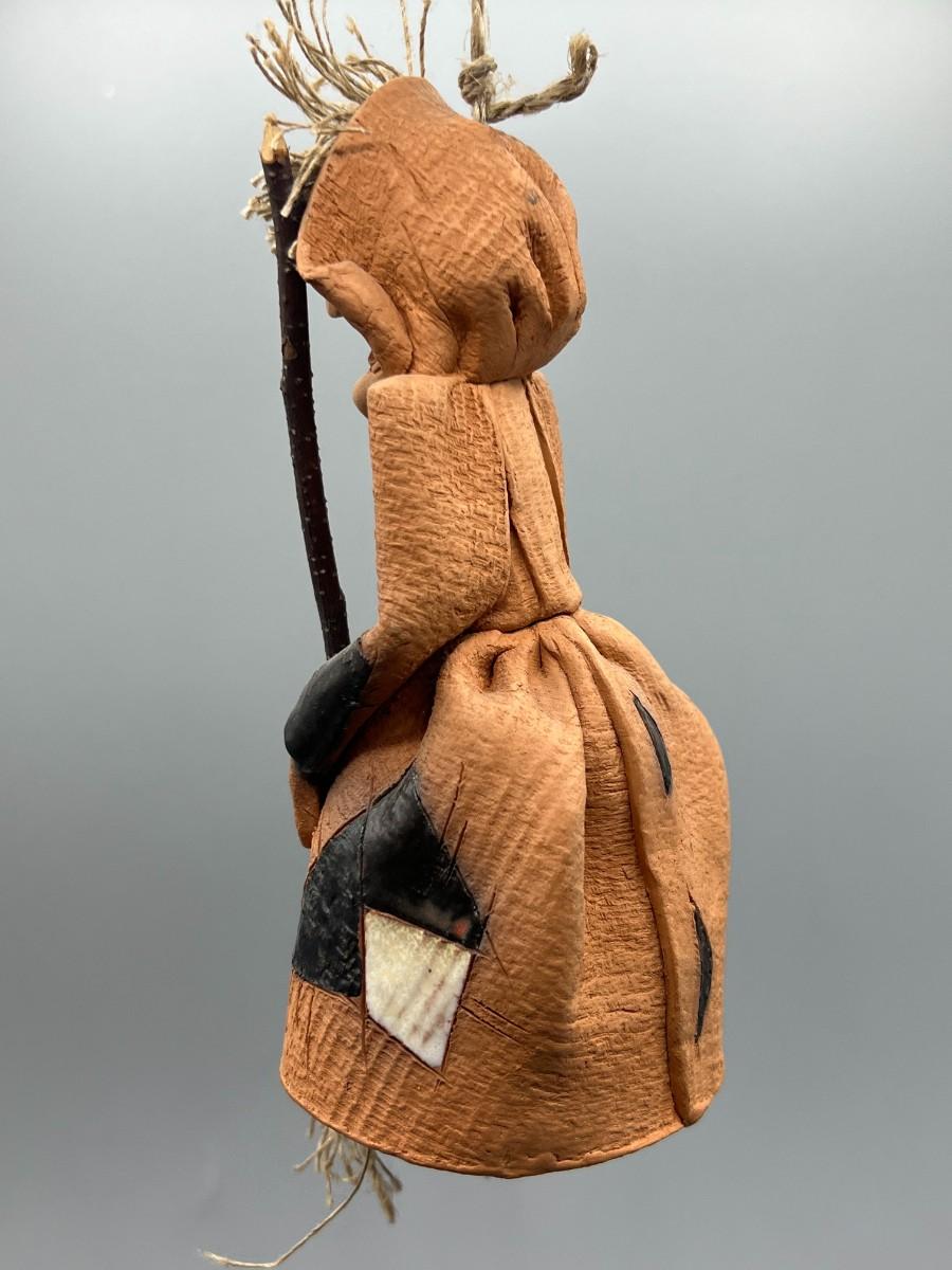 Vintage Clay Pottery Art Pilgrim Woman Witch Hanging Rustic Bell