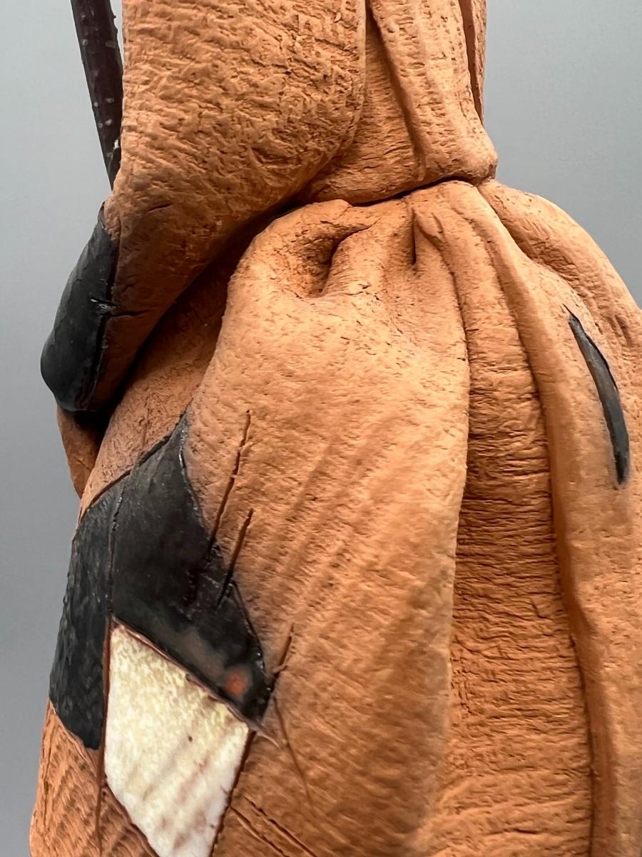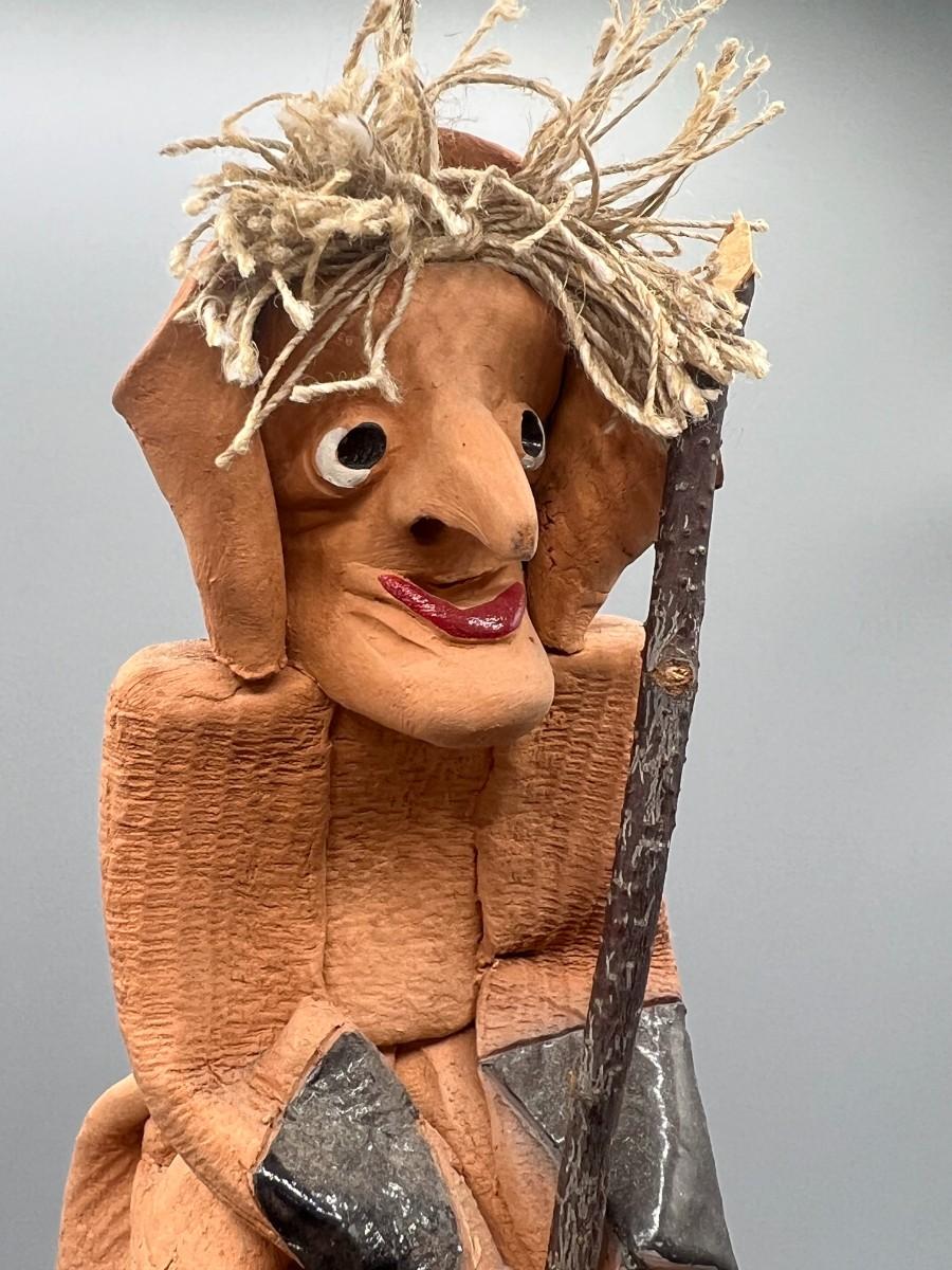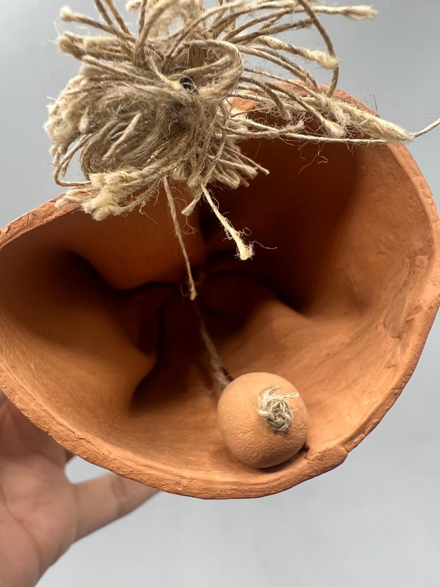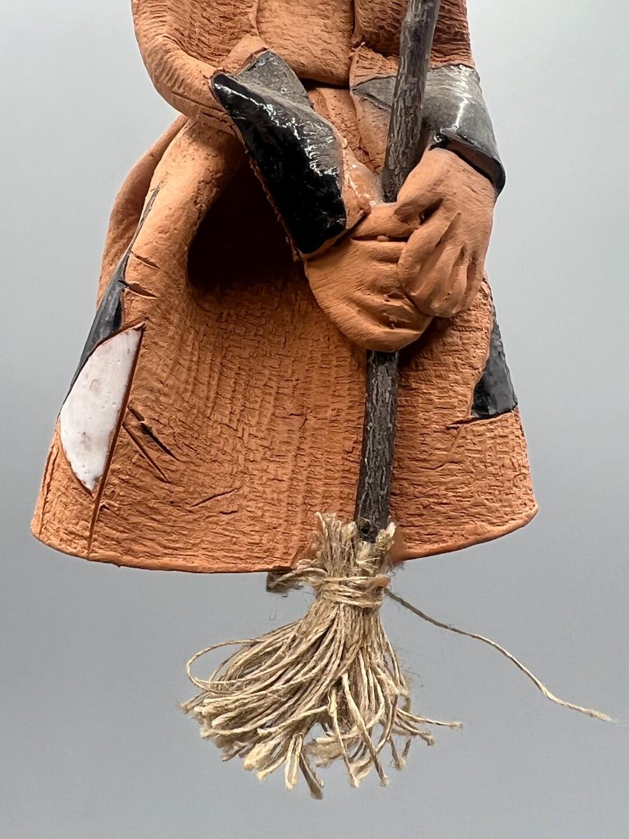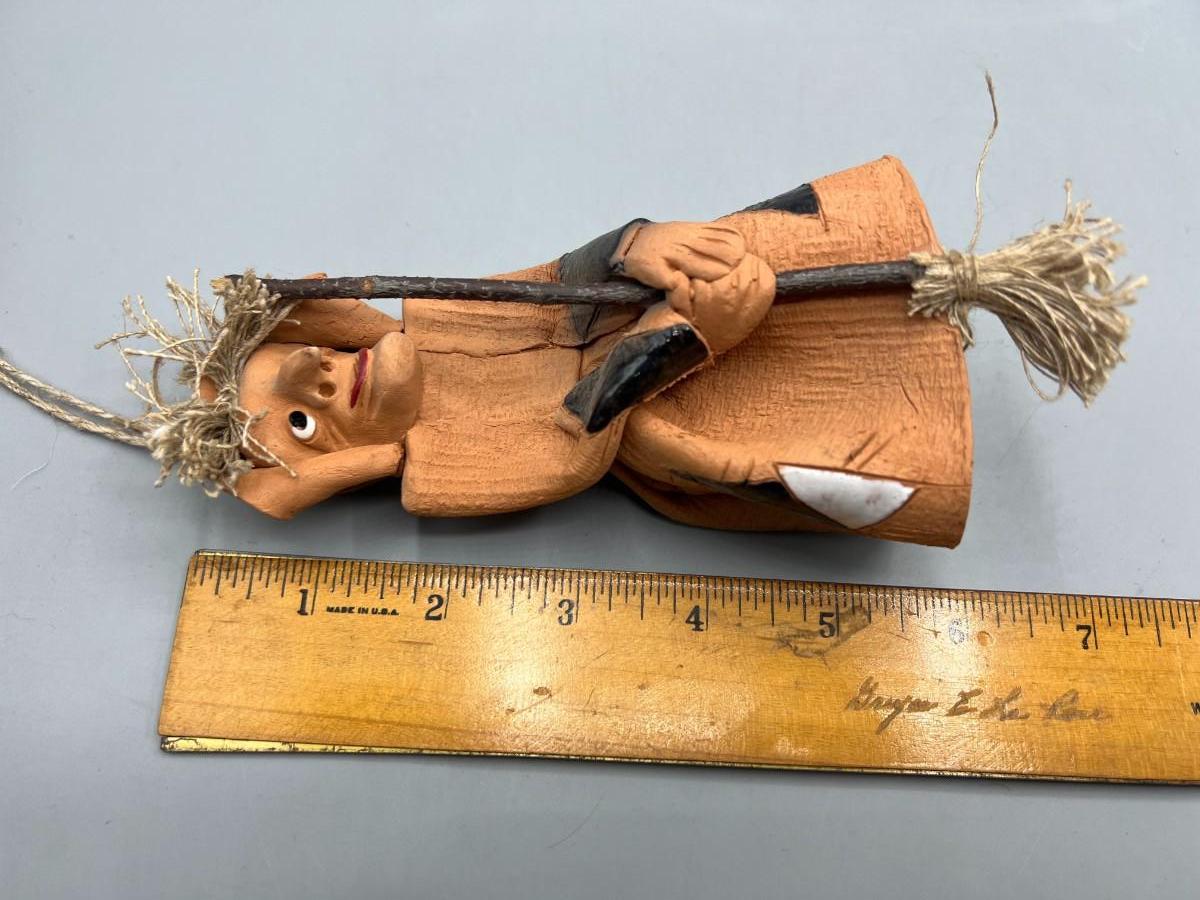 Vintage Clay Pottery Art Pilgrim Woman Witch Hanging Rustic Bell