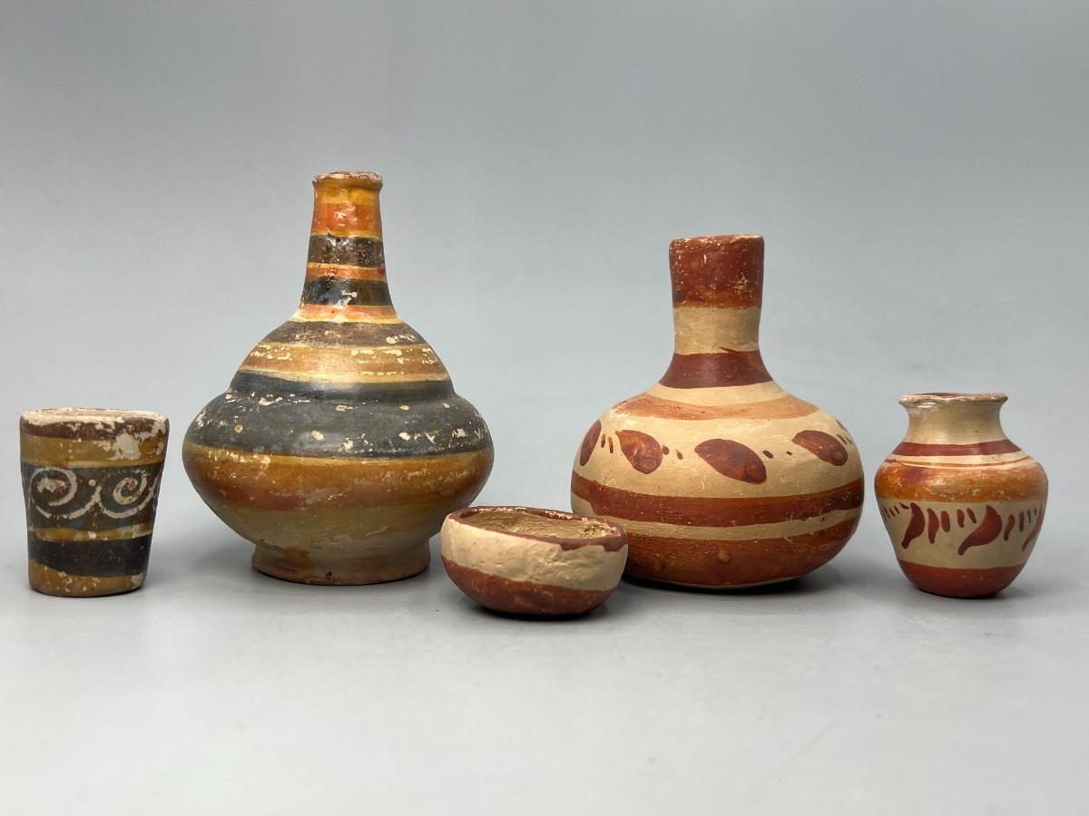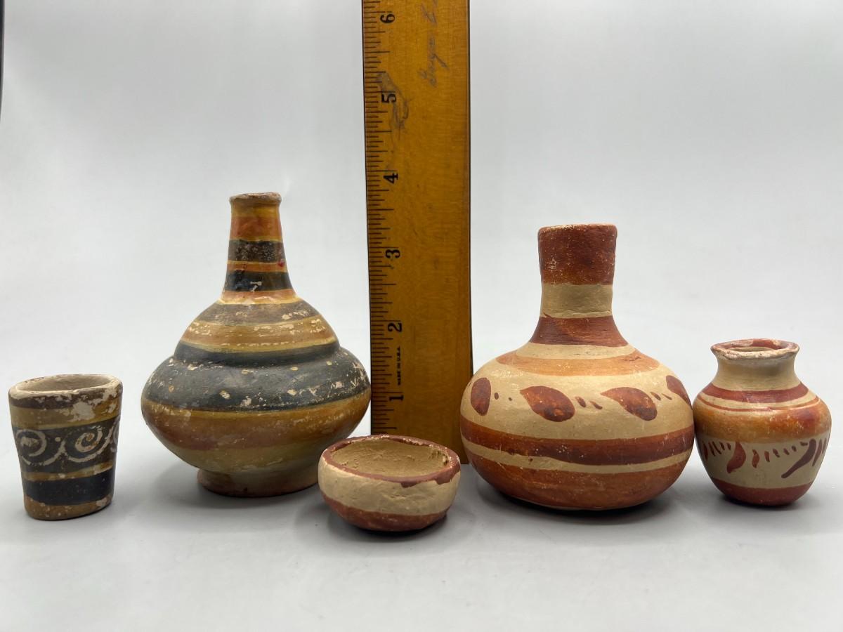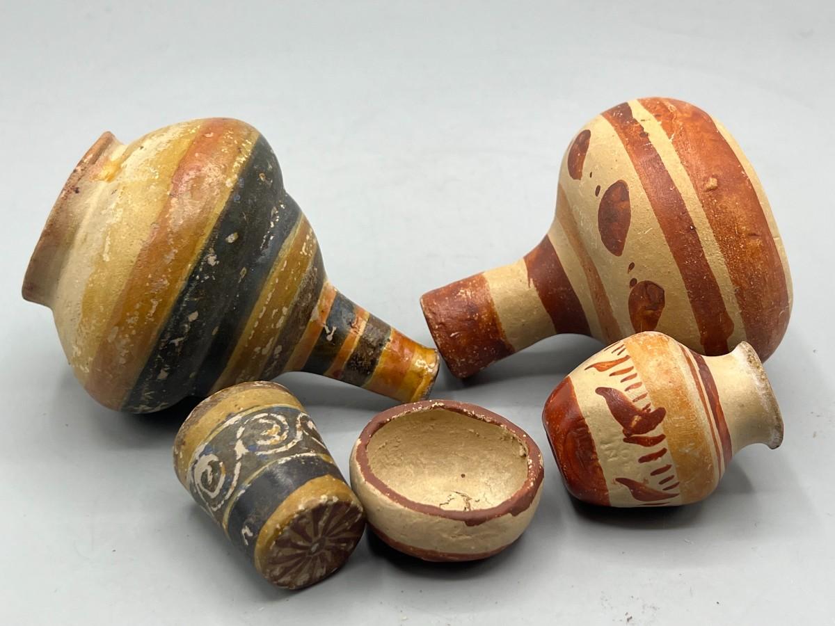 Lot of Small Miniature Vintage Pottery Folk Tribal Colorful Clay Pottery Art Vase Vessels