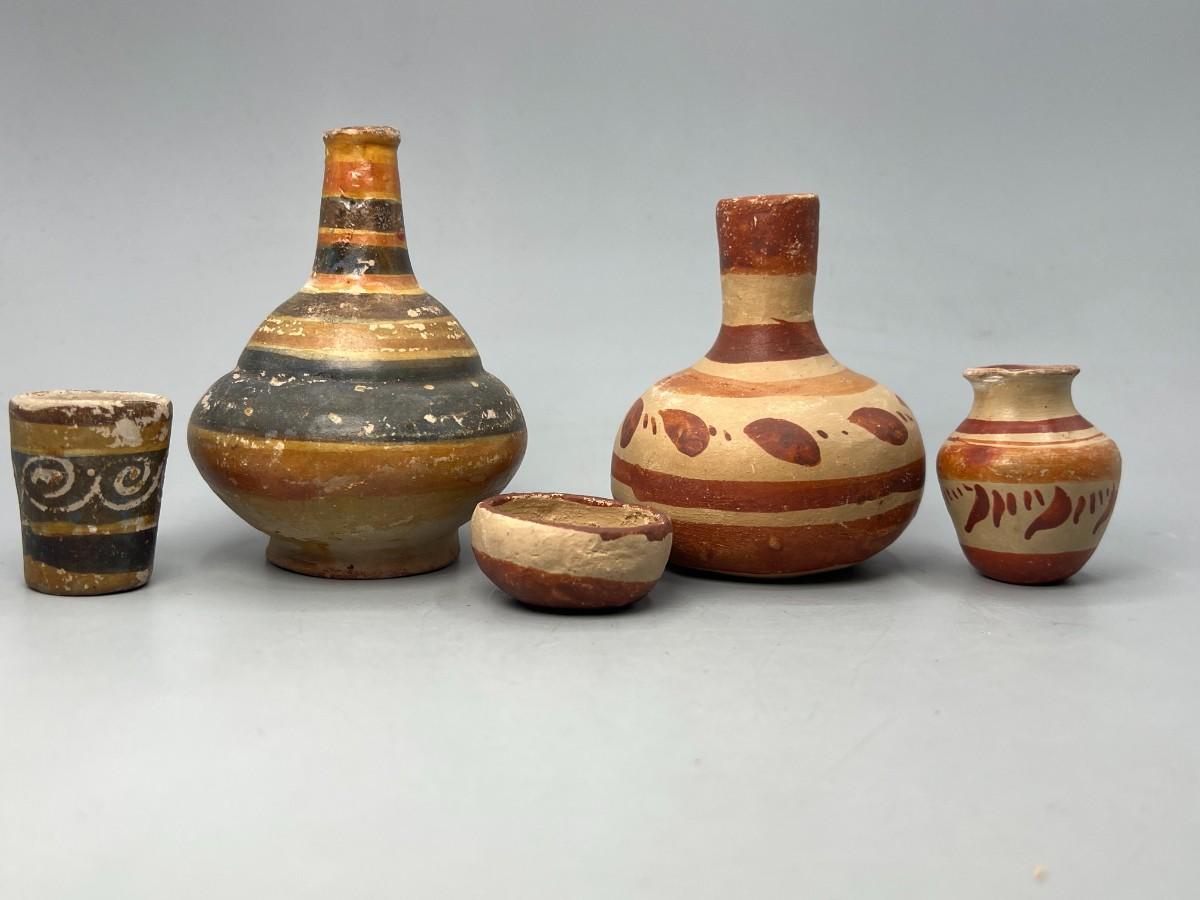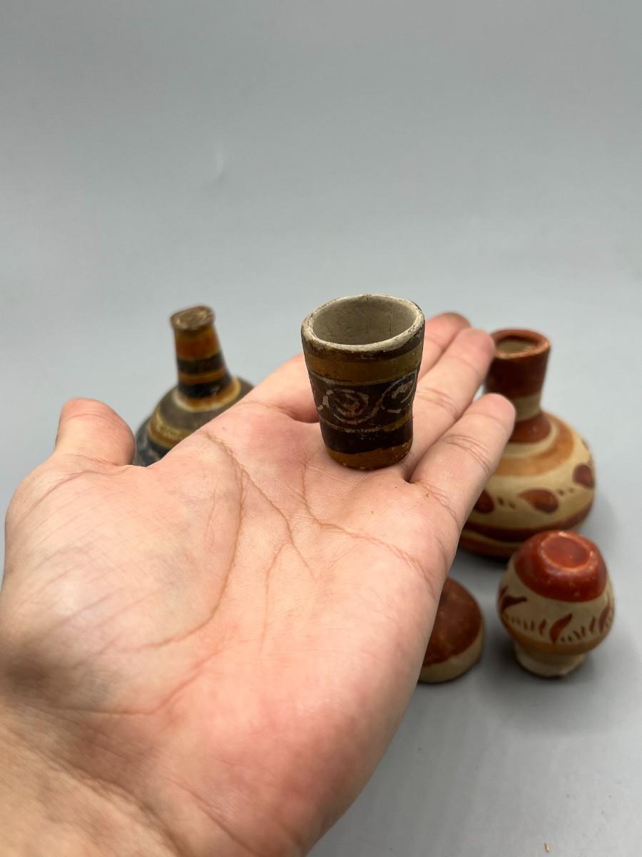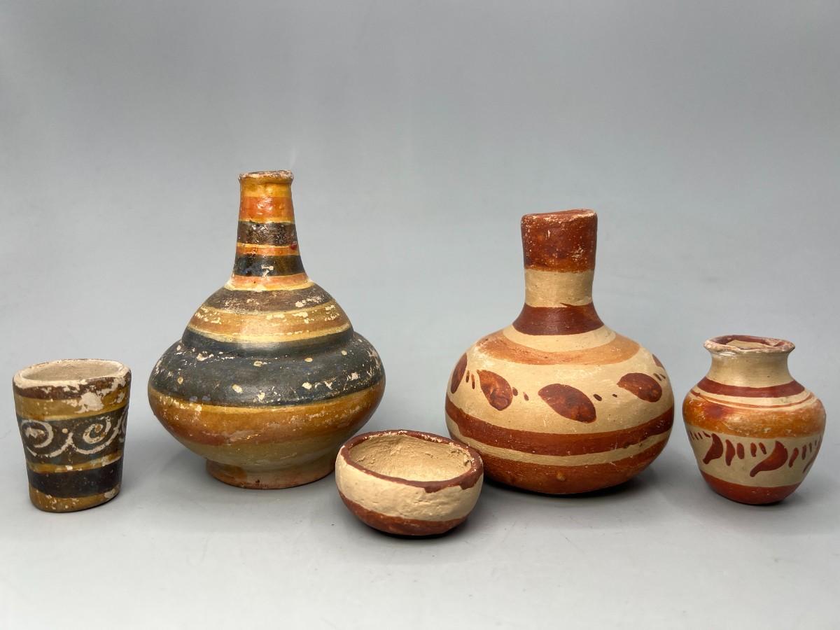 Lot of Small Miniature Vintage Pottery Folk Tribal Colorful Clay Pottery Art Vase Vessels