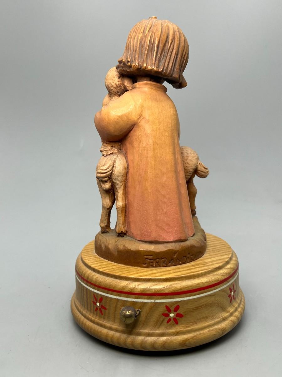 Vintage Anri Ferrandiz The Good Shepherd Reuge Swiss Musical Movement Lullaby Rotating Music Figurine