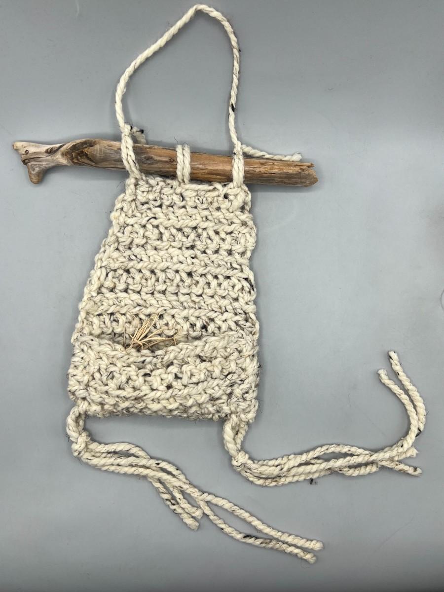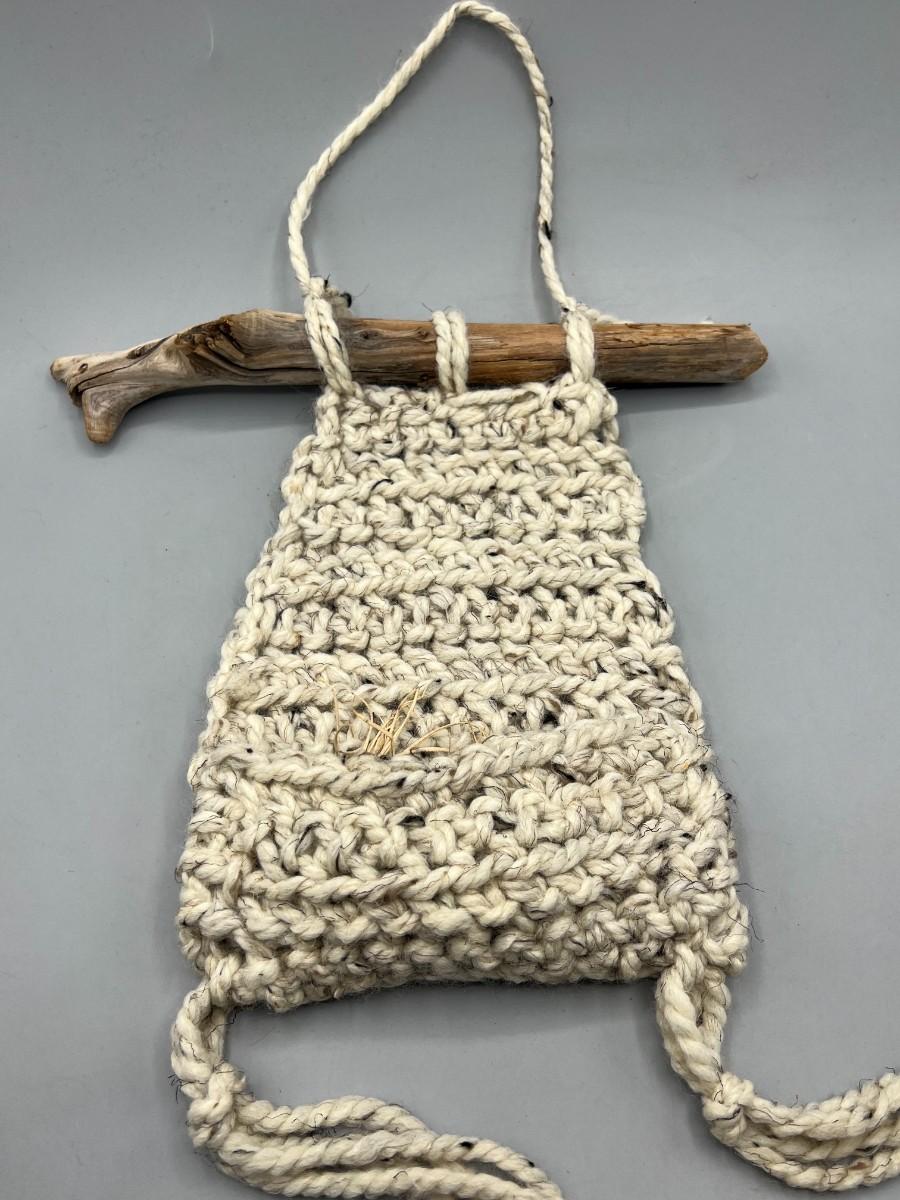 Vintage Rustic Handmade Crochet Hanging Pouch Tassels Decor