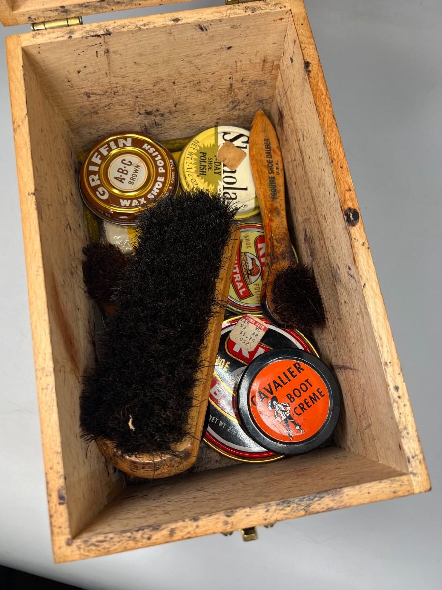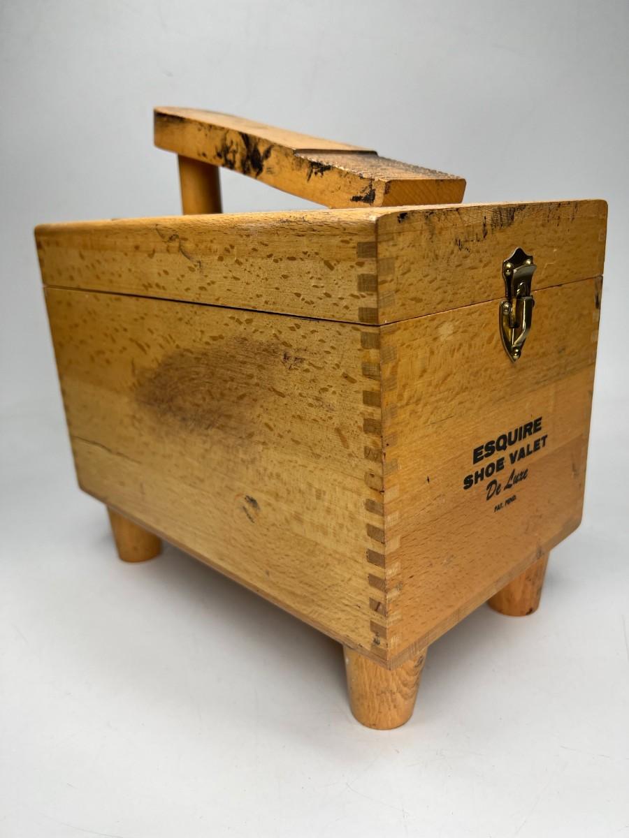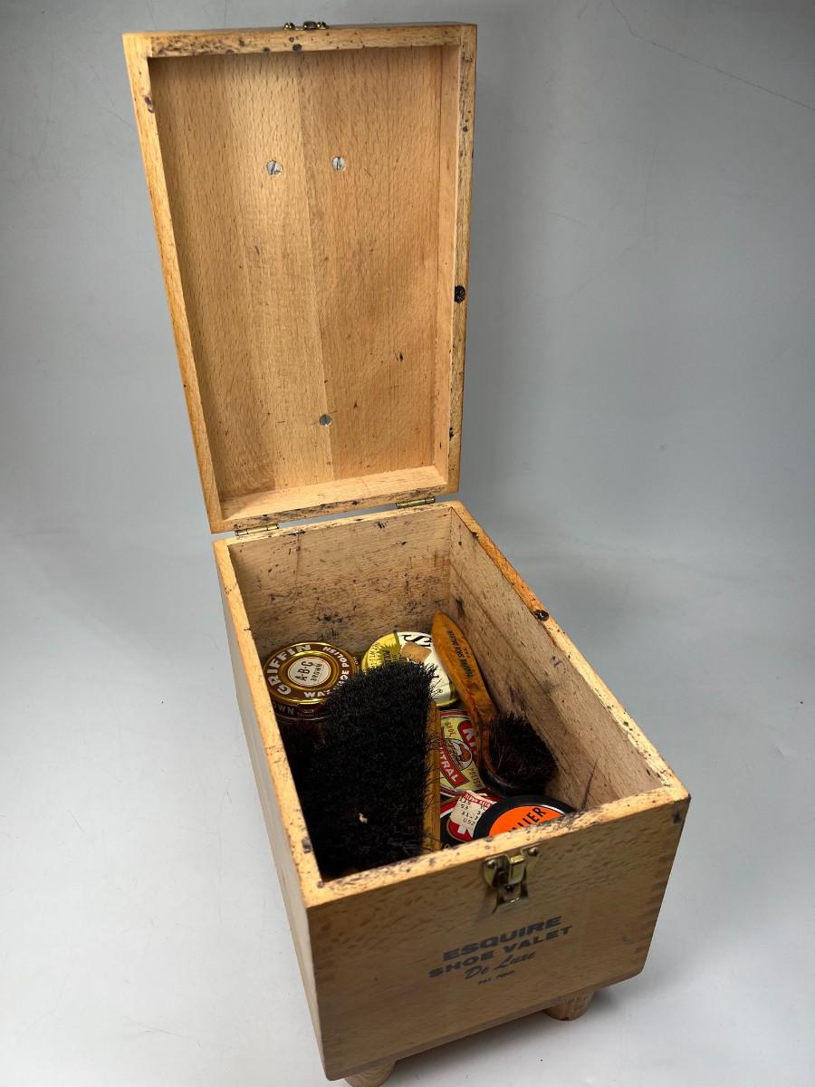 Vintage Esquire Shoe Valet De Luxe Wooden Shoe Shine Box with Shoe Polishes & Brushes