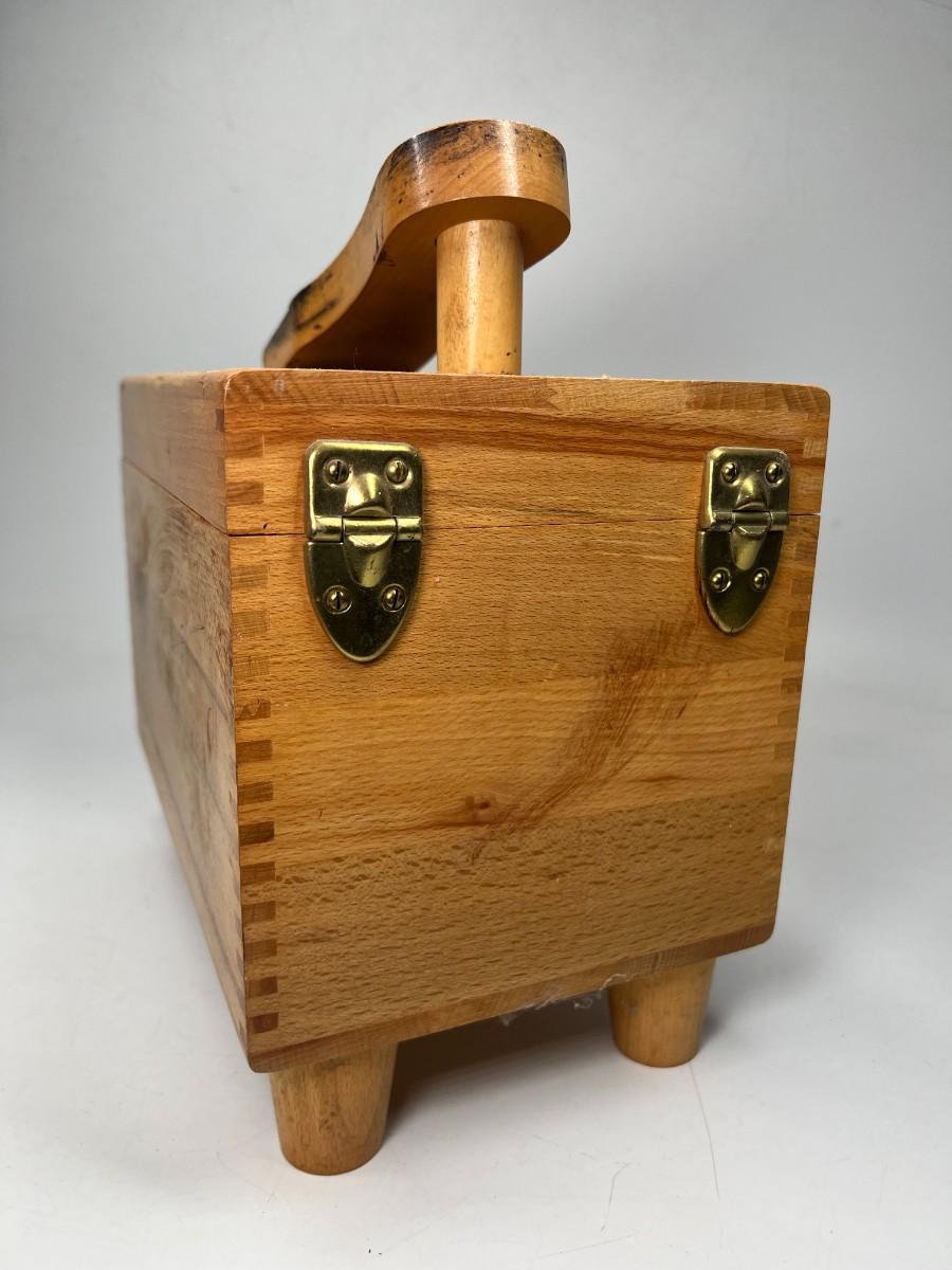 There is some noticeable wear to the wooden box and to the materials inside the box, but there is no significant damage and is in overall good collectible or useable condition. Check pictures for more details and for sizing.
