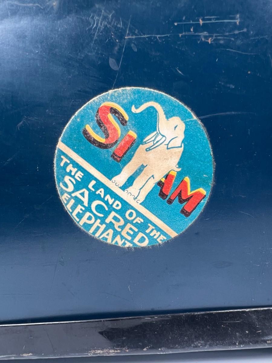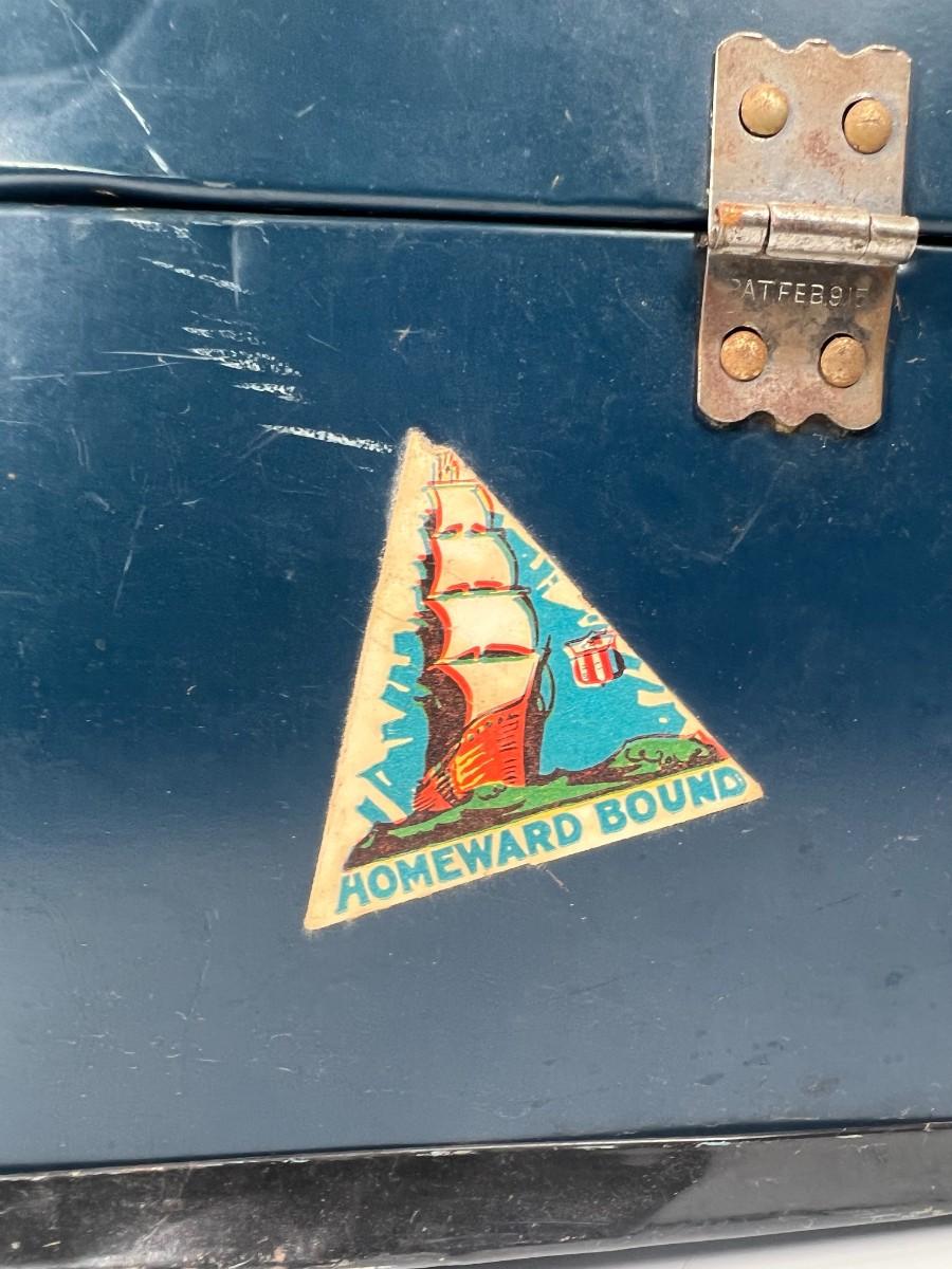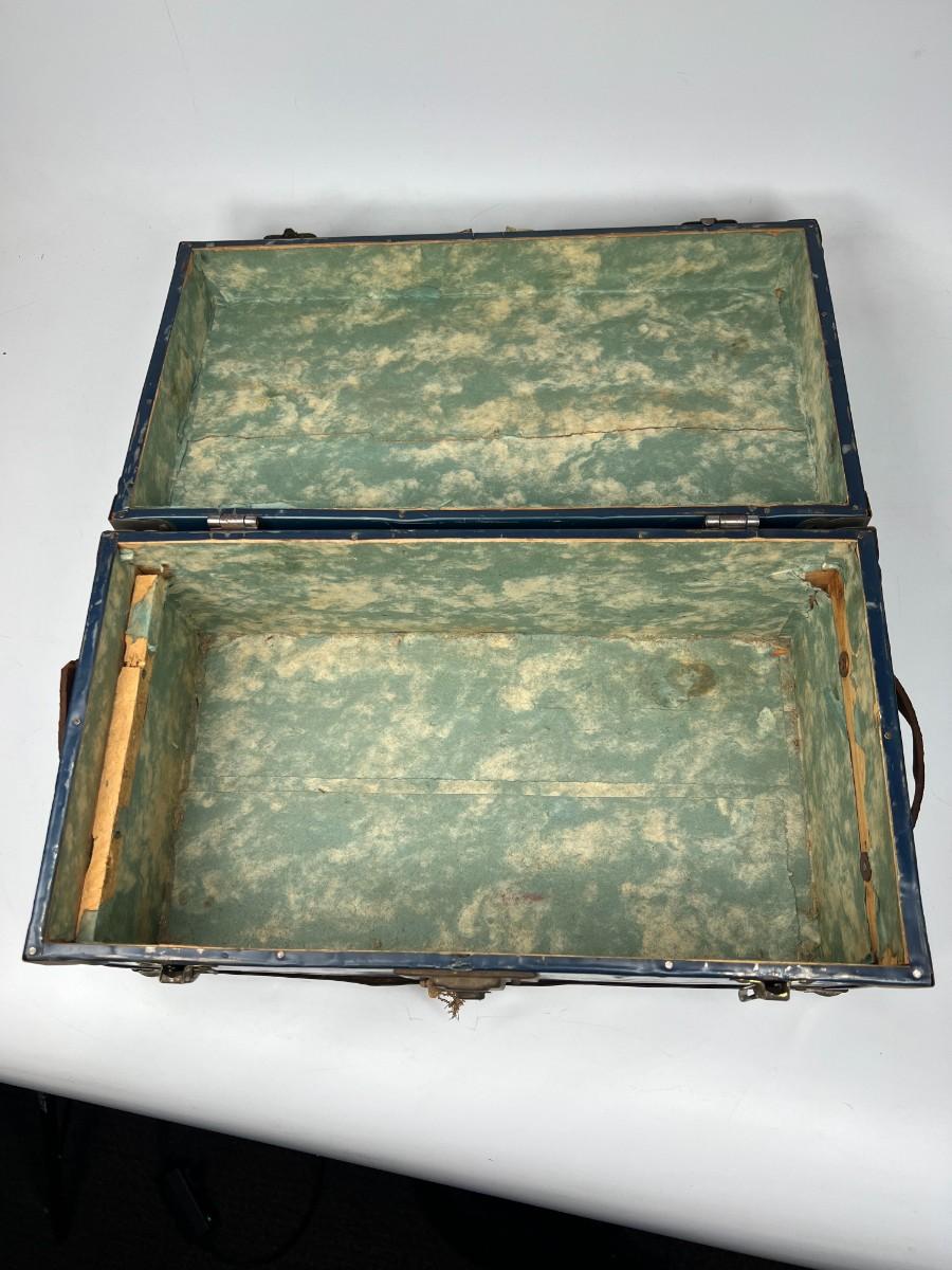 There is noticeable vintage wear all over the box, but there is no significant damage and is in overall fair condition. The lock latch is broken, check pictures for more details and for sizing.