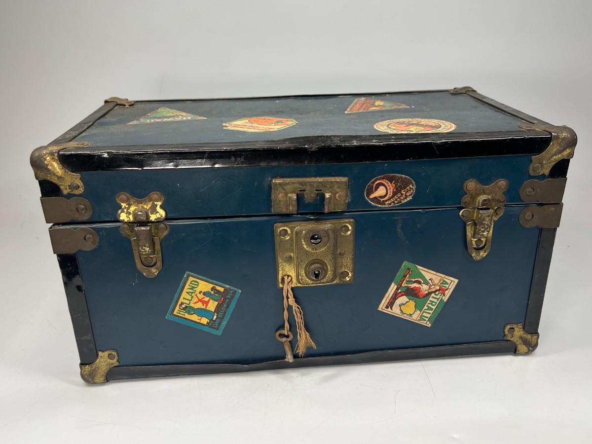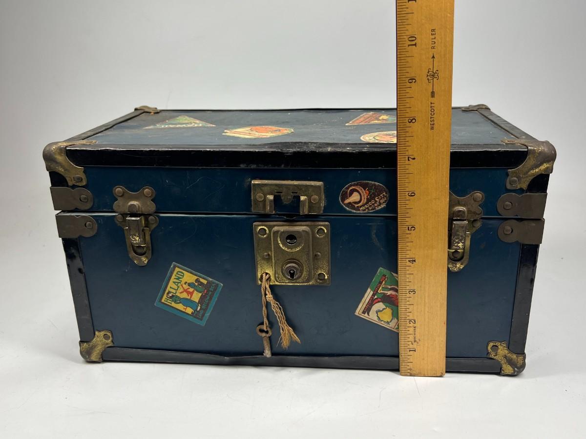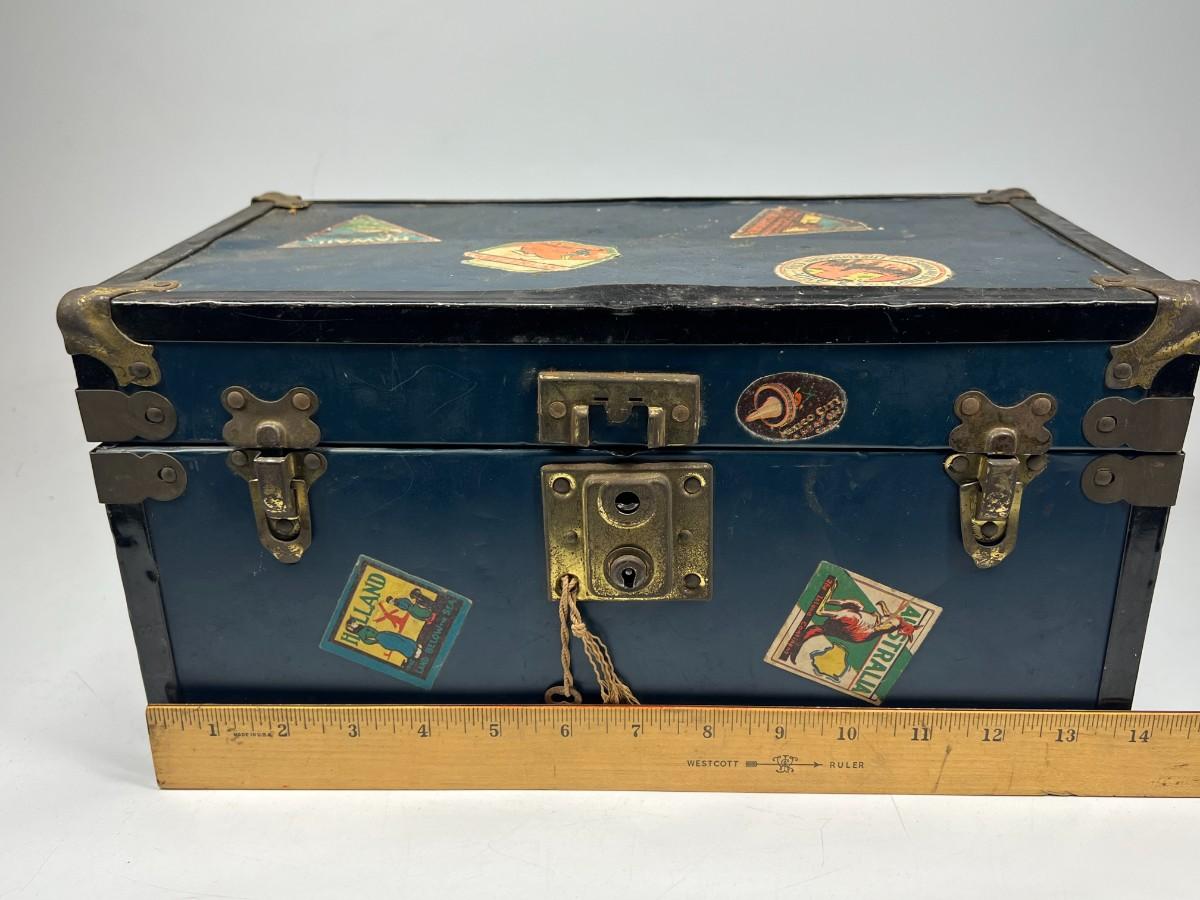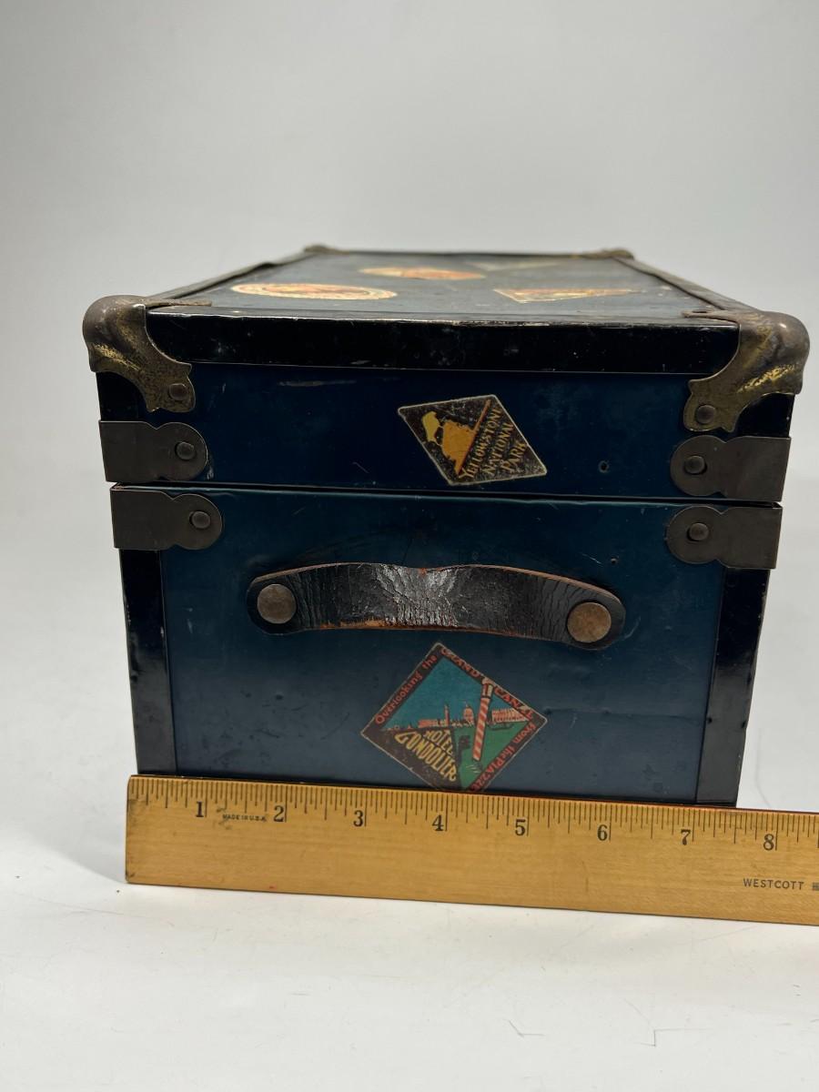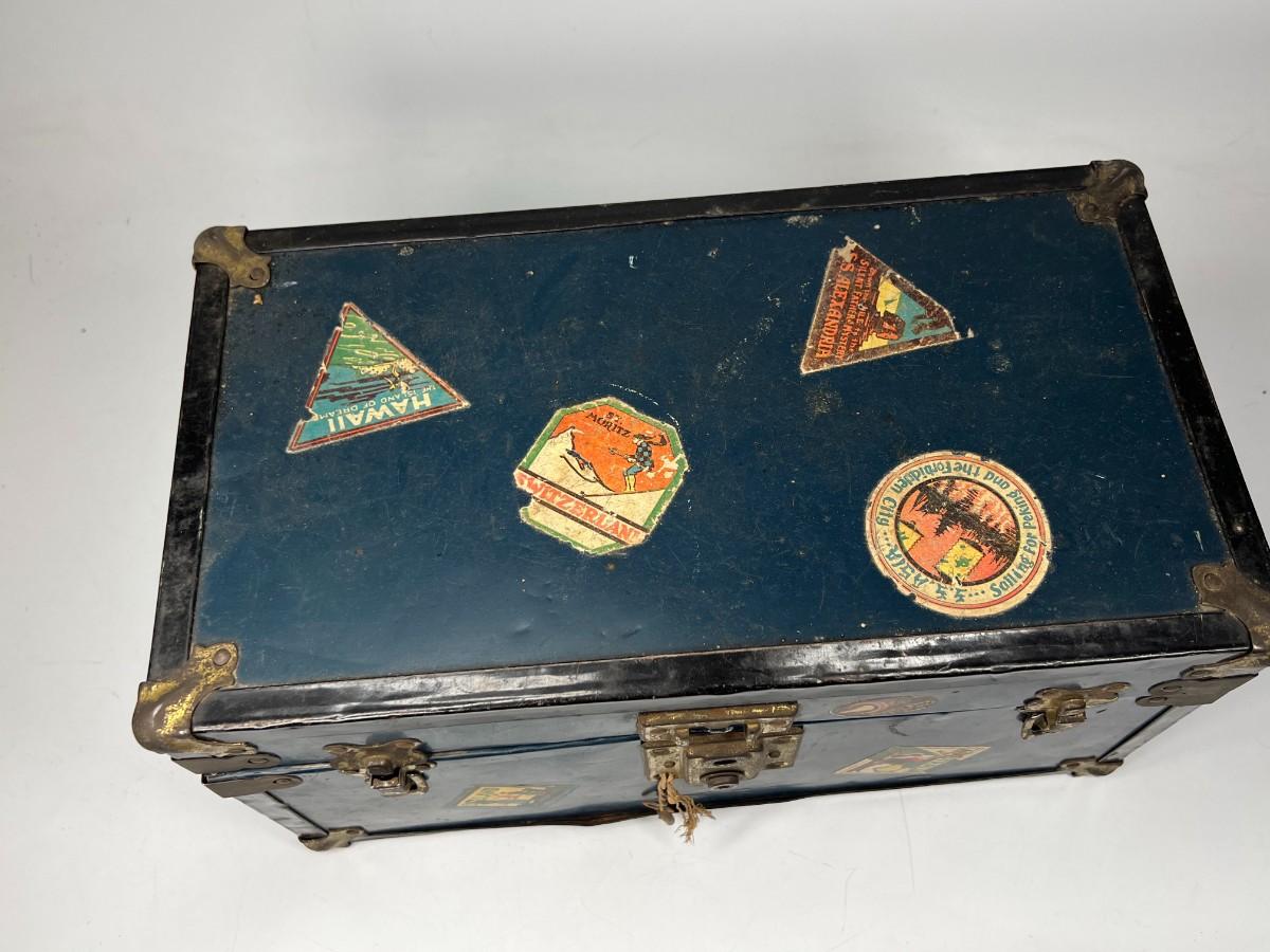 Small Vintage Travel Box Trunk Chest with Souvenir World Travel Stickers
