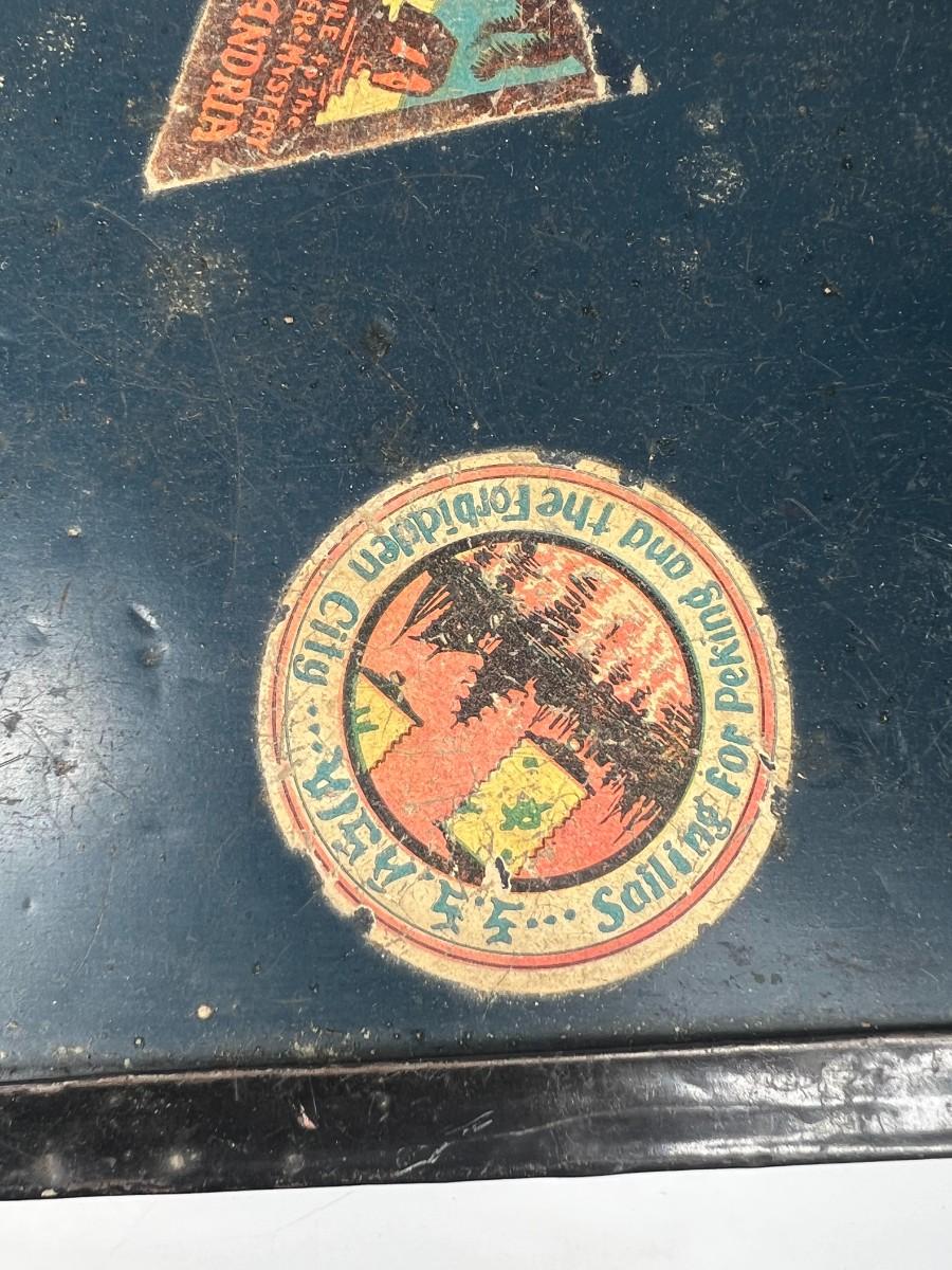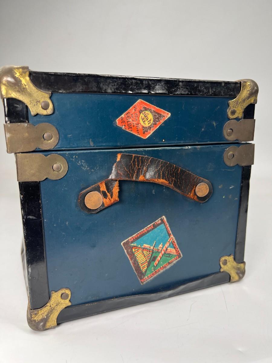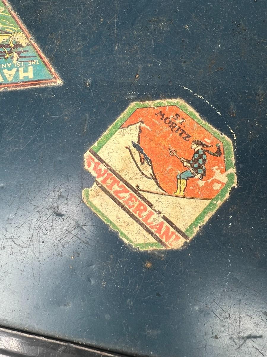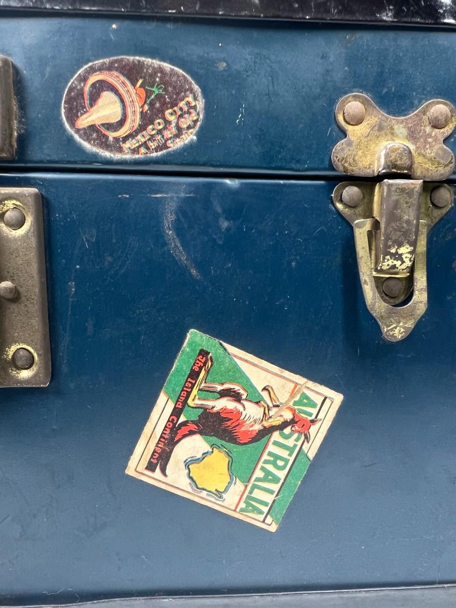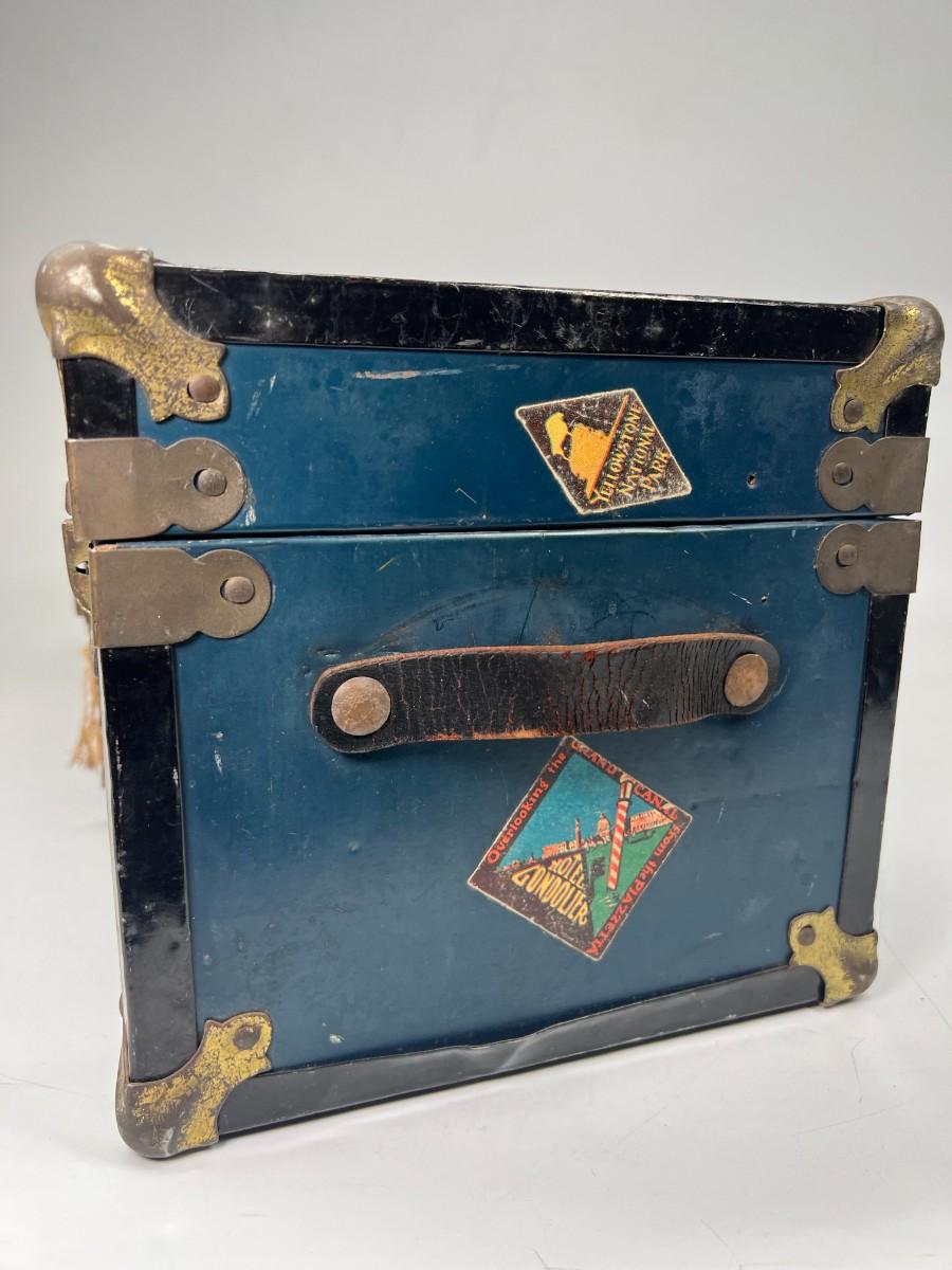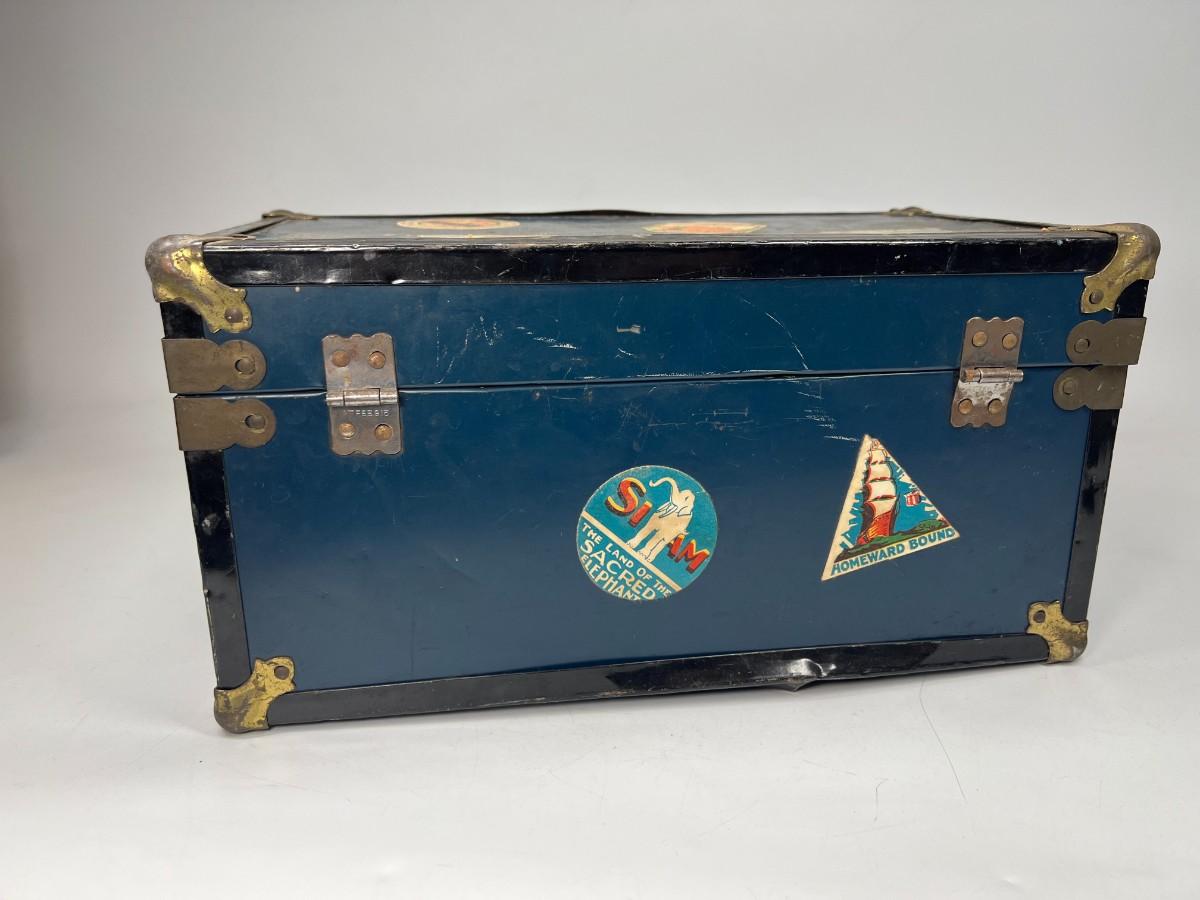 Small Vintage Travel Box Trunk Chest with Souvenir World Travel Stickers