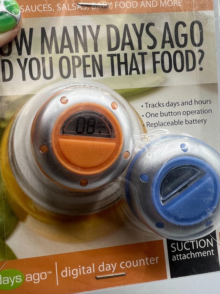 New in Package Digital Day Counter for Food Storage. Use to keep track of how long leftover food item is in fridge.