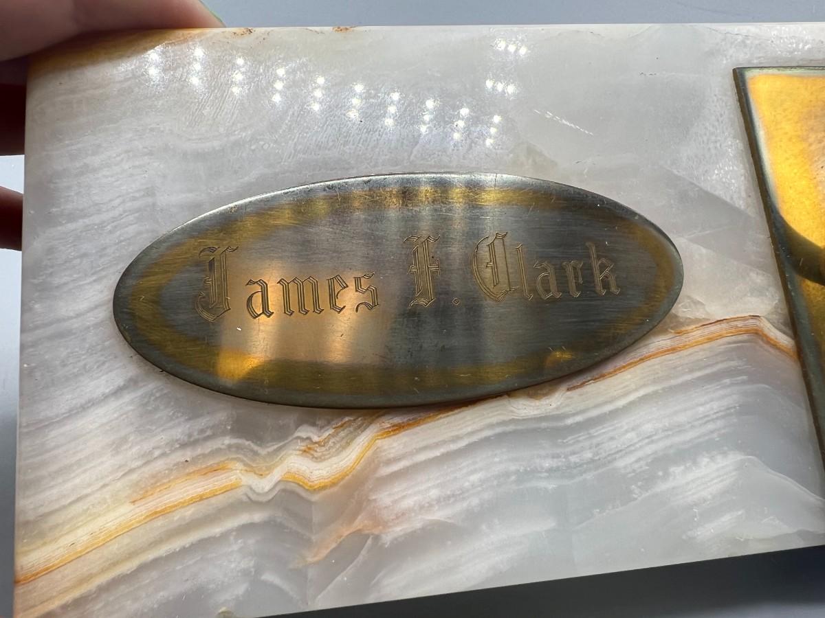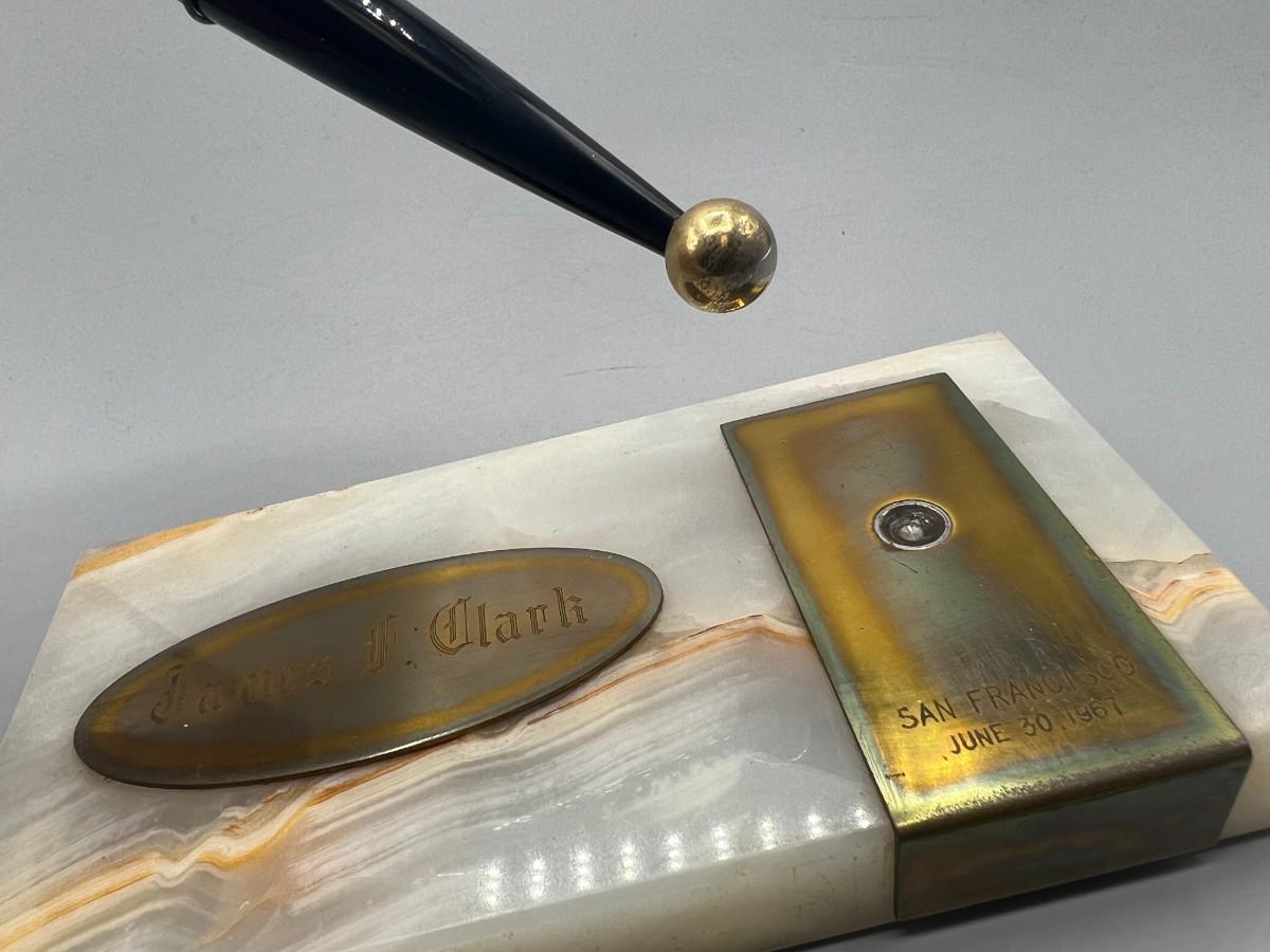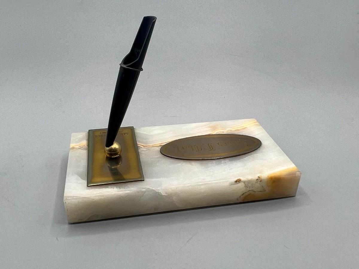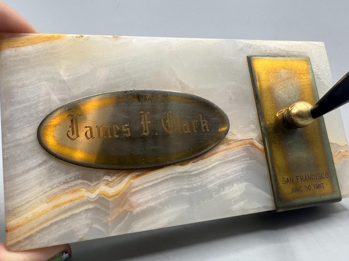 Vintage Personalized Marble Desktop Pen Holder San Francisco 1967. In good condition. Has previous owners name on plaque separate from dated part, may be able to remove.