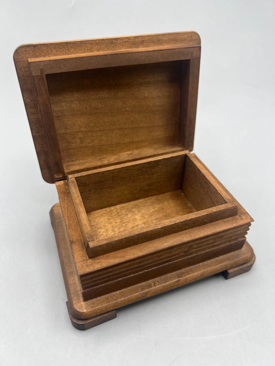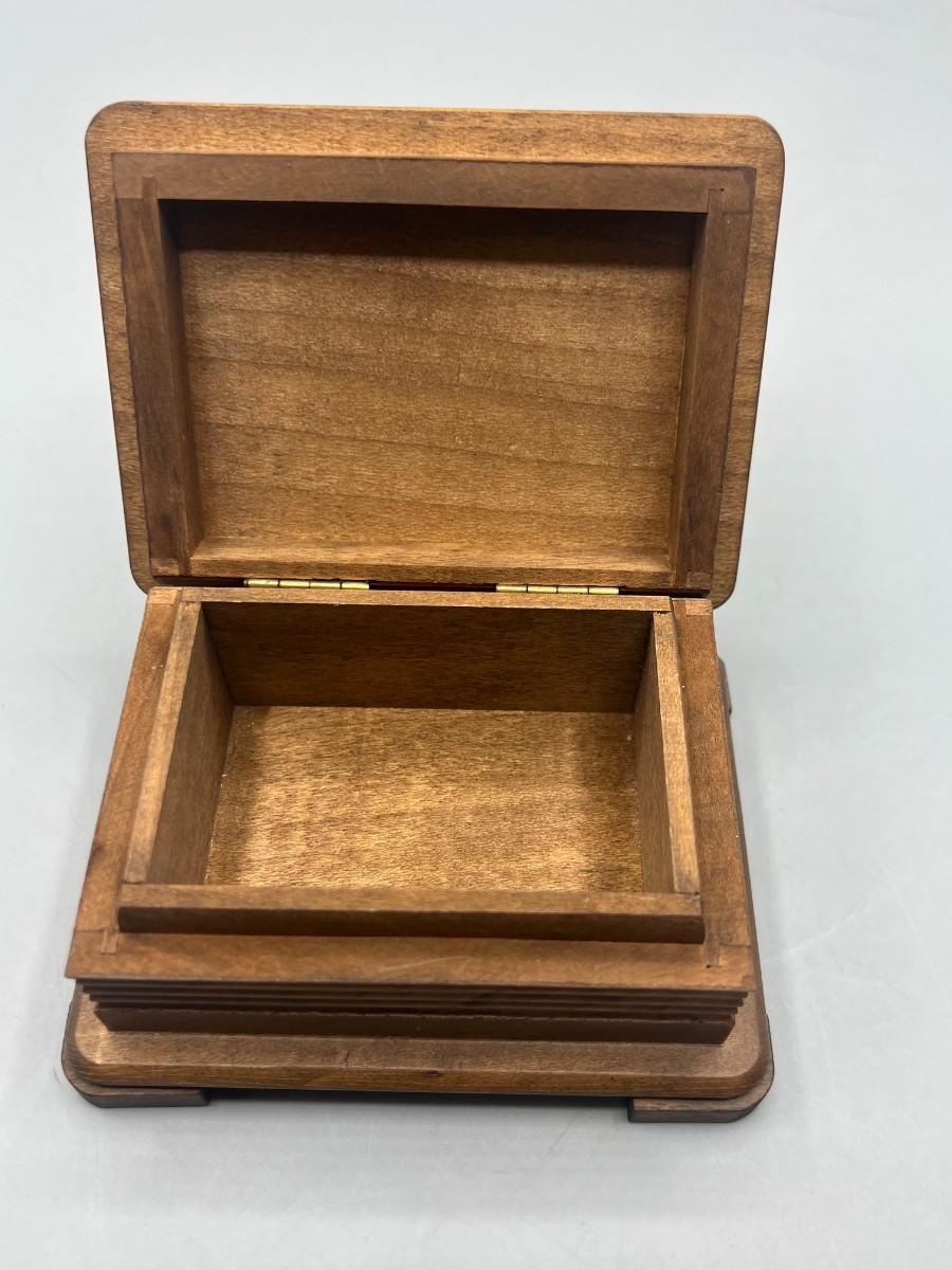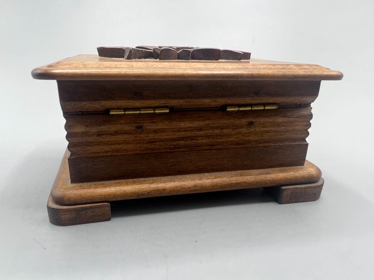 Small Carved Wood Trinket Jewlry Box. In good condition. About 4" size.