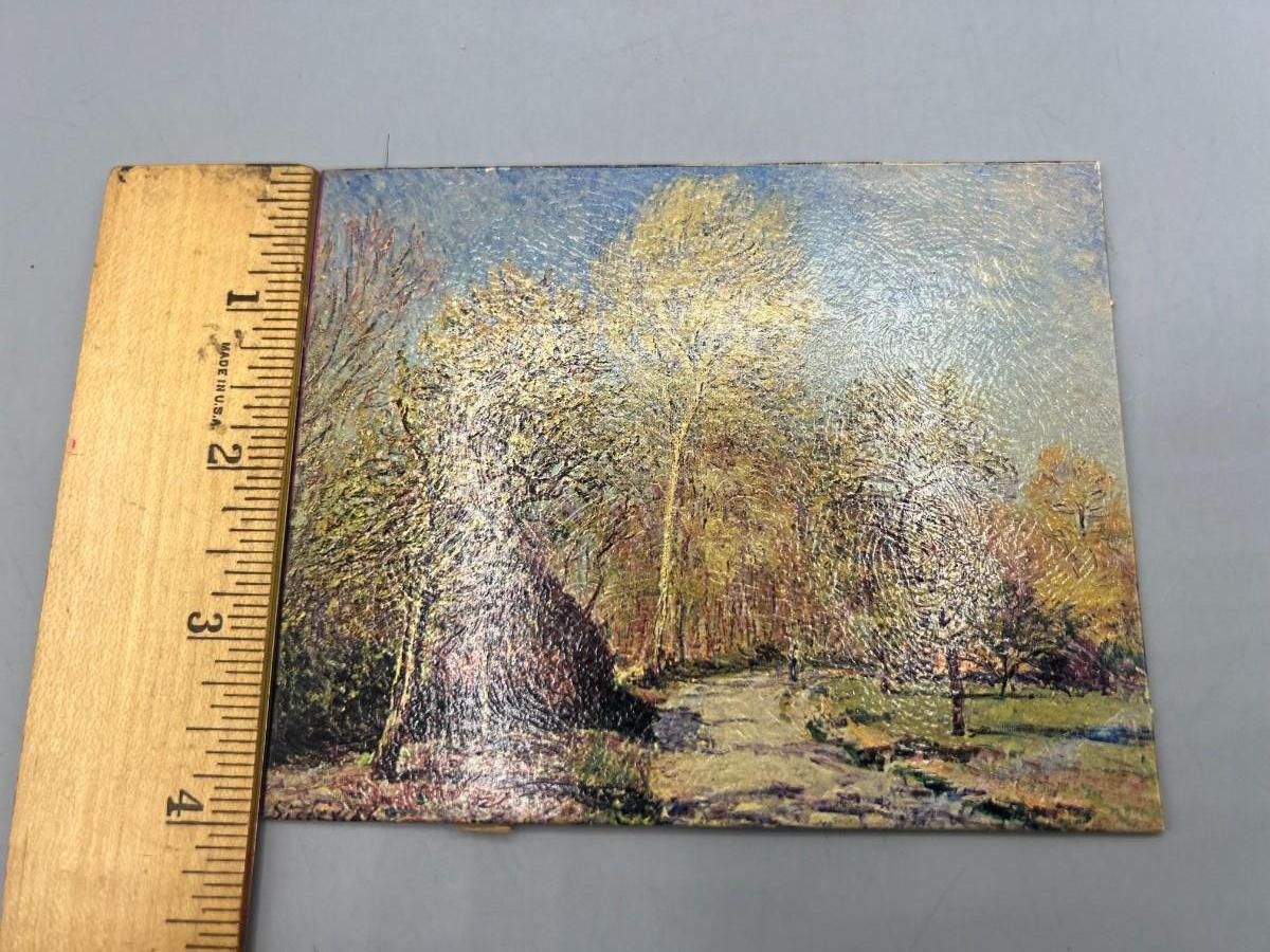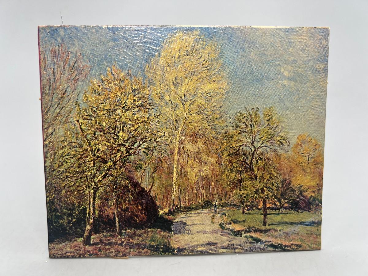 Small Post Card Sized Art Print Alfred Sisley Autumn Landscape. In good condition.