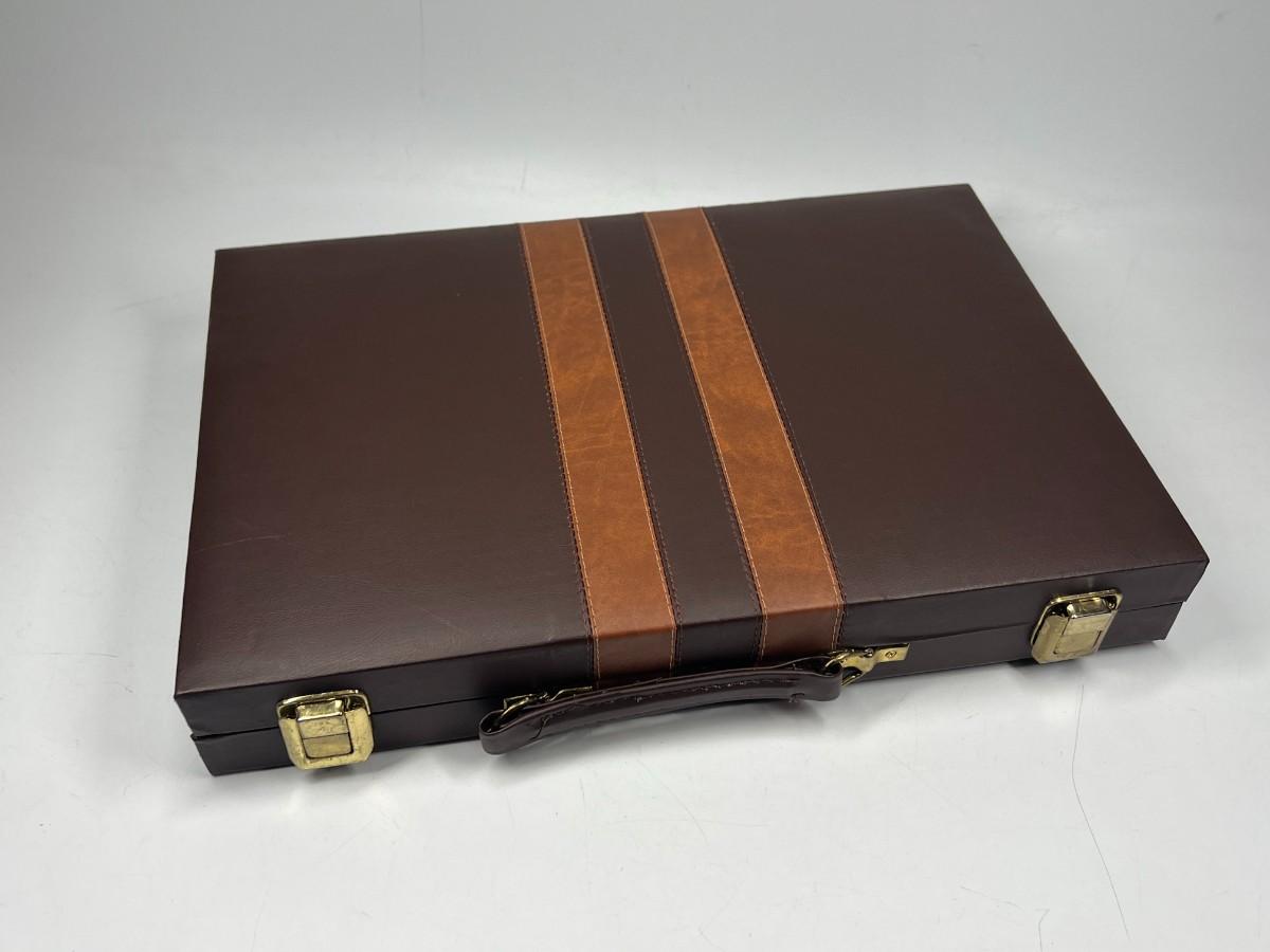 Retro Traditional Brown and White Backgammon Game Set in Carry Case