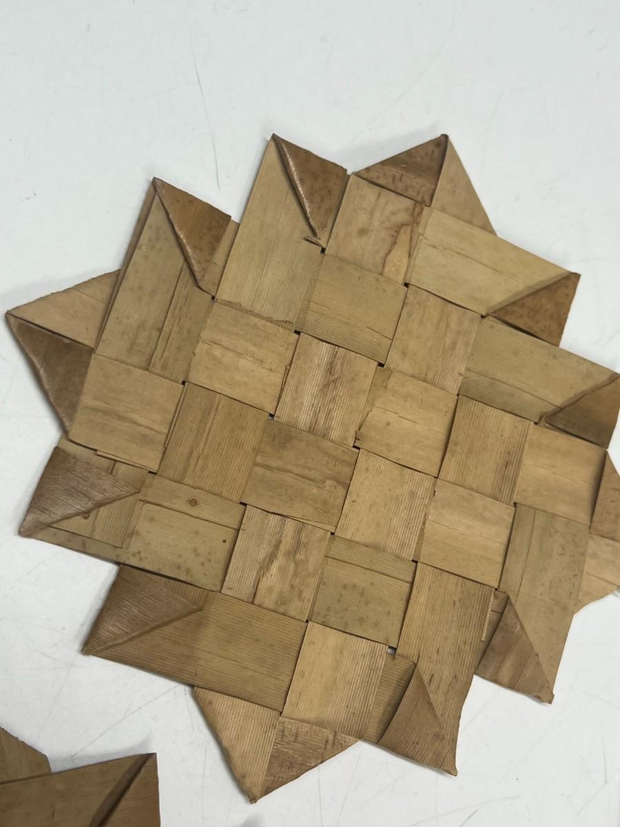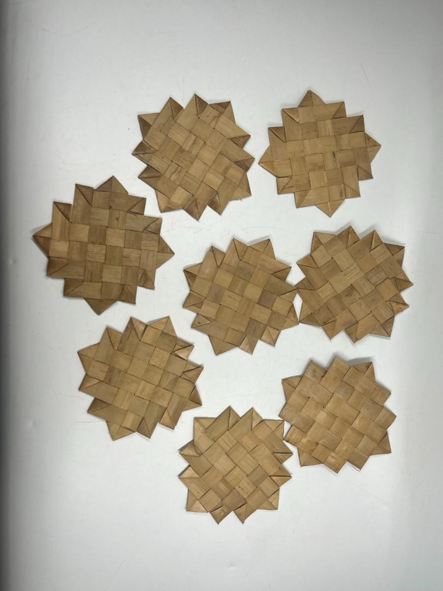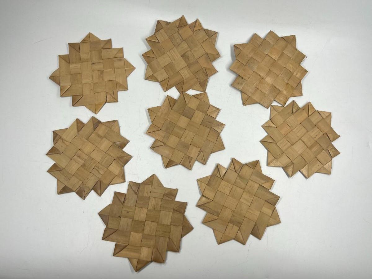 Vintage Woven Palm Frond Reed Drink Coasters Set of 8. In good used condition. About 5" size.