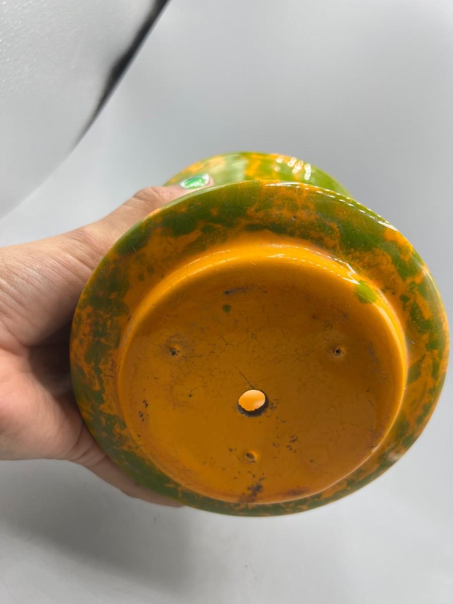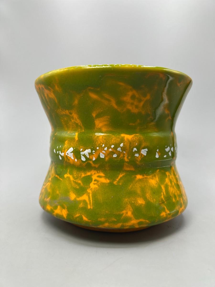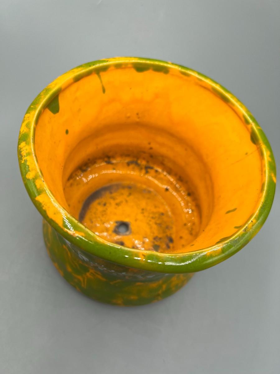 Vintage Retro Yellow Green Swirl Pottery Clay Planter Pot