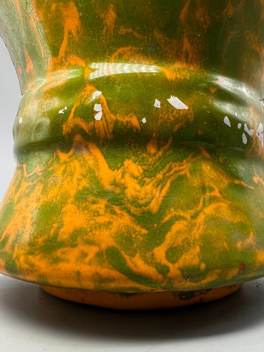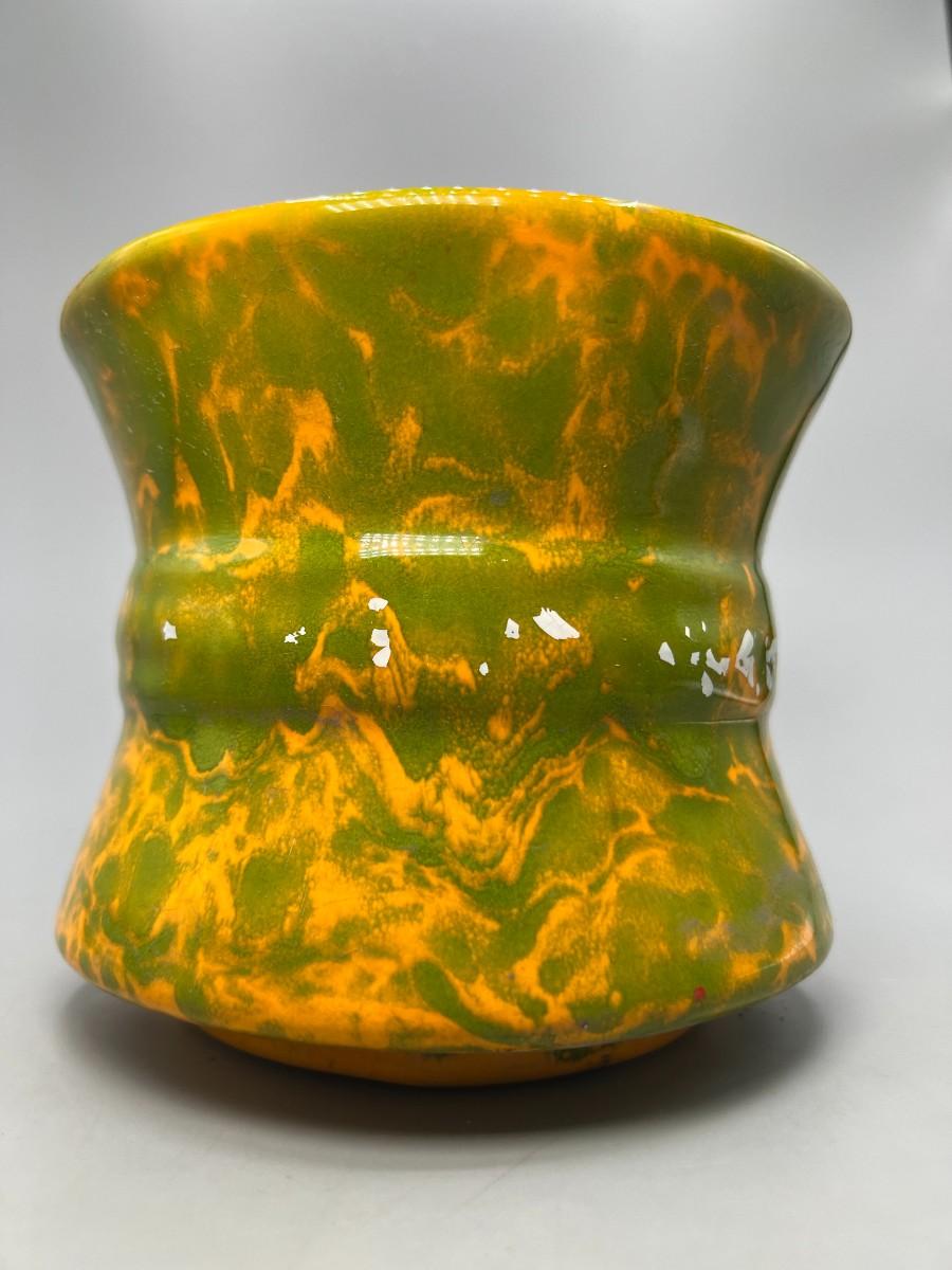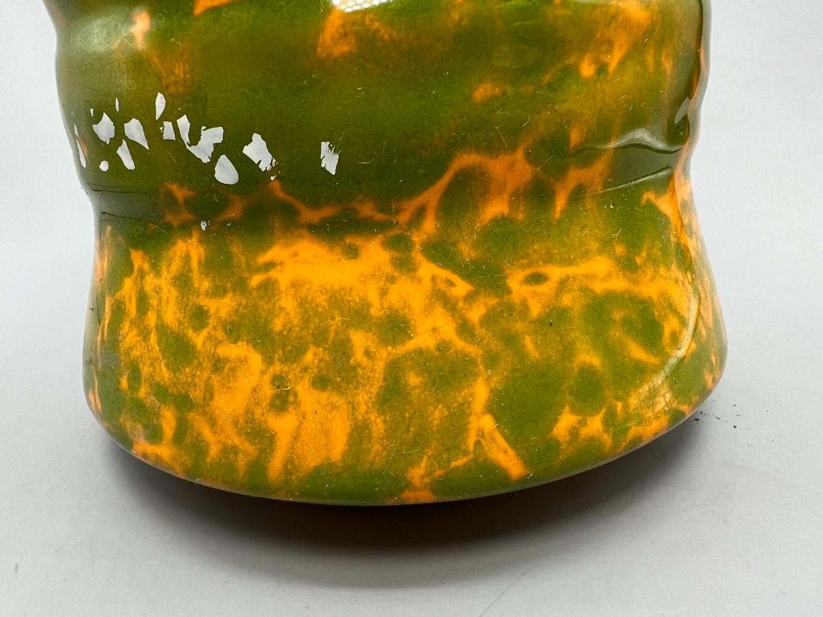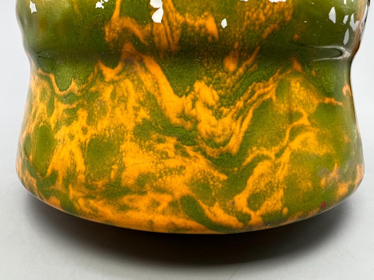 Vintage Retro Yellow Green Swirl Pottery Clay Planter Pot