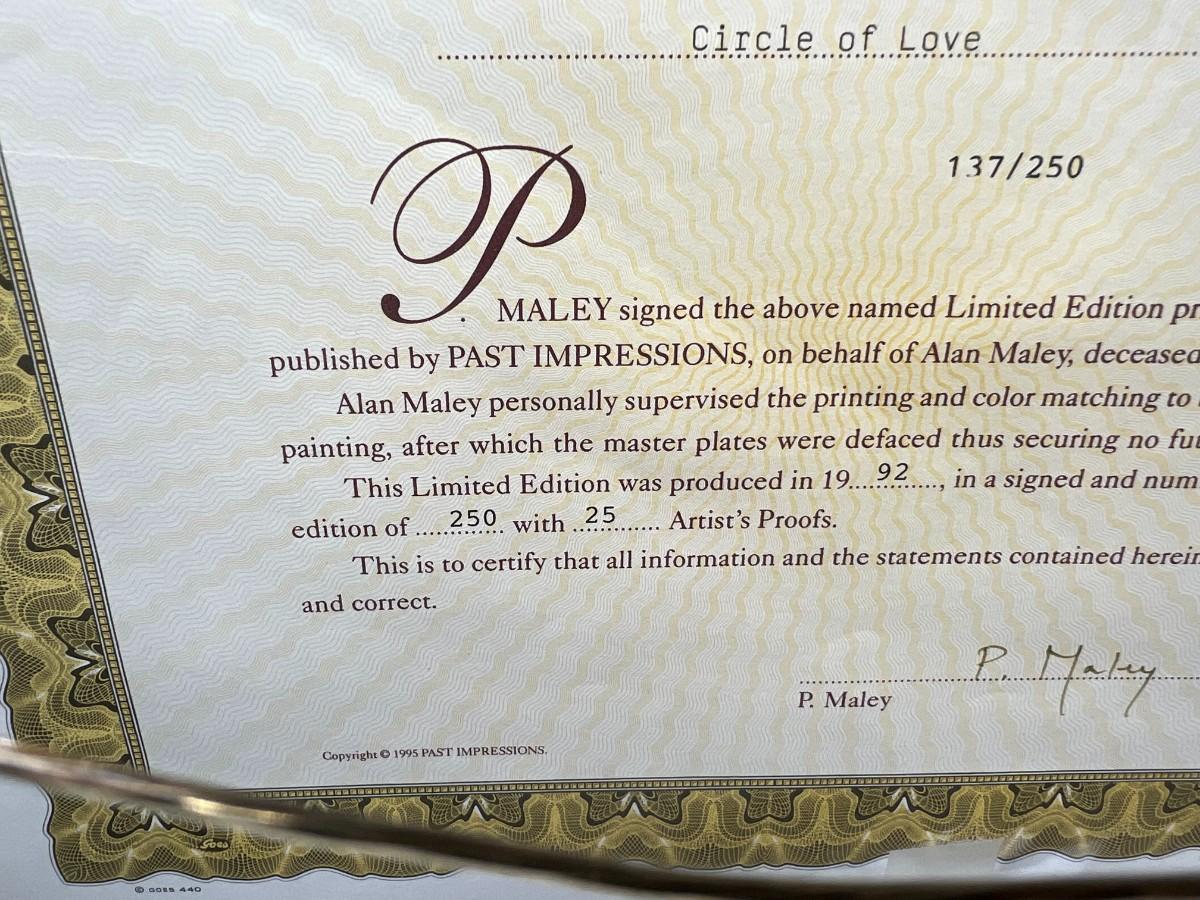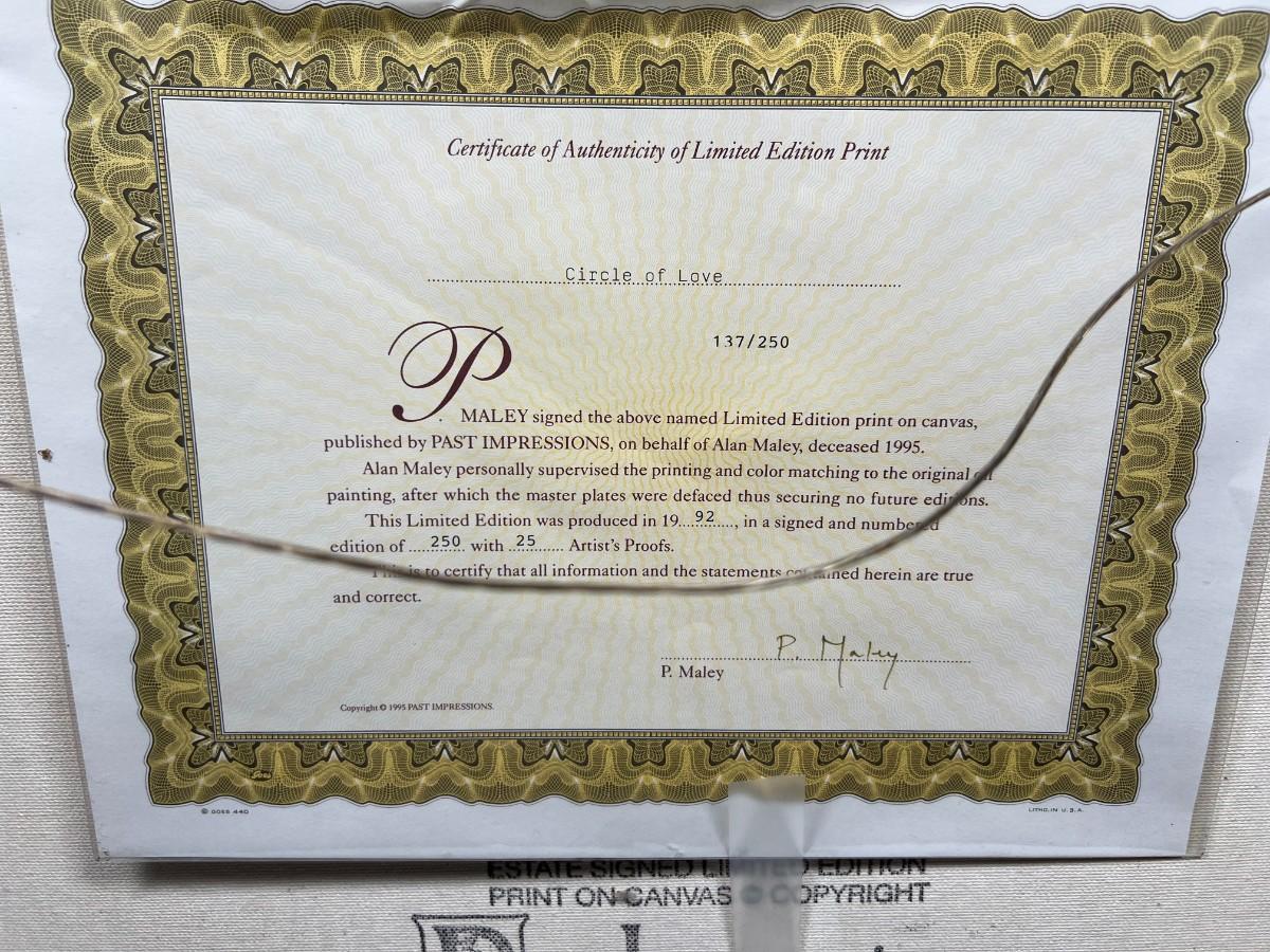 Signed & Numbered P. Maley Circle of Love Limited Edition Print on Canvas with COA. In good condition. About 27x24 size.